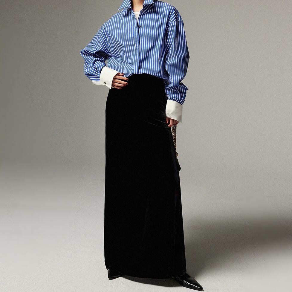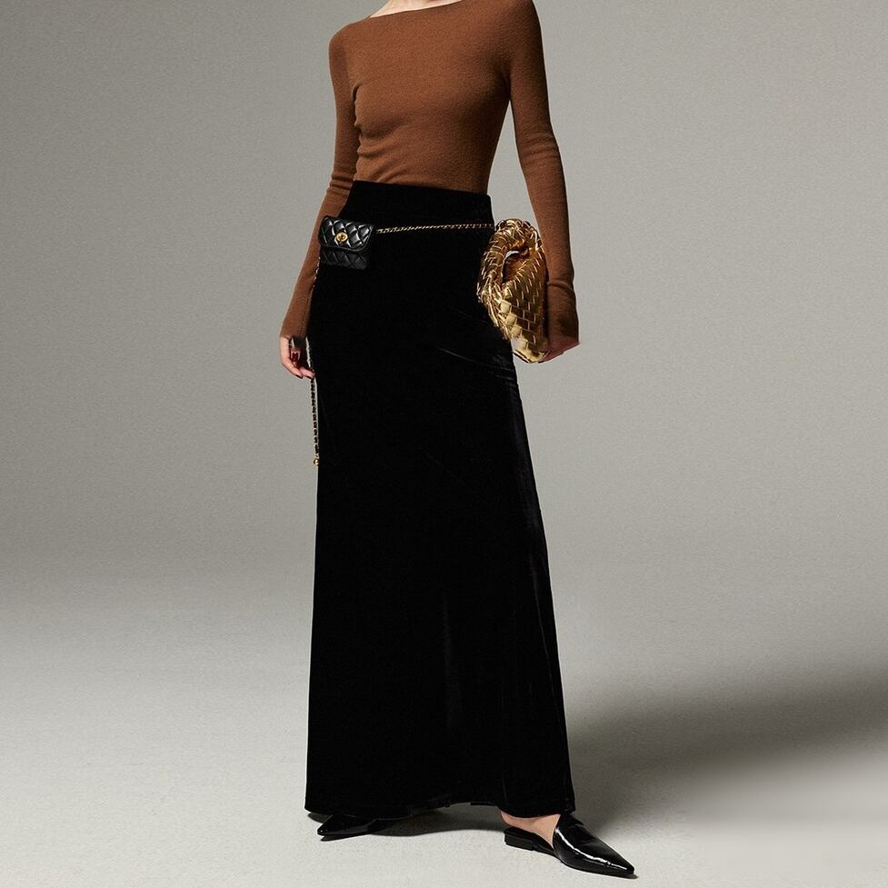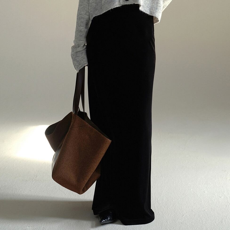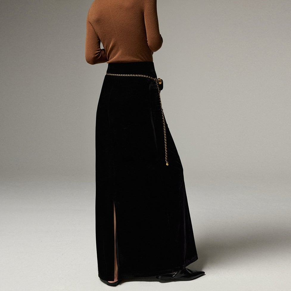 インパクトのあるマキシシルエット、颯爽と躍動感を演出するバックスリット、大人なこなれ感と機能性を兼ねたロングスカートです。バランス調整力にも優れたシンプルなのに着映えするシルエットで簡単にキレイがかなう醍醐味あり。女性らしいコーディネートに導いてくれる上質な雰囲気がかもし出せるから装いの格上げにも有効