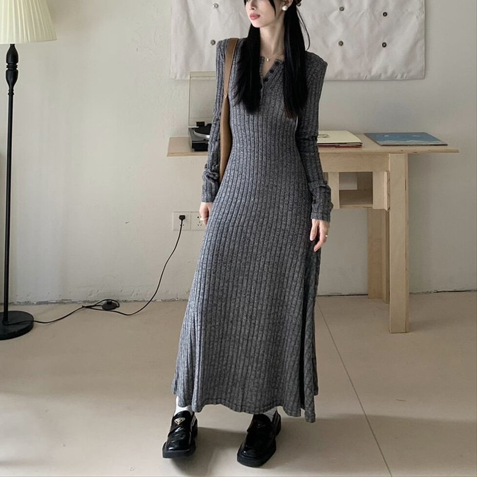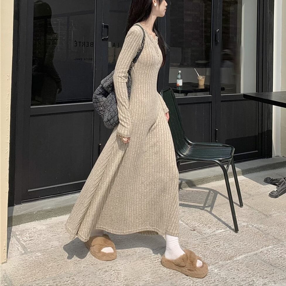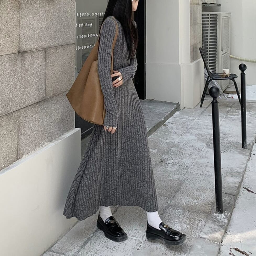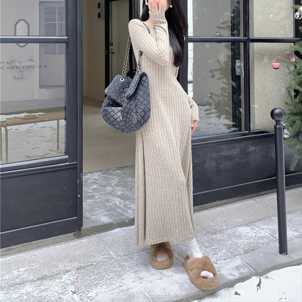 ボディラインに優しくフィットしたリブ素材に、美しいAラインシルエットが映える、ロングリブニットワンピースです。バランス調整力にも優れたシンプルなのに着映えするシルエットで簡単にキレイがかなう醍醐味あり。女性らしいコーディネートに導いてくれる上質な雰囲気がかもし出せるから装いの格上げにも有効