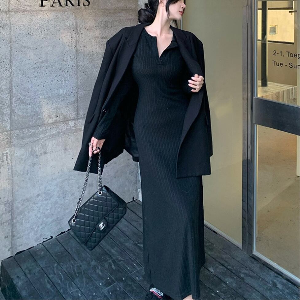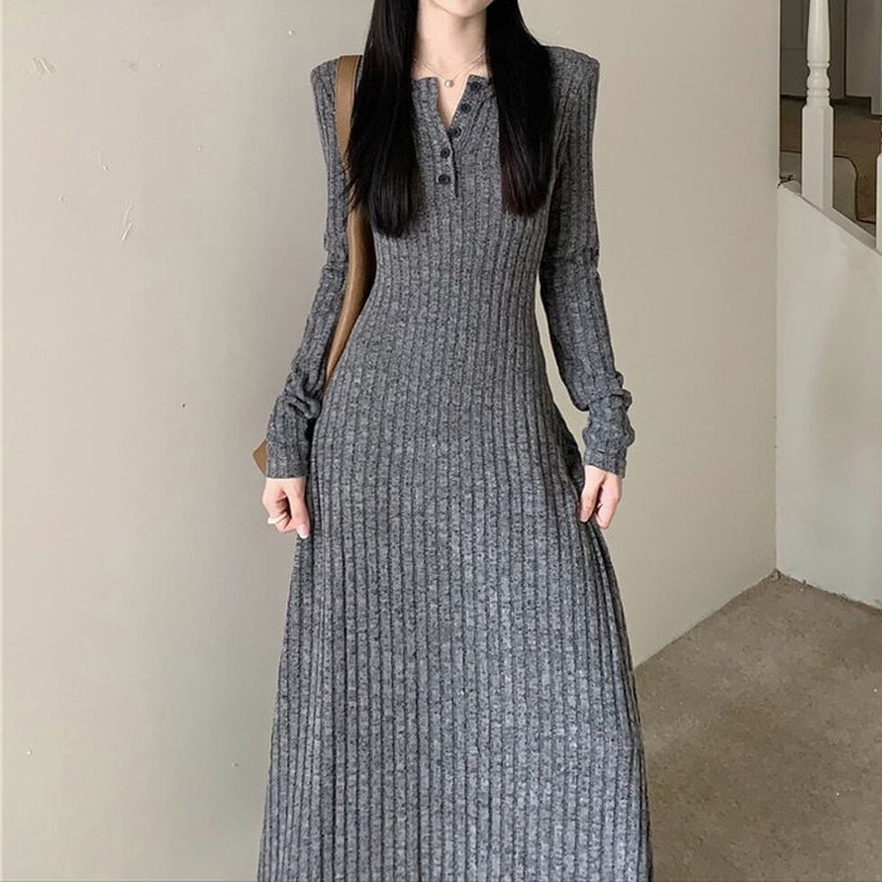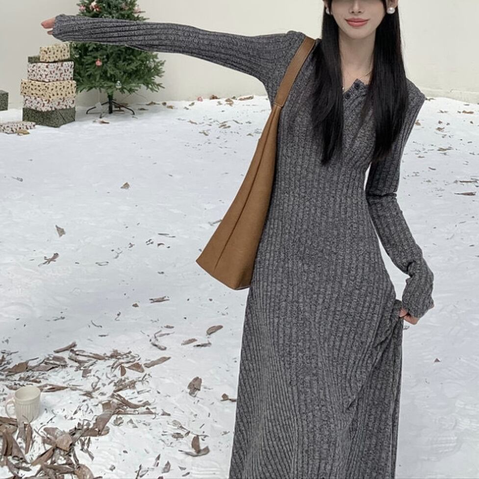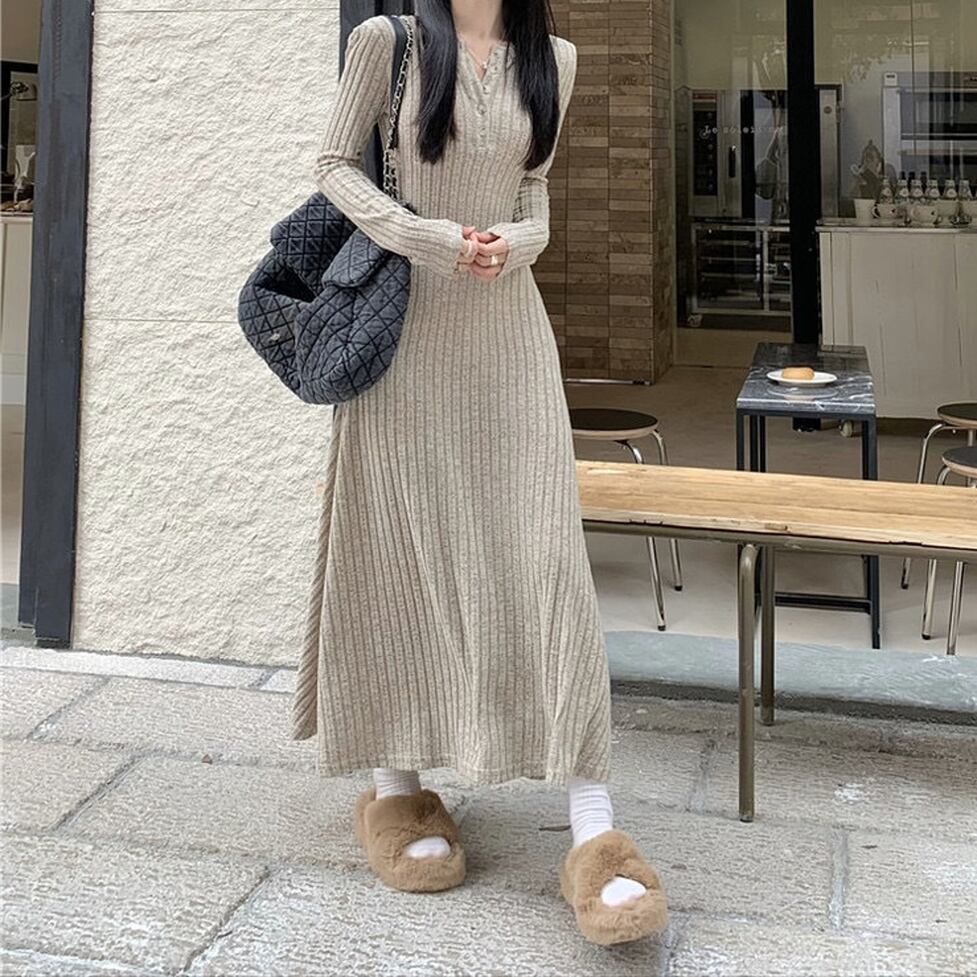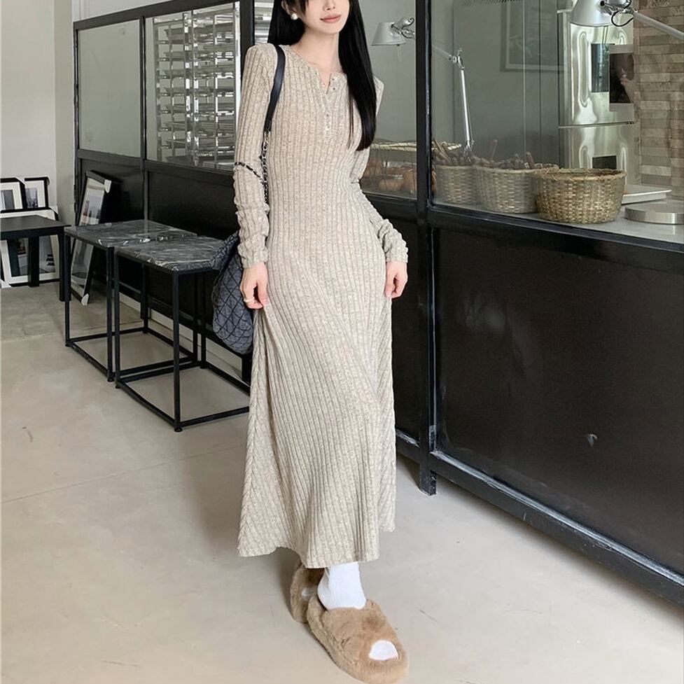 ボディラインに優しくフィットしたリブ素材に、美しいAラインシルエットが映える、ロングリブニットワンピースです。バランス調整力にも優れたシンプルなのに着映えするシルエットで簡単にキレイがかなう醍醐味あり。女性らしいコーディネートに導いてくれる上質な雰囲気がかもし出せるから装いの格上げにも有効