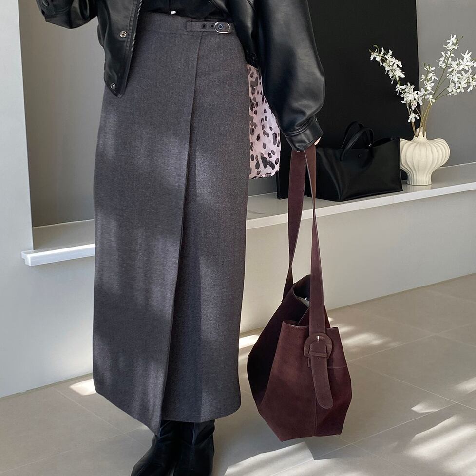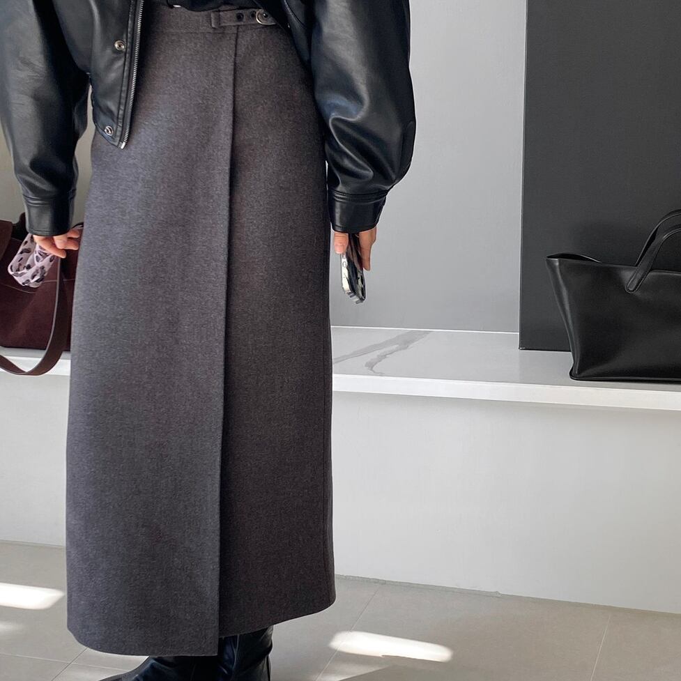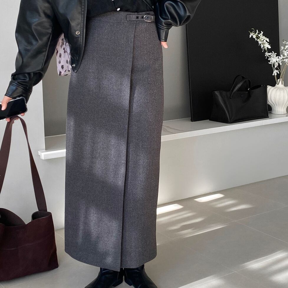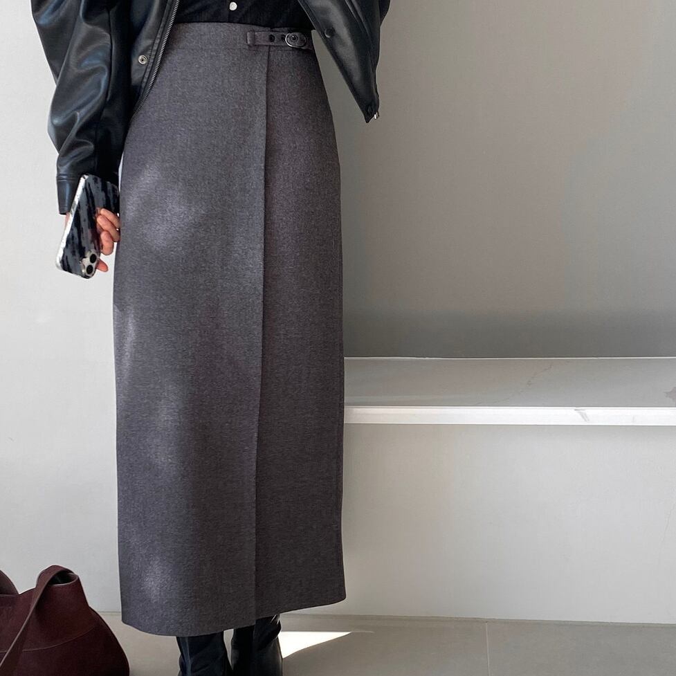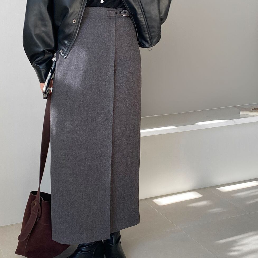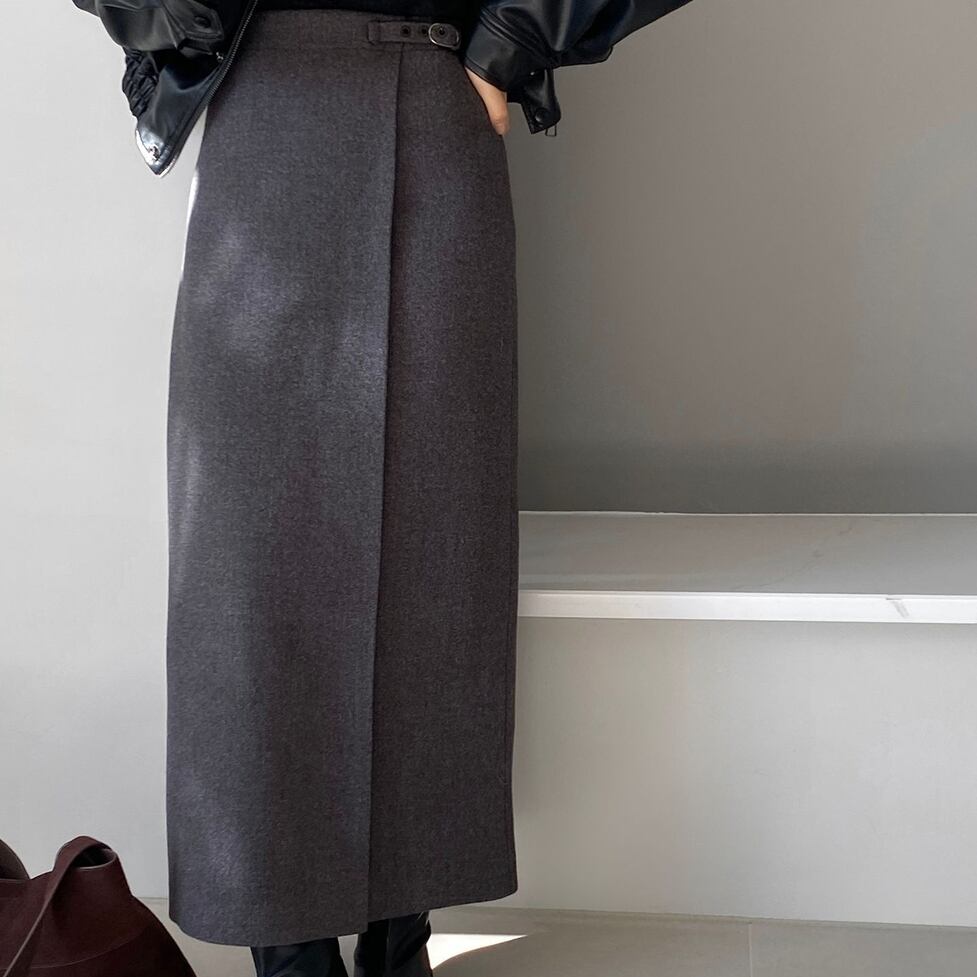 上品なペンシルストレートシルエット、絶妙なアシンメトリーシルエット、シンプルながらもインパクトもしっかり演出した巻きスカートです。バランス調整力にも優れたシンプルなのに着映えするシルエットで簡単にキレイがかなう醍醐味あり。女性らしいコーディネートに導いてくれる上質な雰囲気がかもし出せるから装いの格上げにも有効