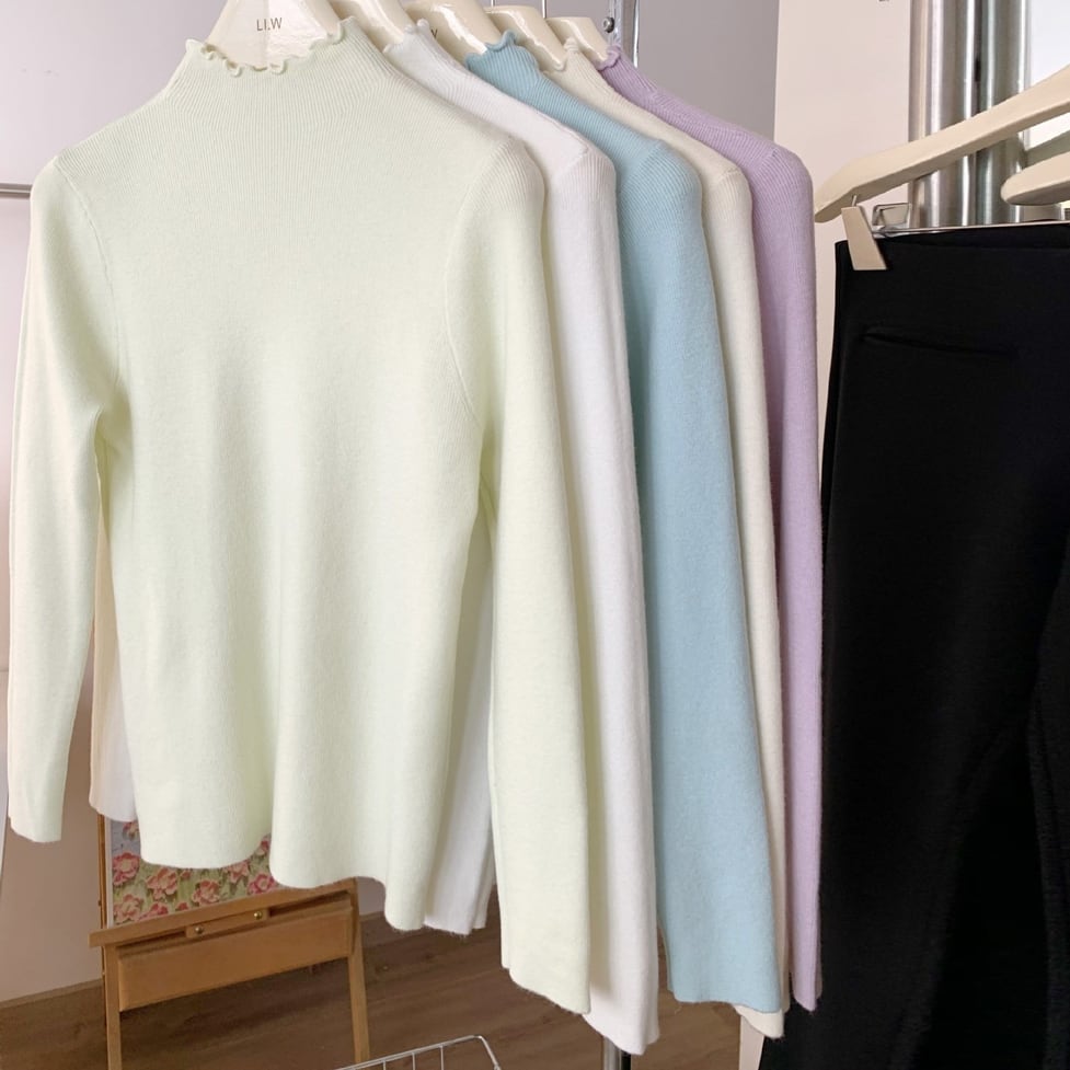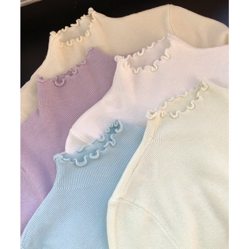 シャーベットカラーが可愛い、クシュっとしたネックのデザインがポイントのリブカットソー。バランス調整力にも優れたシンプルなのに着映えするシルエットで簡単にキレイがかなう醍醐味あり。女性らしいコーディネートに導いてくれる上質な雰囲気がかもし出せるから装いの格上げにも有効
