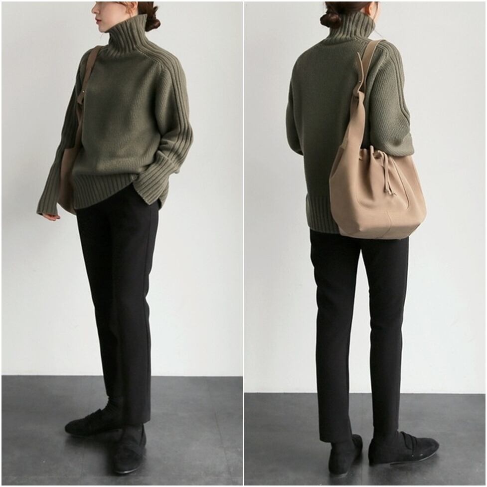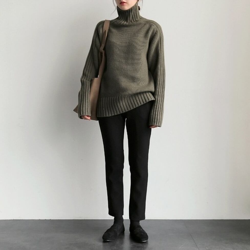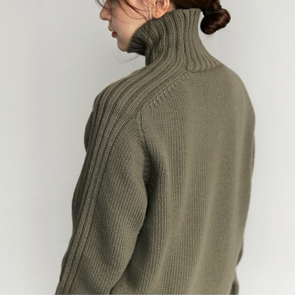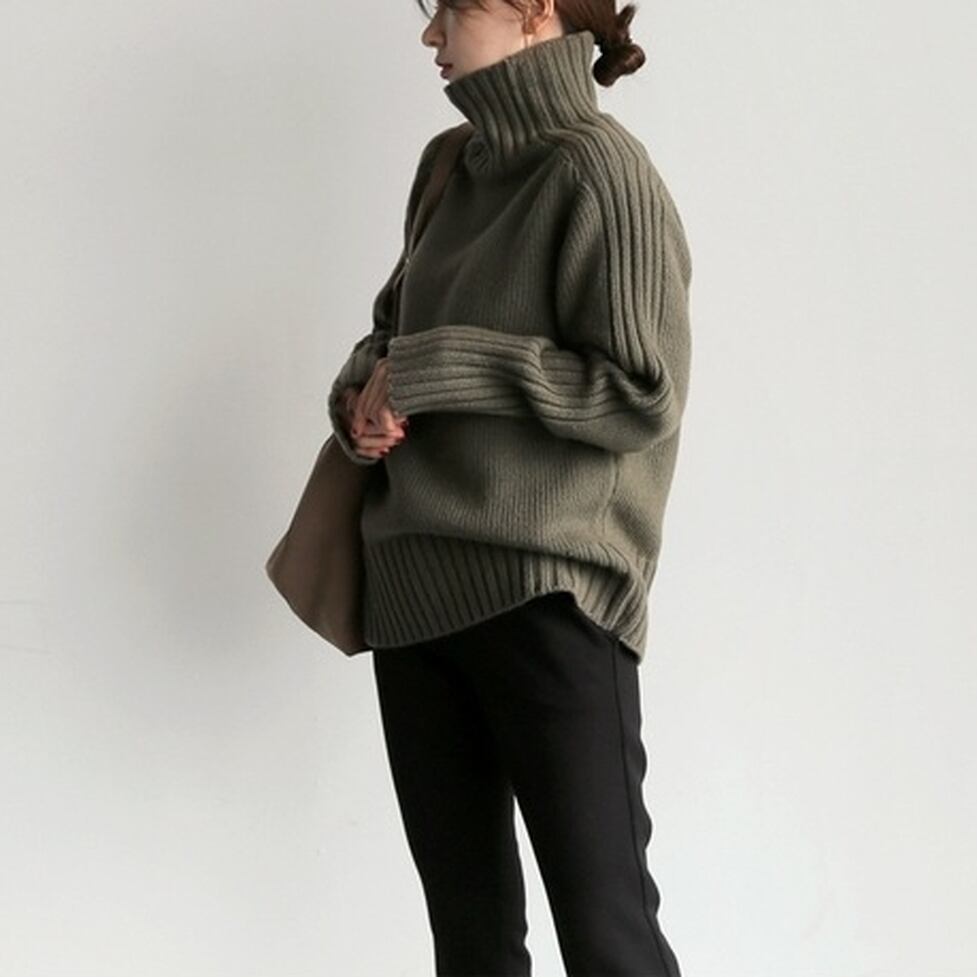 ハイネック、ベーシック、見た目に暖かな、タートルニットプルオーバーです。バランス調整力にも優れたシンプルなのに着映えするシルエットで簡単にキレイがかなう醍醐味あり。女性らしいコーディネートに導いてくれる上質な雰囲気がかもし出せるから装いの格上げにも有効