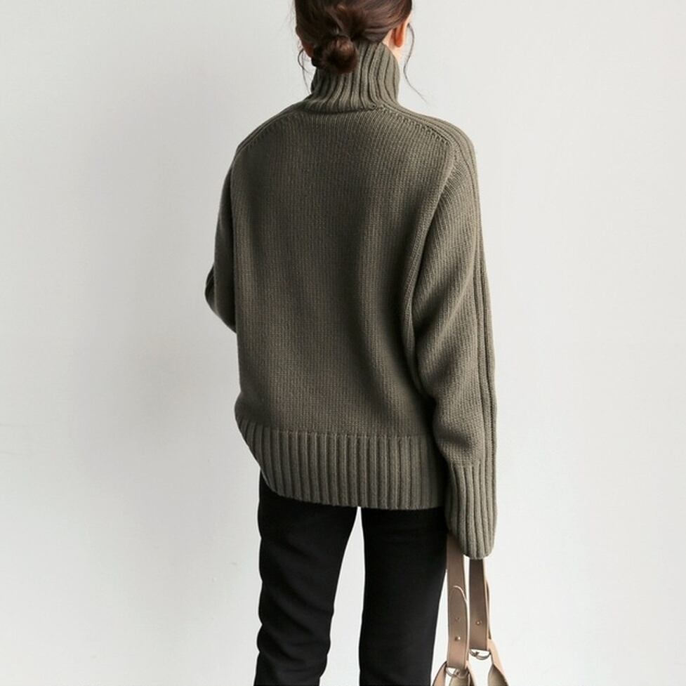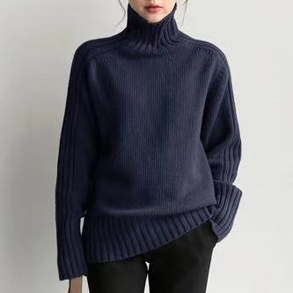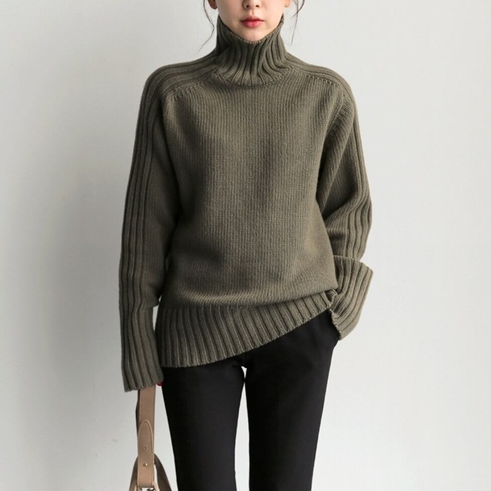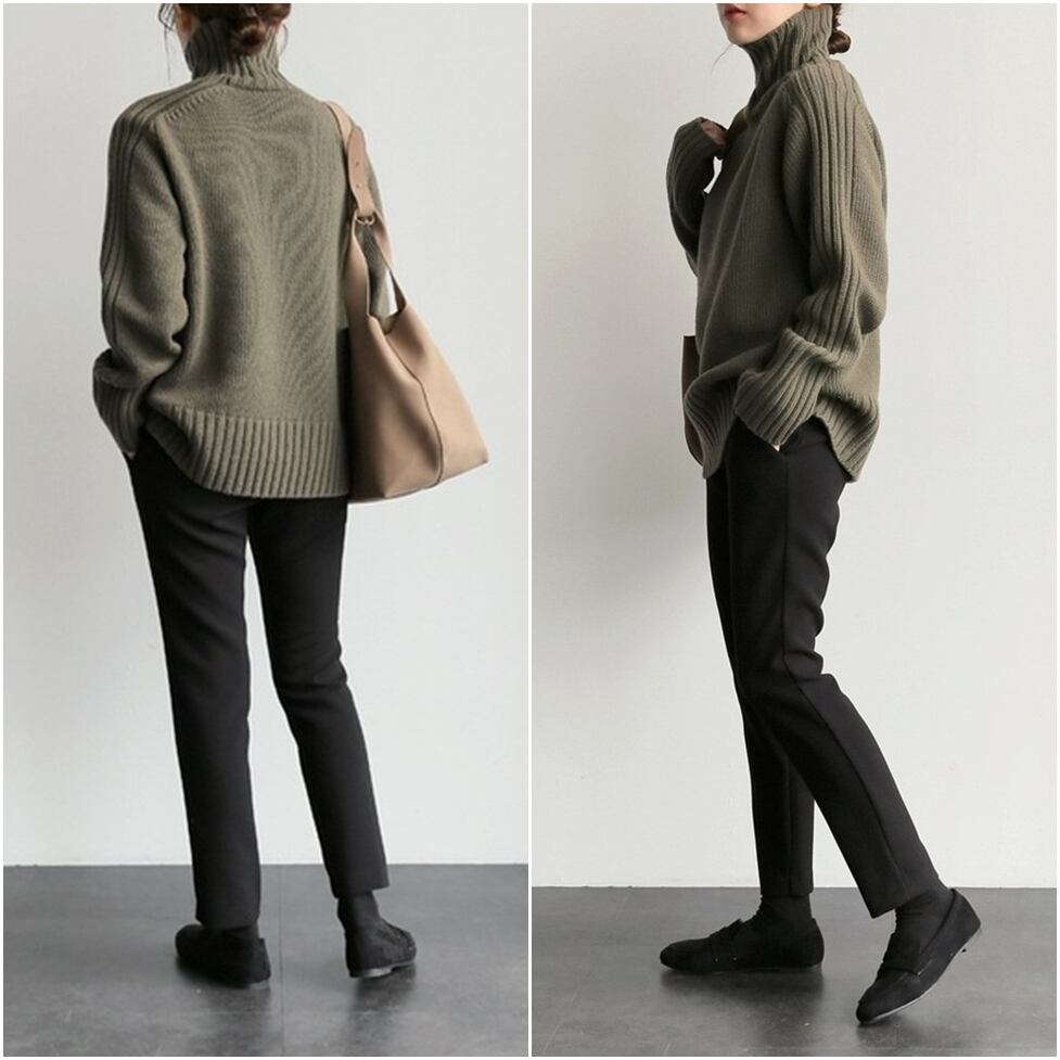 ハイネック、ベーシック、見た目に暖かな、タートルニットプルオーバーです。バランス調整力にも優れたシンプルなのに着映えするシルエットで簡単にキレイがかなう醍醐味あり。女性らしいコーディネートに導いてくれる上質な雰囲気がかもし出せるから装いの格上げにも有効