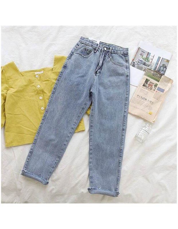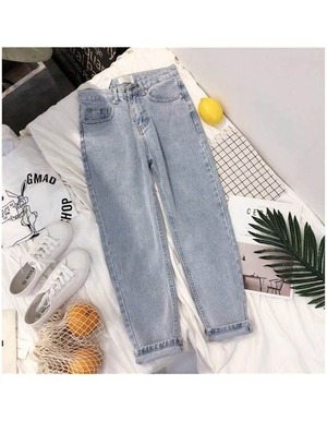 大人可愛いデザインが魅力のハイウエストデニムパンツ。