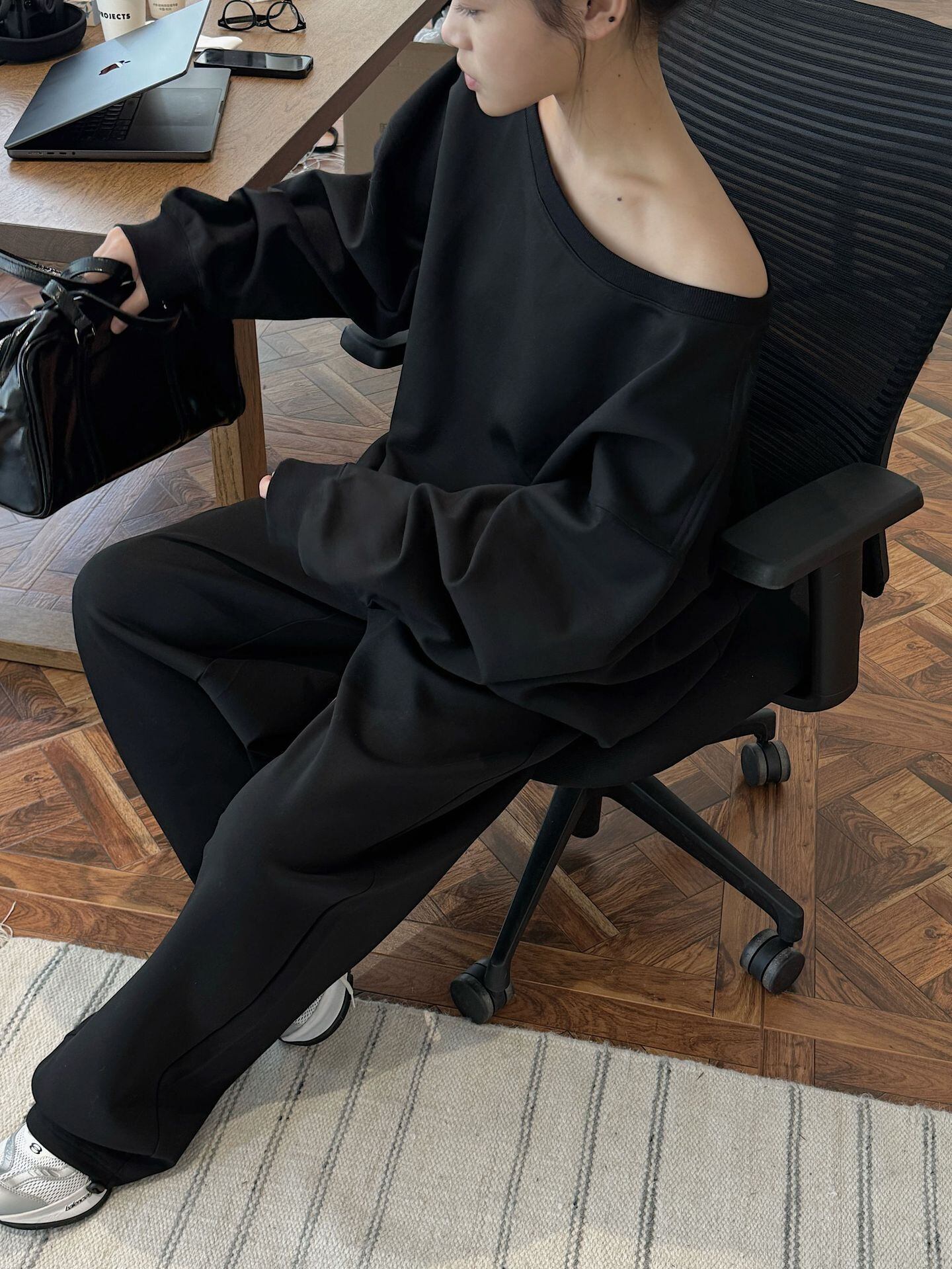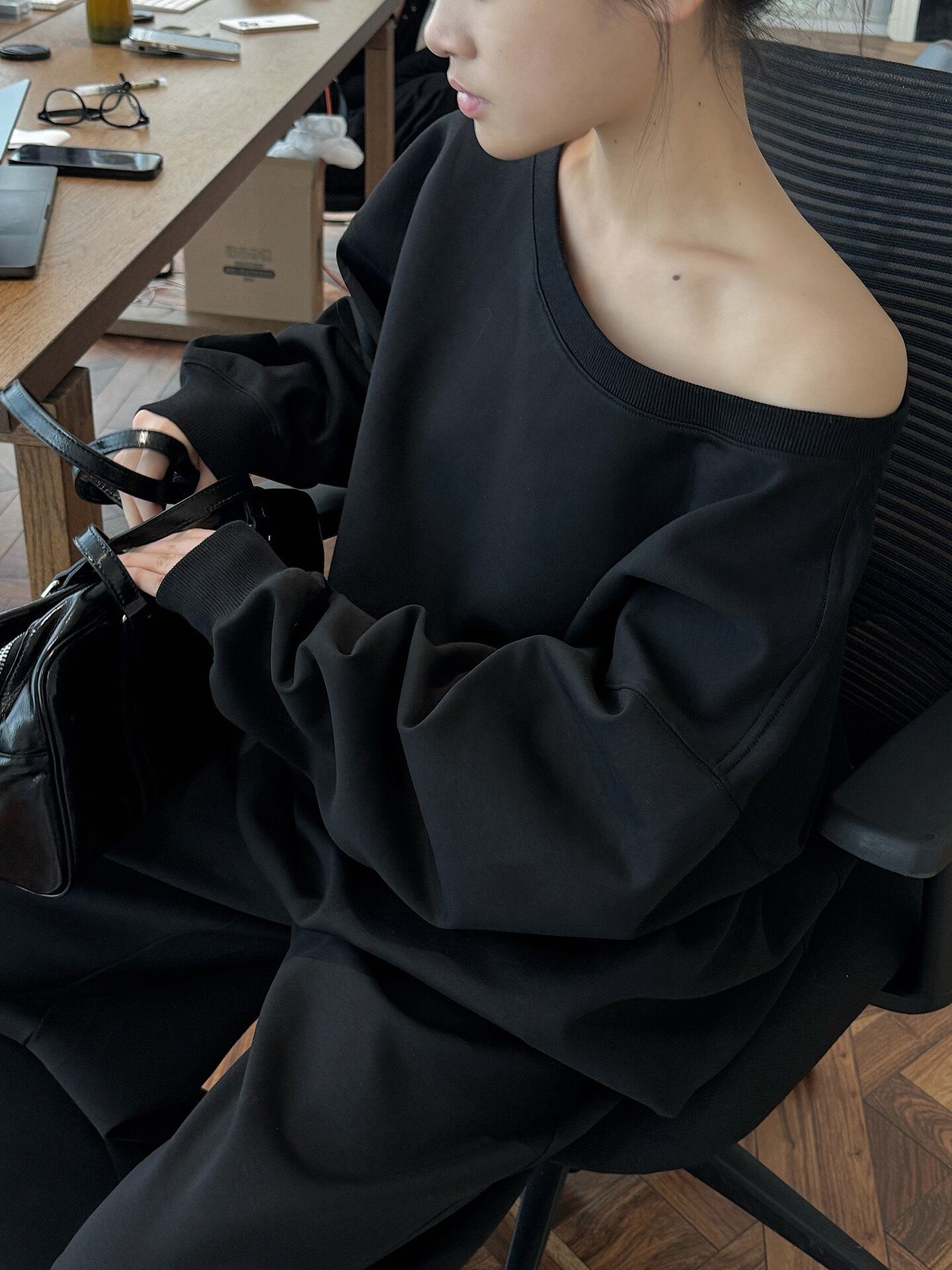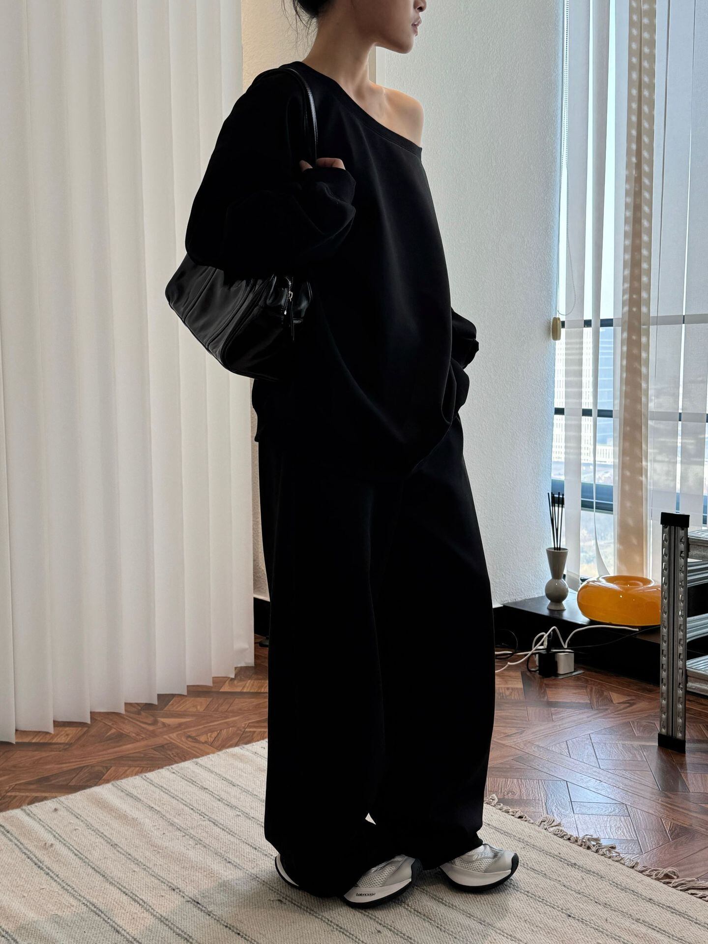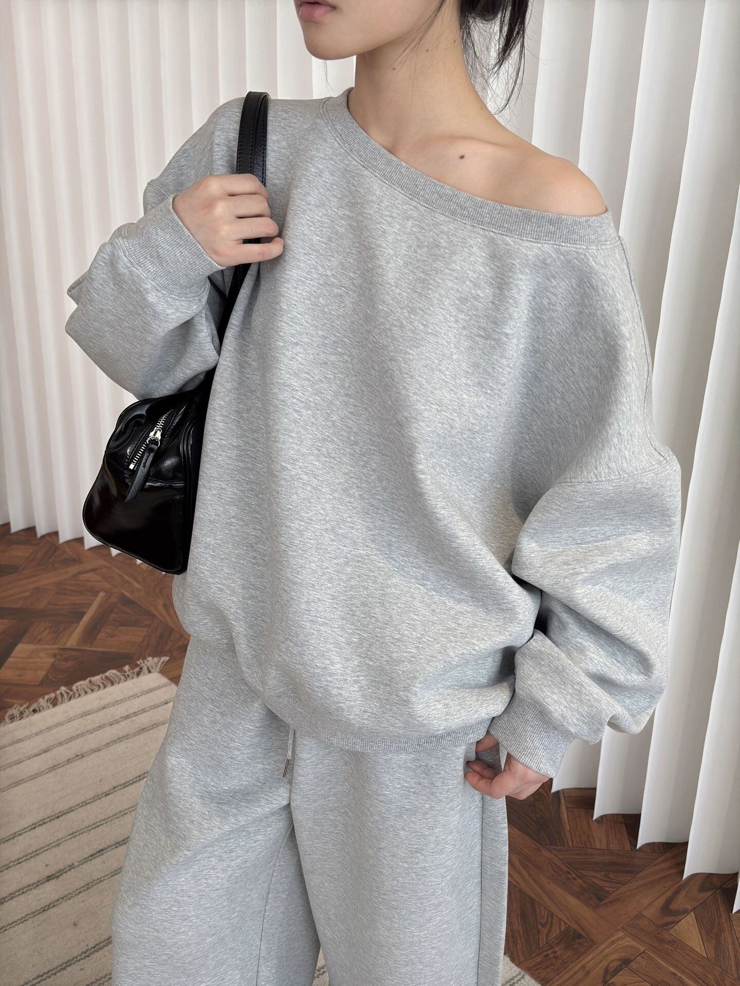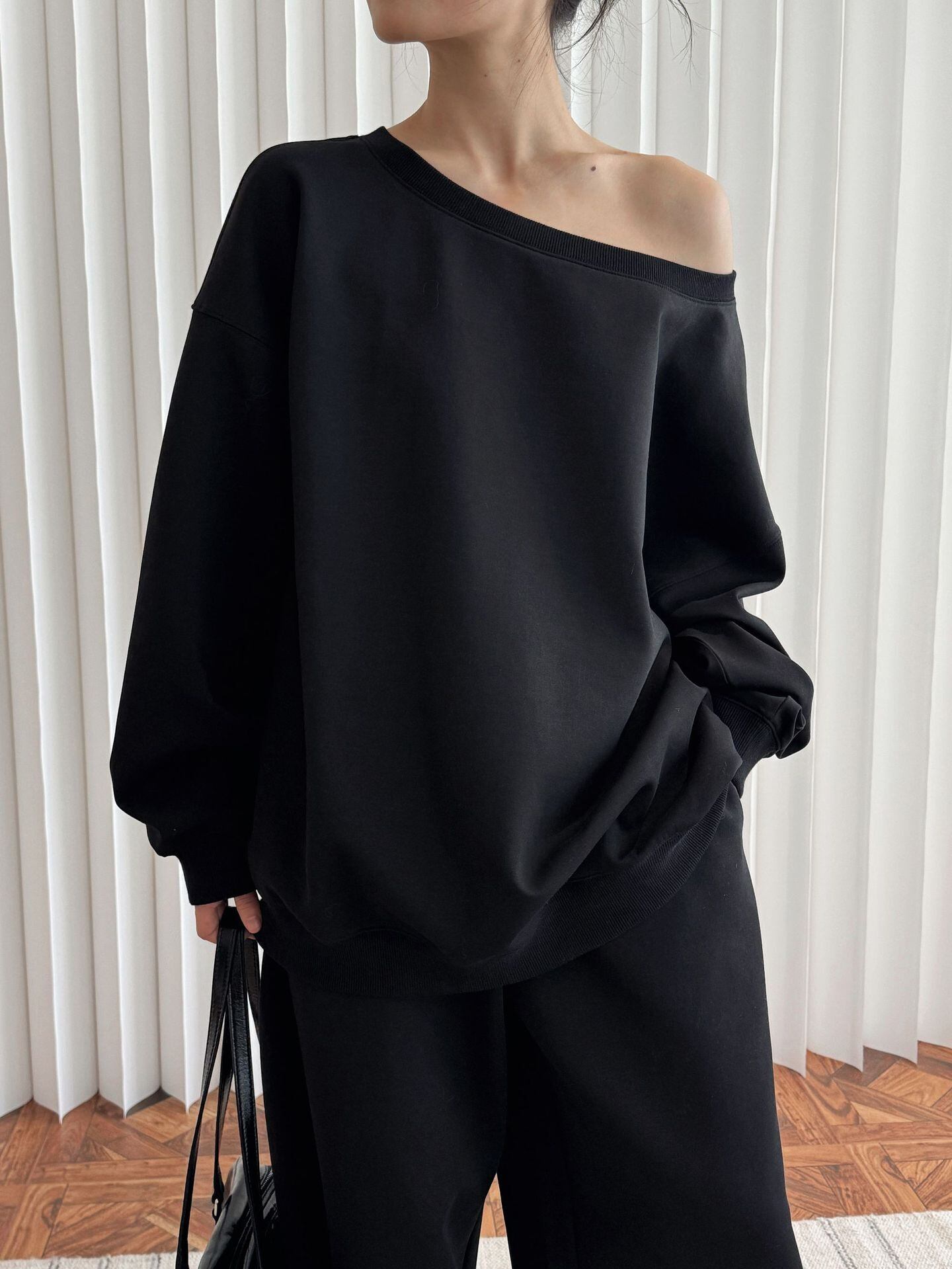 ワンショルダーのデザインが程よい抜け感を演出し、ラウンドネックでシンプルな印象を与えます。