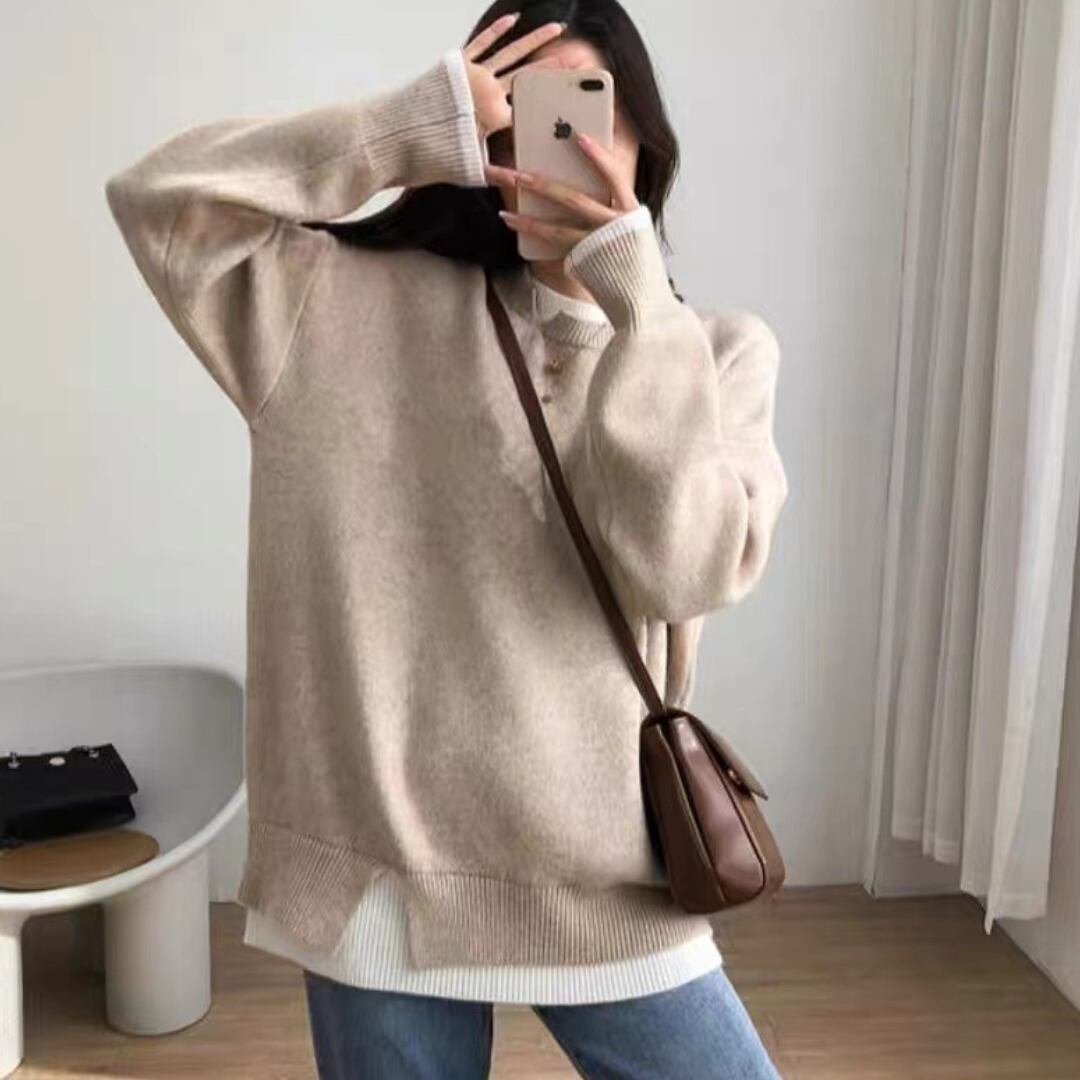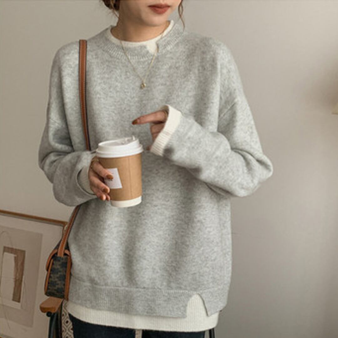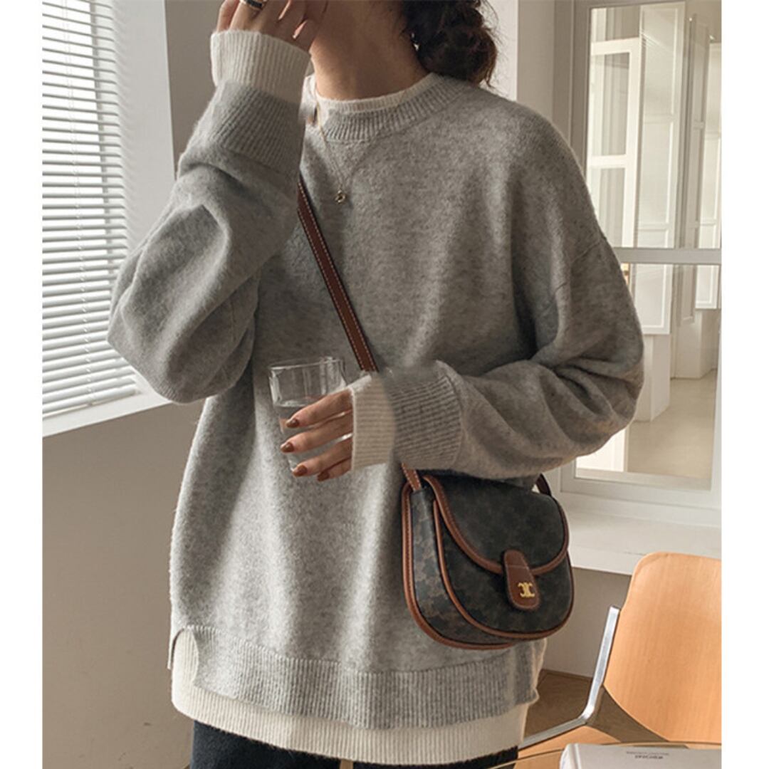 春のコーディネートにぴったりなレディース トップス プルオーバーが登場です。萌袖とクルーネックデザインがポイントで、ゆったりとしたシルエットが大人可愛い印象を与えます。カジュアルな中にもおしゃれさが漂います。無地なので、様々なボトムスとの相性も抜群。