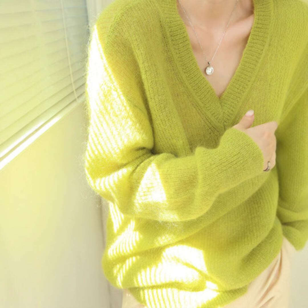 大人の女性にぴったりな、フェミニンな印象を持つVネックニット。