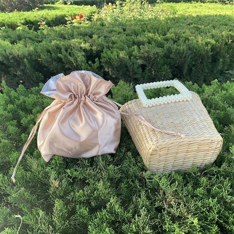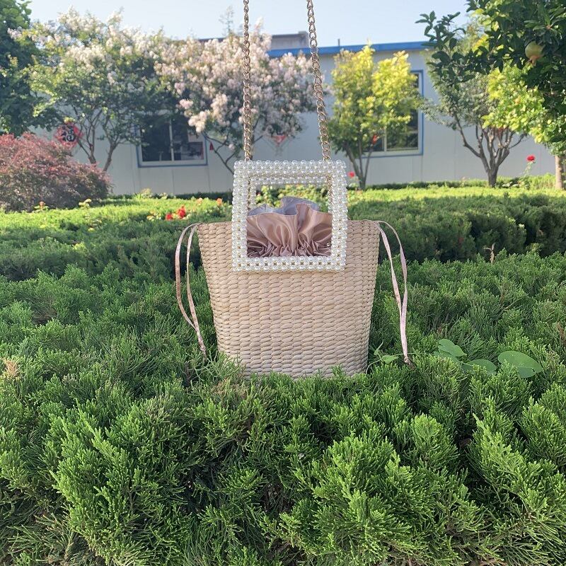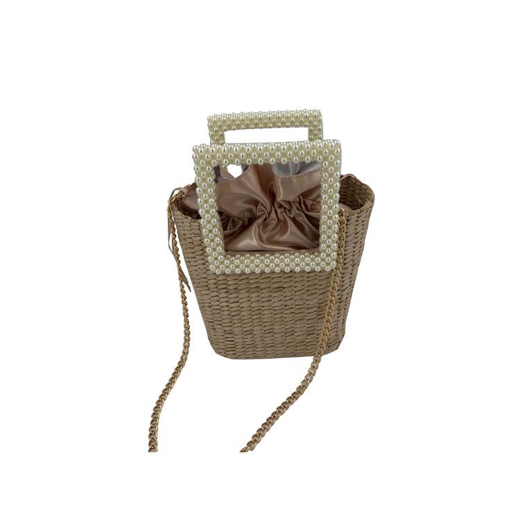 軽やかなストローバッグ素材にパールチェーンがアクセントとなり、華やかさを演出。