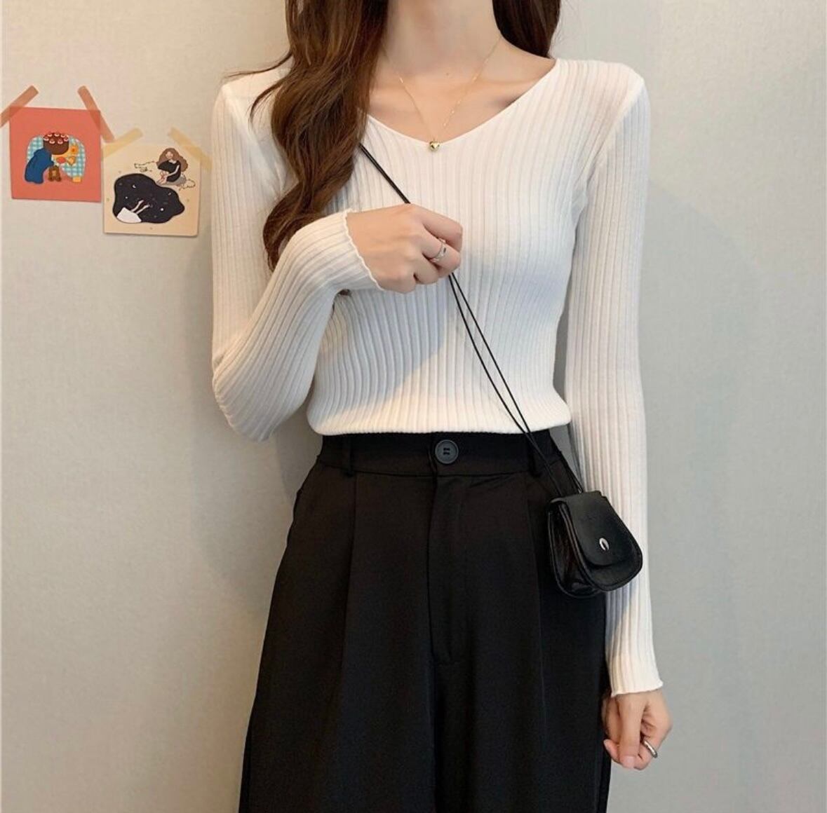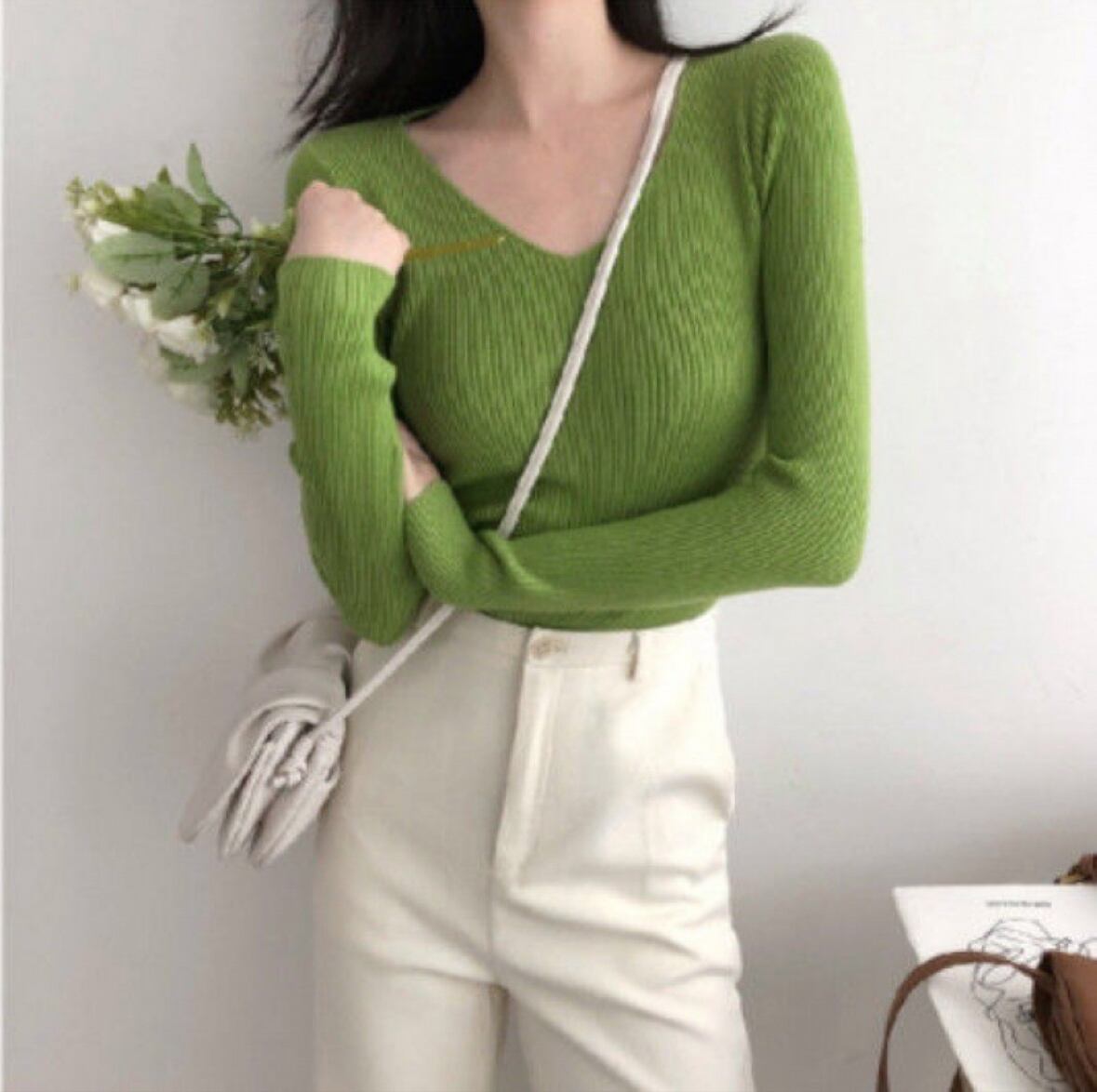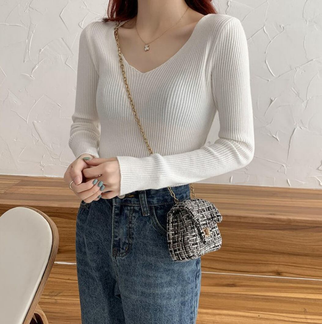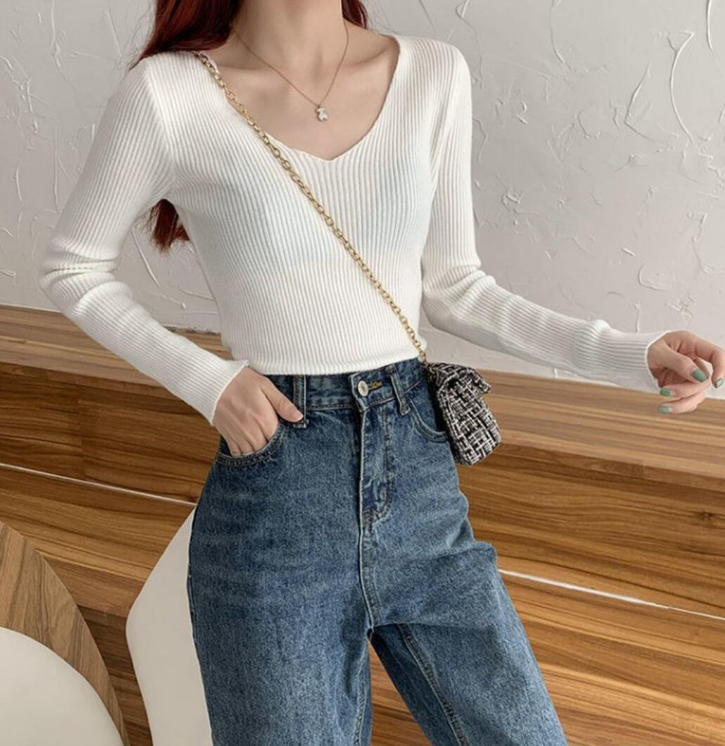 シンプルでありながら、上品さを兼ね備えたレディーストップスが登場!! 柔らかなリブニット素材で、着心地抜群の一枚です。Vネックデザインが顔周りをすっきりと見せ、カジュアルなシーンからデート、お出かけまで幅広く活躍します。