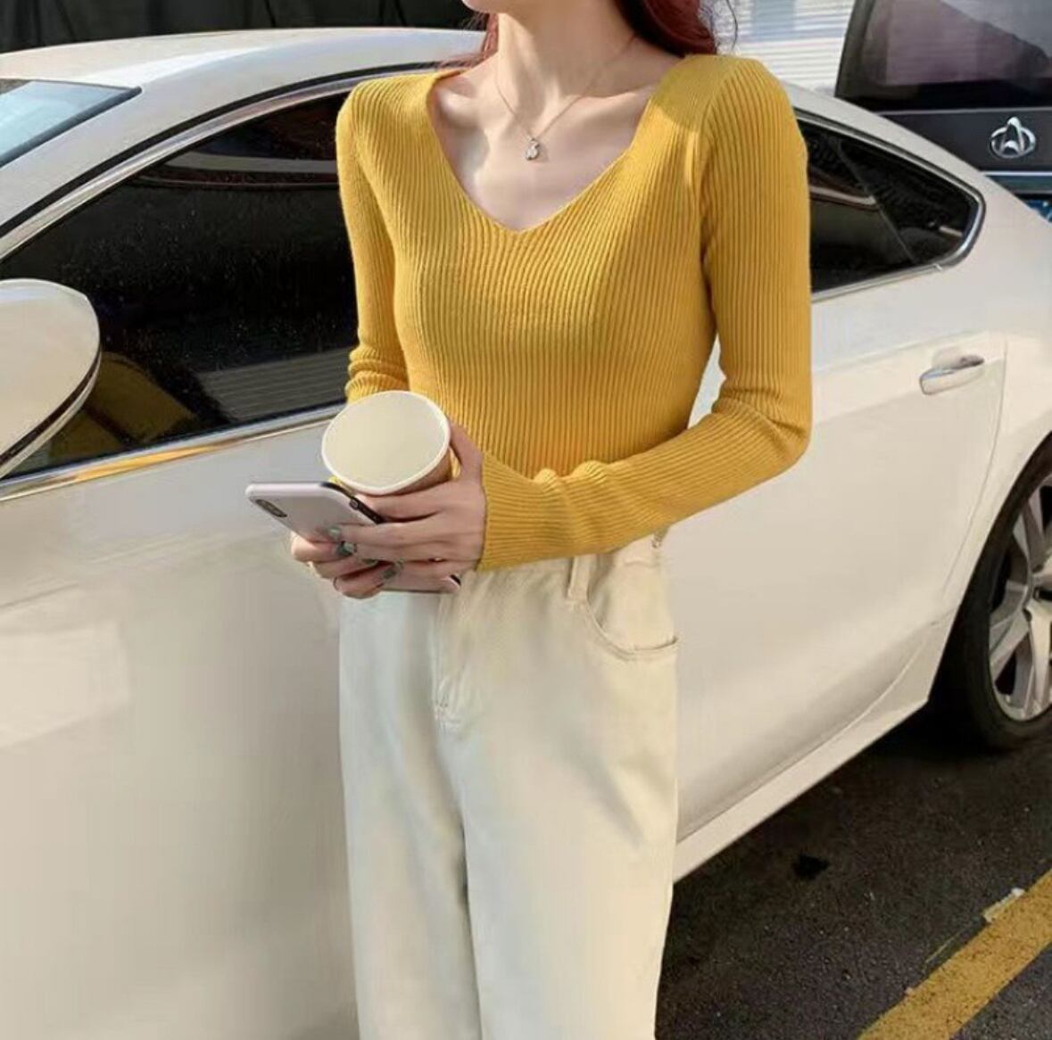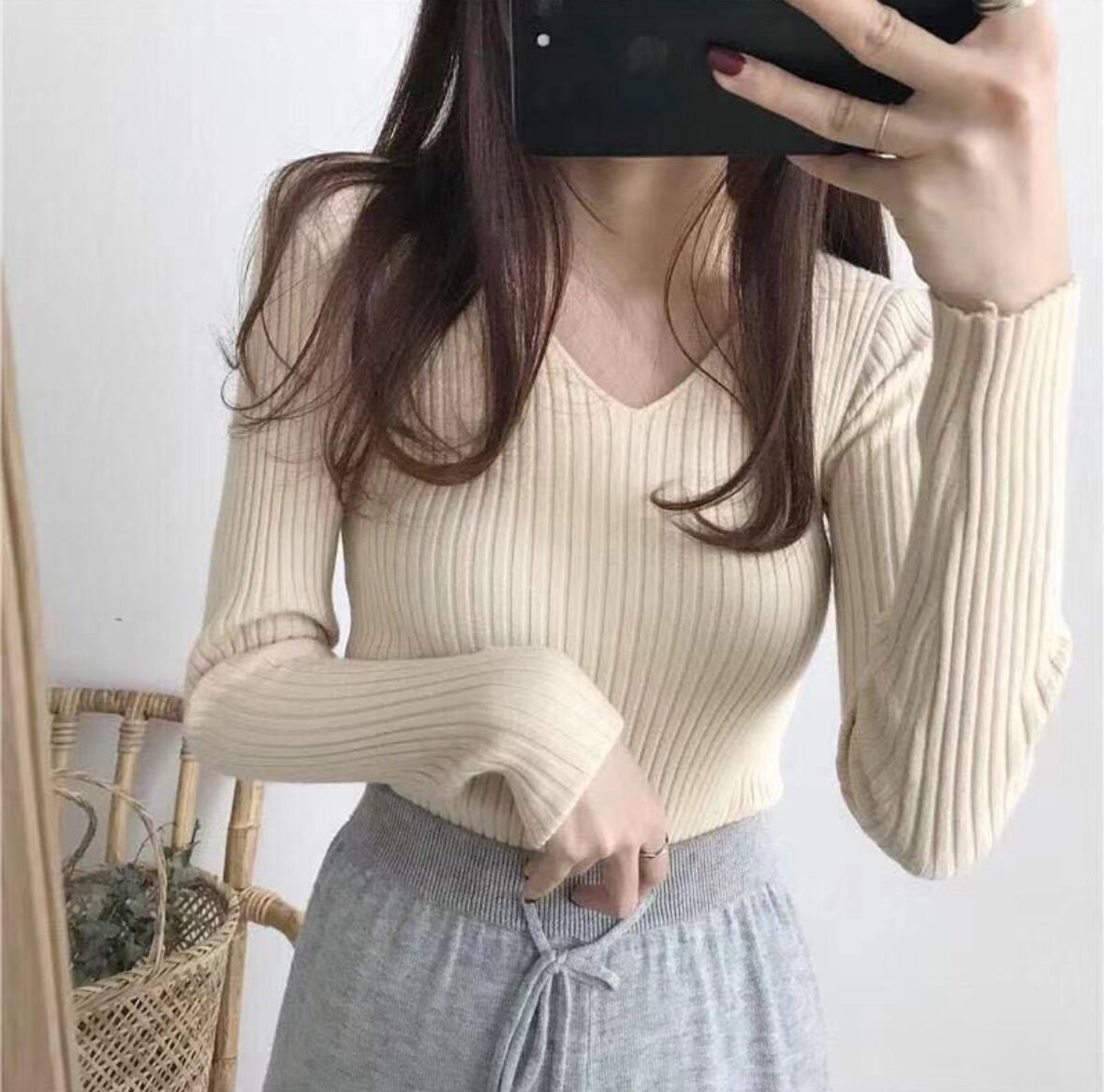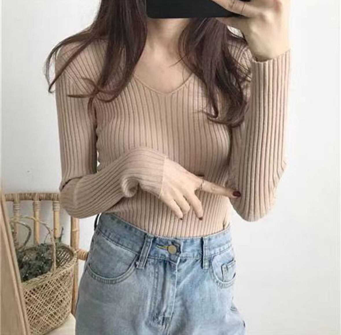 シンプルでありながら、上品さを兼ね備えたレディーストップスが登場!! 柔らかなリブニット素材で、着心地抜群の一枚です。Vネックデザインが顔周りをすっきりと見せ、カジュアルなシーンからデート、お出かけまで幅広く活躍します。