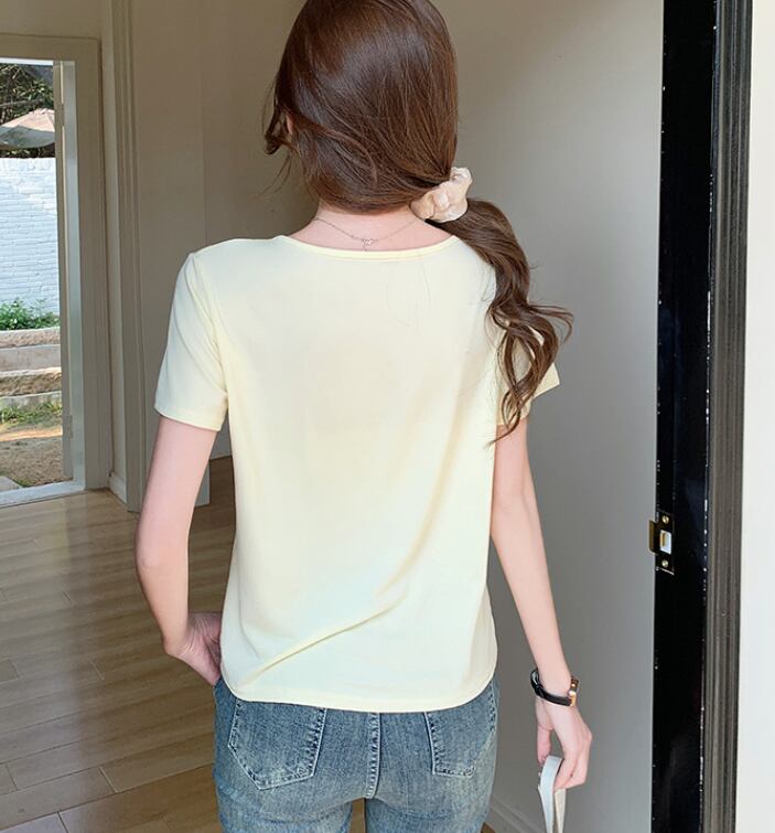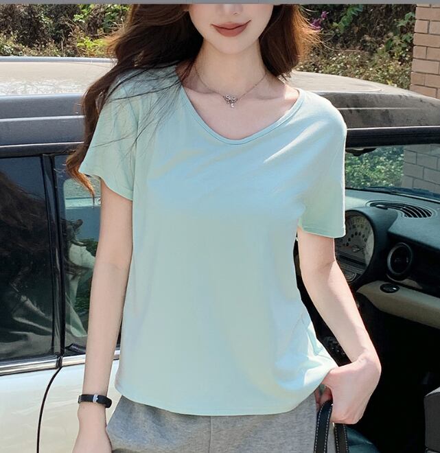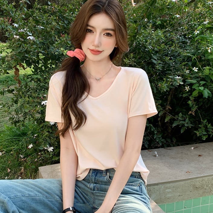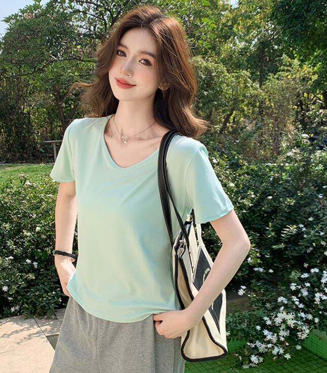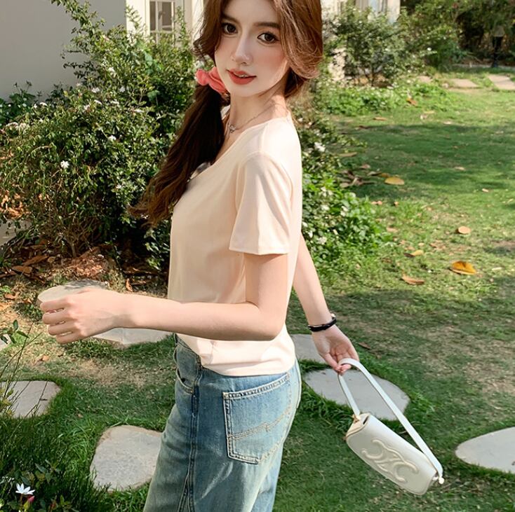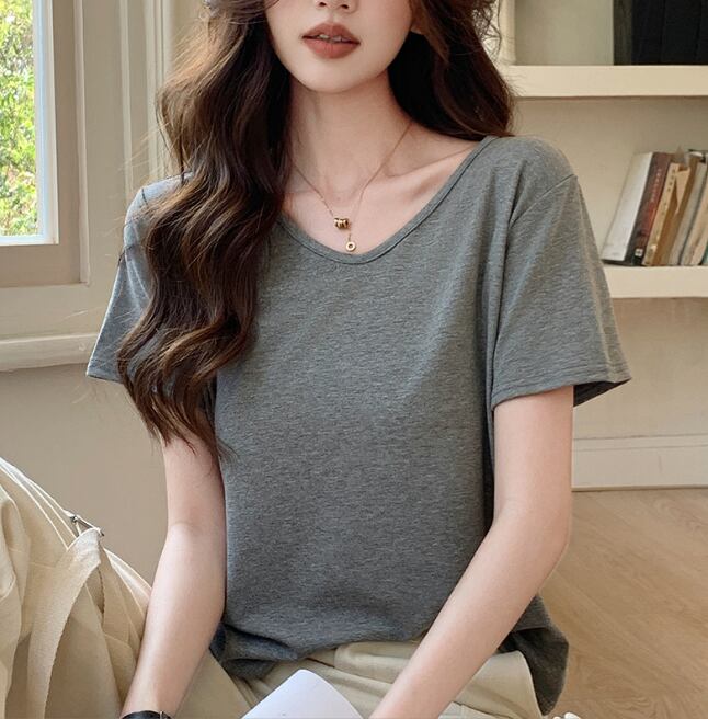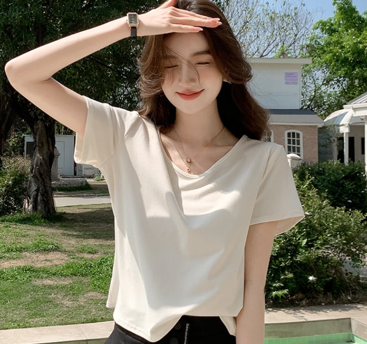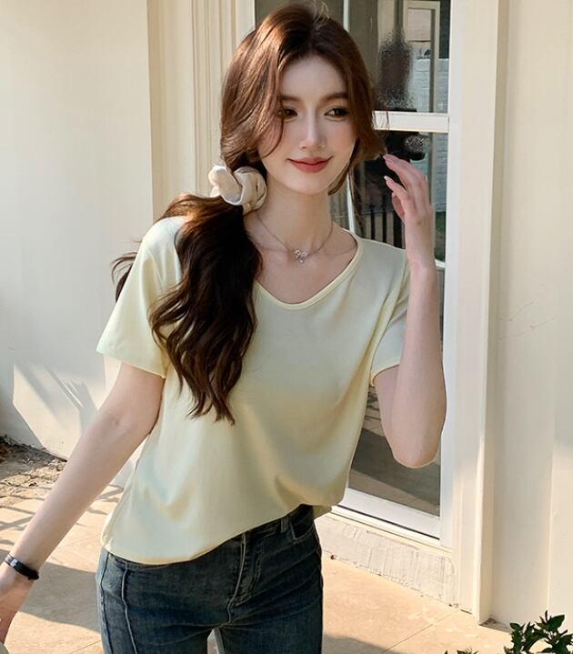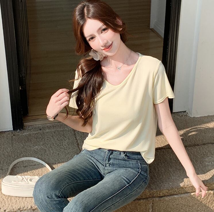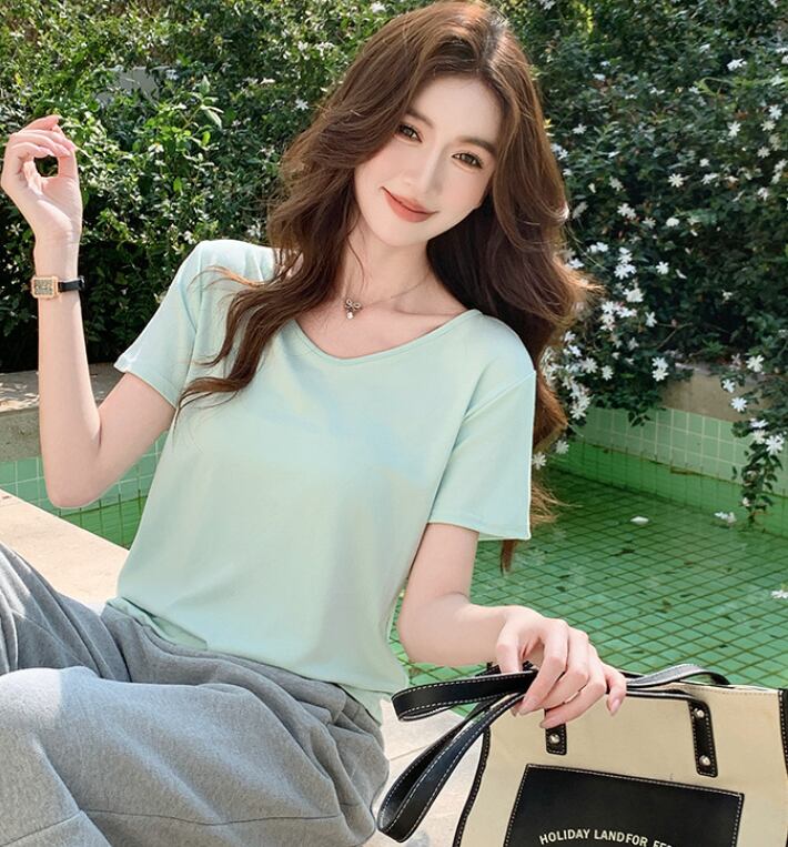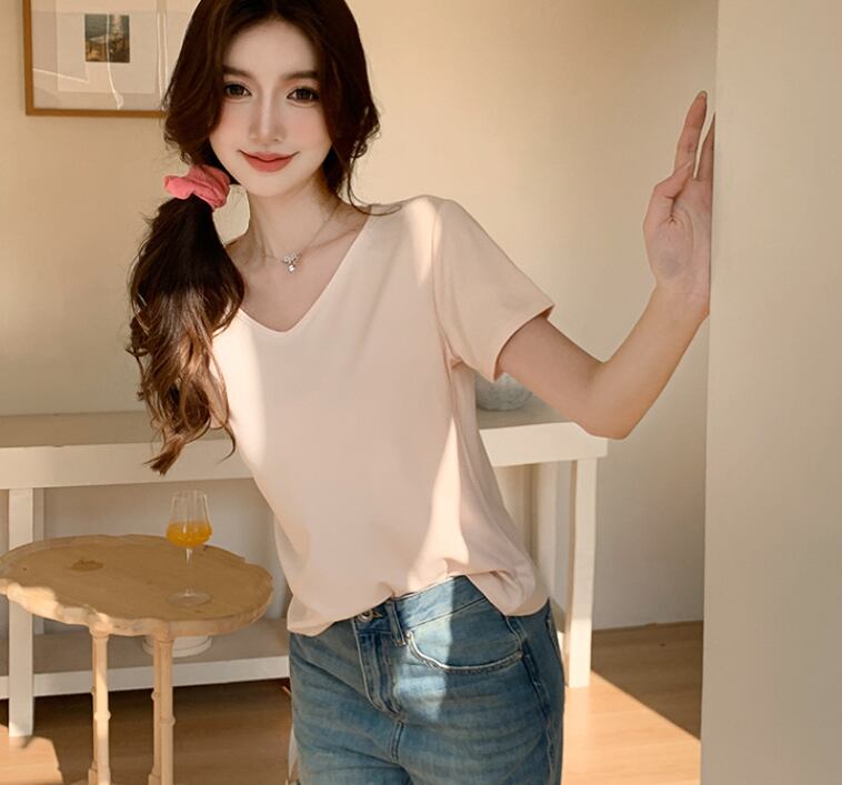 シンプルで大人可愛い、Vネックの半袖プルオーバーTシャツです。 襟なしデザインなので、こなれ感たっぷり! どんなスタイルにも合わせやすい一枚です。 普段使いからデートやお出かけ、さらには学校や通勤シーンまで幅広く活躍すること間違いなし。 色展開 ブラック ホワイト アプリコット ライトグレー グリーン イエロー ピンク サイズ S M L XL 2XL サイズ(cm) S /着丈 56 /バスト 49 /肩幅 39 M /着丈 57 /バスト 51 /肩幅 40.2 L /着丈 58 /バスト 53 /肩幅 41.4 XL /着丈 59 /バスト 55 /肩幅 42.6 2XL /着丈 60 /バスト 57 /肩幅 43.8 《商品について》 当ショップで取り扱っている商品は、海外で製造されたノーブランド品となっております。 日本製品と比べて、縫い目の粗さ、小さなほつれ、軽微な汚れやシミ、ファスナーのかたさ、形やサイズのばらつき、仕様の細かな違い、その他仕上げの甘さなどが見られる場合がございます。 サイズは平置きでの実寸を記載しておりますが、測定方法や生産工程の違いにより、最大で3cm程度の誤差が生じる場合がございます。 これらは製品の特性であり、不良品には該当いたしませんので、あらかじめご了承ください。 また、ご利用のモニターやスマートフォンの設定などにより、実物と色味が異なって見える場合がございます。 《発送について》 当ショップの商品はすべてお取り寄せ商品となっております。 ご入金確認後、商品のお届けまでに10〜24日程度のお時間を頂戴しております。 状況により、通常よりお時間をいただく場合もございますので、あらかじめご了承ください。 また、欠品や製品の不具合などにより、ご注文をキャンセルさせていただく場合がございます。何卒ご理解賜りますようお願い申し上げます。 ※ご入金確認後にメーカーへ発注を行っております。 ※メーカーにて在庫切れが確認された場合は、速やかにご返金させていただきます。 《返品についての特約に関する事項》 ご注文確定後のキャンセル、ならびにサイズ・カラー等の内容変更はお受けしておりません。 ご注文の際は内容をご確認のうえ、お間違いのないようご注意ください。商品に不良がある場合を除き、返品・交換はお受けしておりません。 何卒ご理解のほど、よろしくお願い申し上げます。 最後までご覧いただき、誠にありがとうございました。 N-NBL-A00017