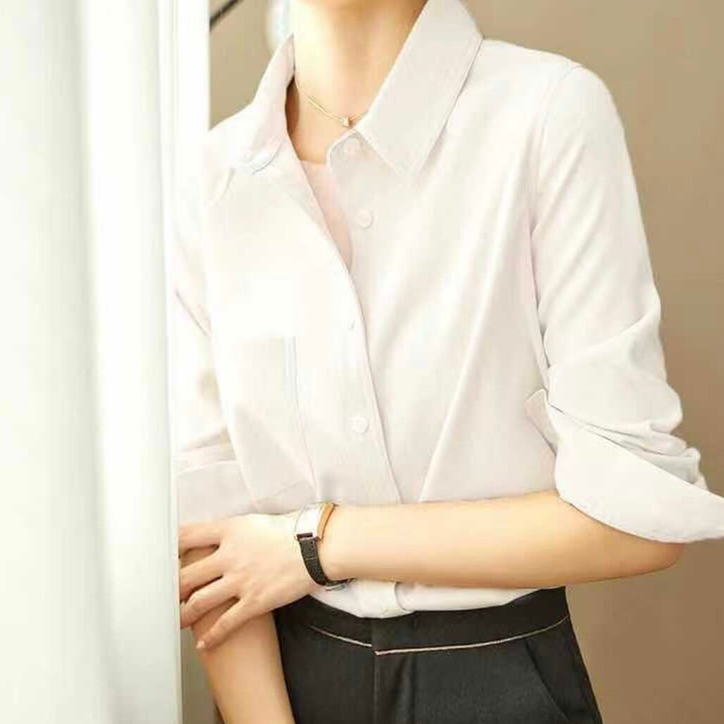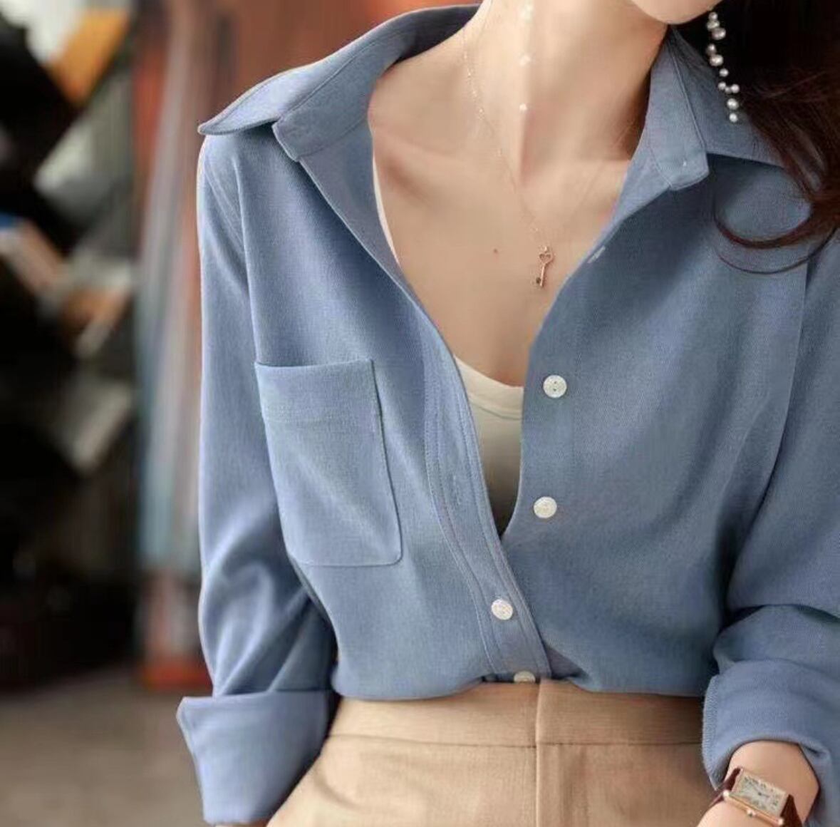 大人可愛い印象のレディース長袖シャツ!襟付きの角襟デザインが、清楚で上品な雰囲気を演出します。シンプルながらもおしゃれなスタイルが楽しめるこのブラウスは、カジュアルな日常使いから、通勤やデートのお出かけまで幅広く活躍します。ナチュラルな無地デザインは、重ね着コーデや韓国スタイルのこなれ感にもマッチ。女子会や休日のショッピングやカフェでのひとときも楽しく彩ります。