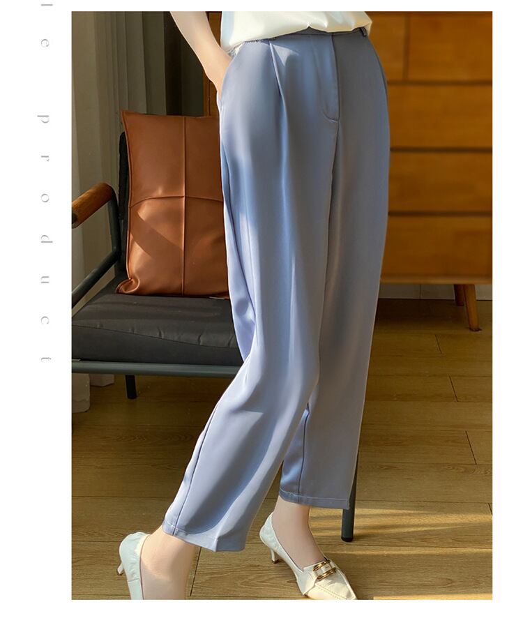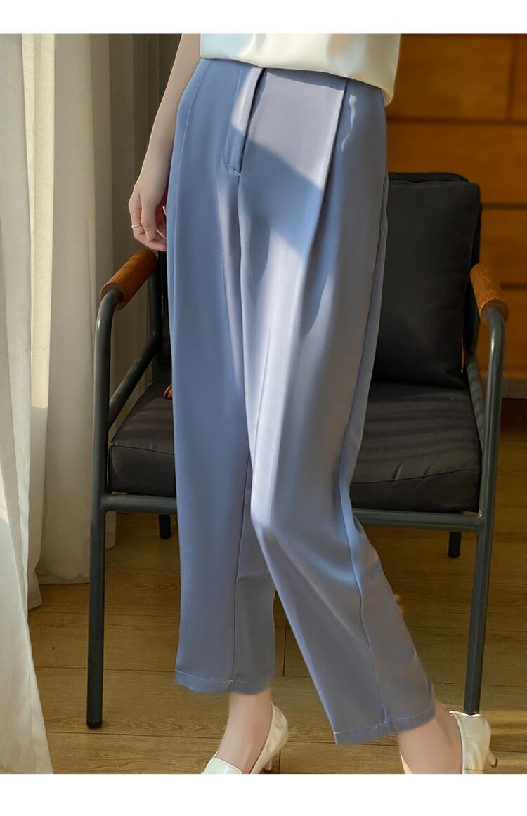 シンプルながらもおしゃれで上品なデザインが特徴のこのパンツは、ハイウエスト仕様で美脚効果抜群。
