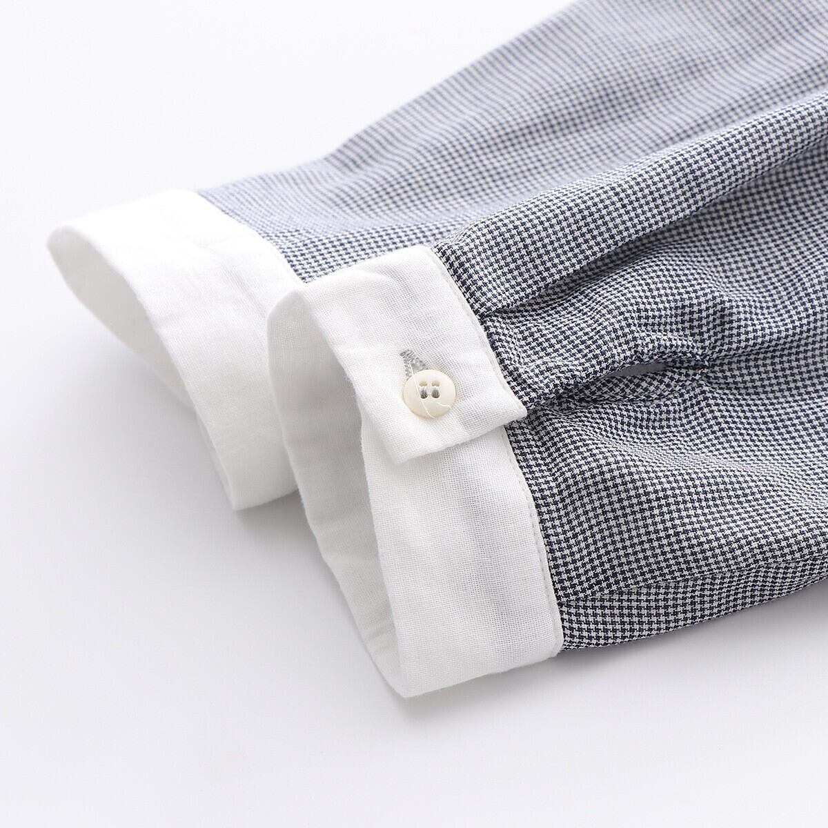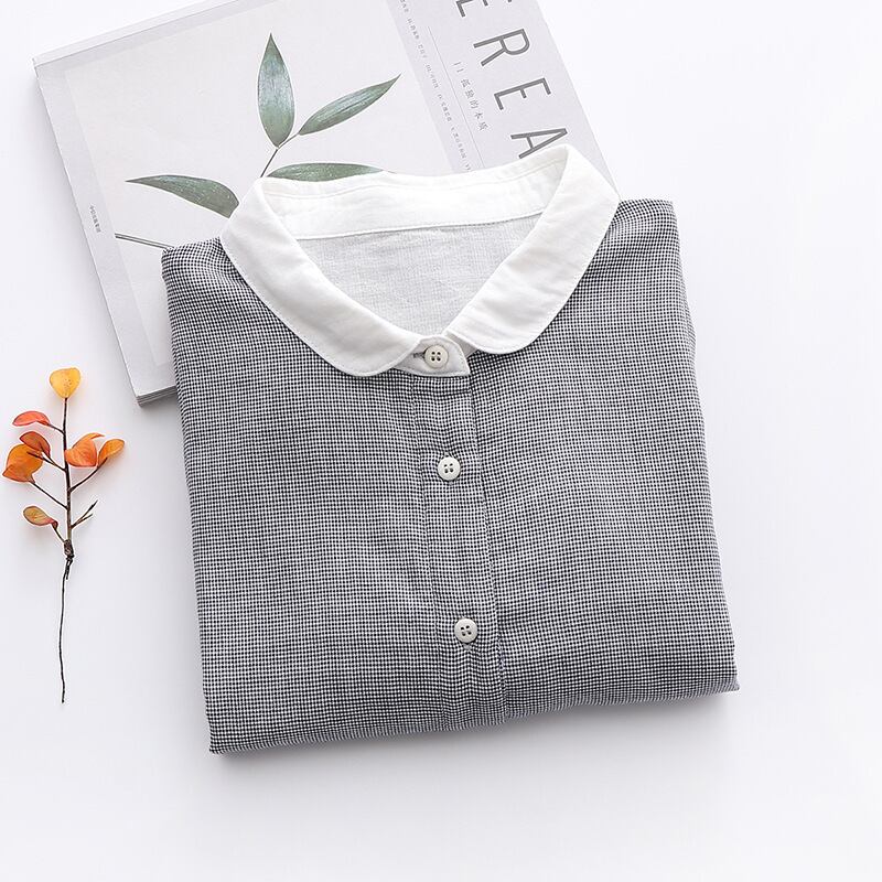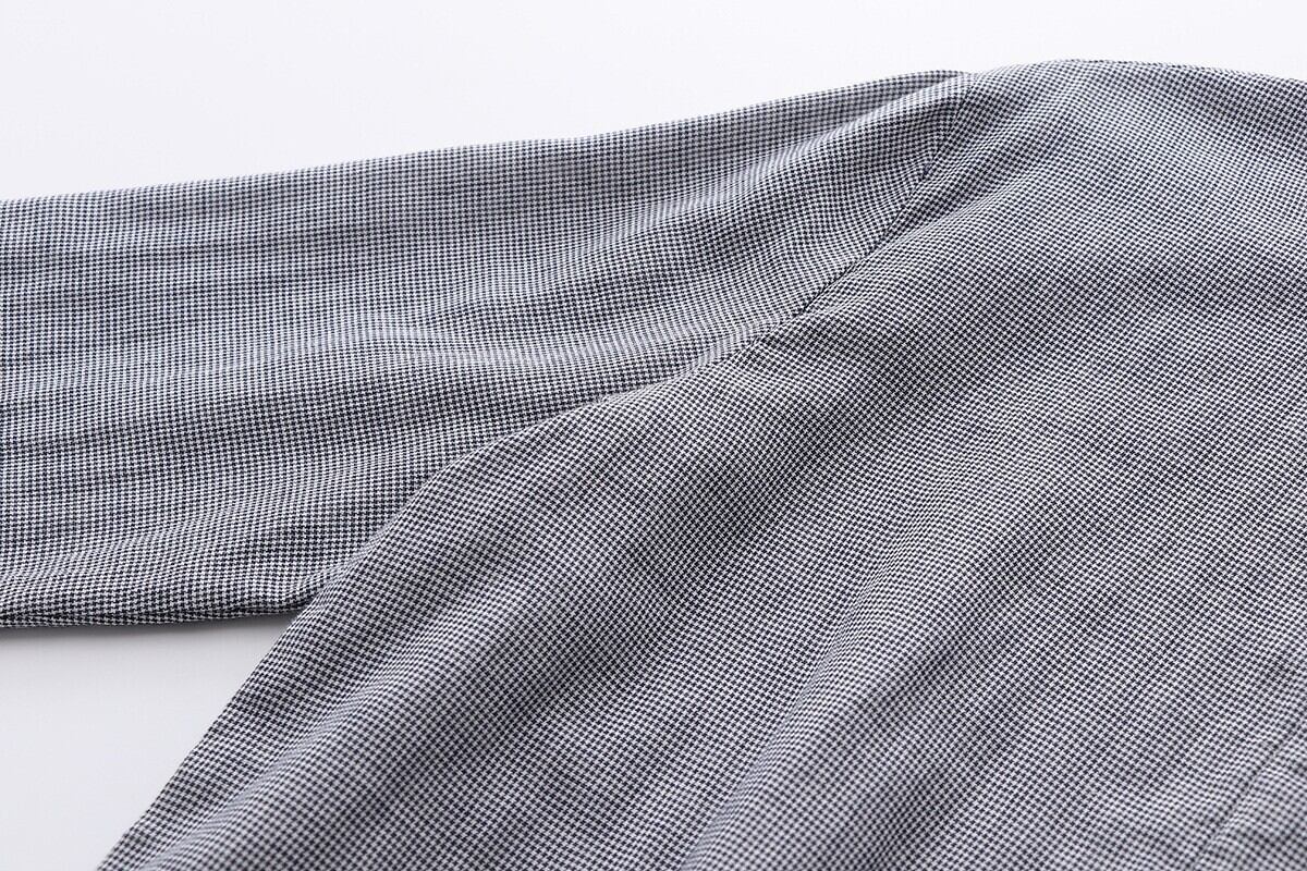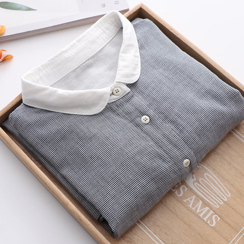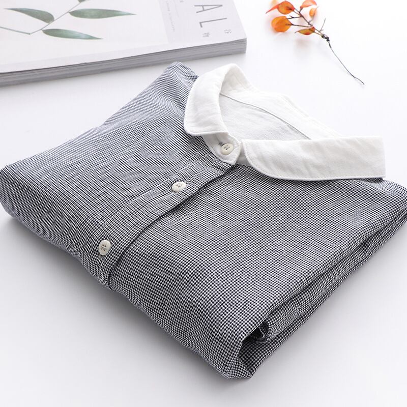 前開きデザインと薄手のコットン素材で、春秋にぴったりな一着。