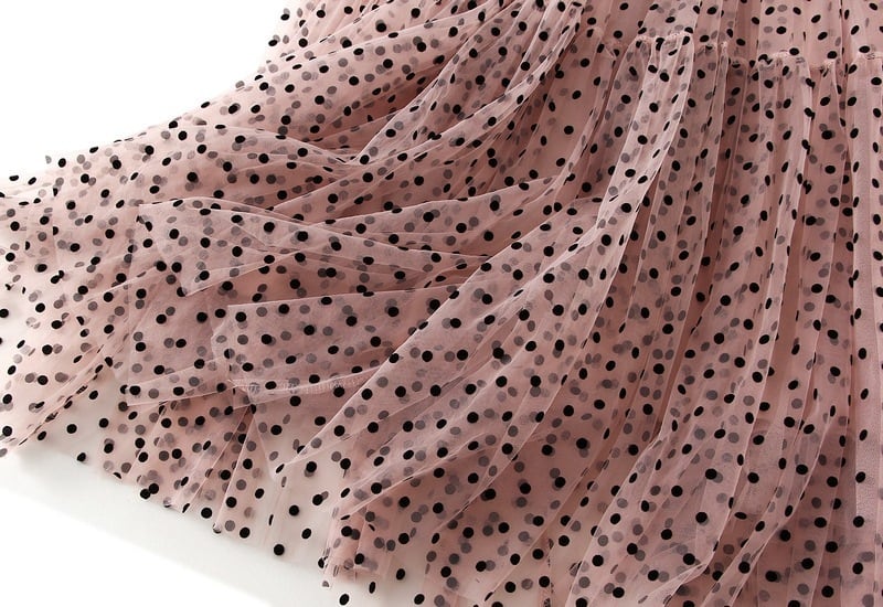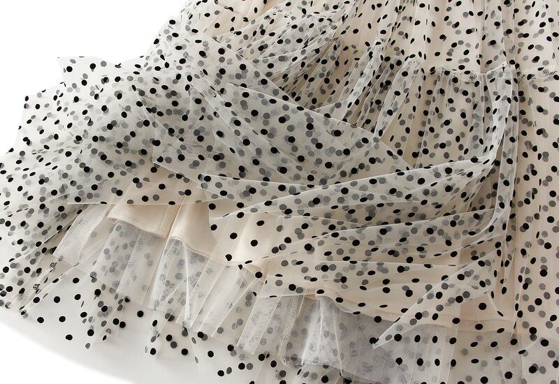 Aライン・ドット柄で女性らしさを引き立ててくれます。