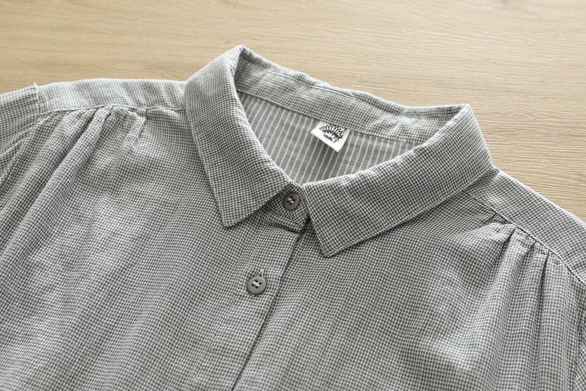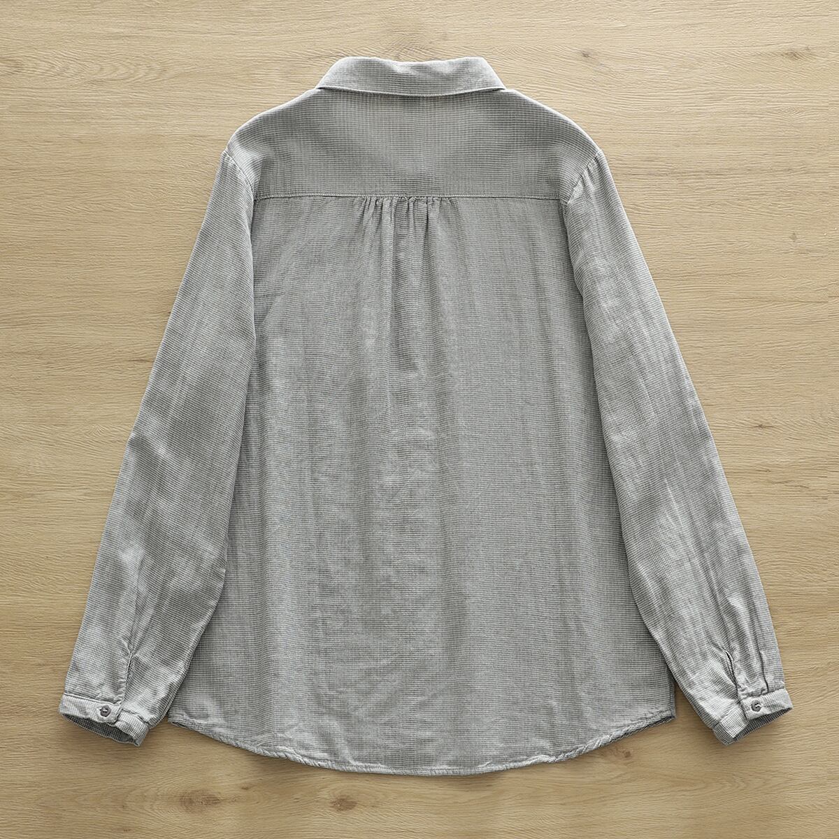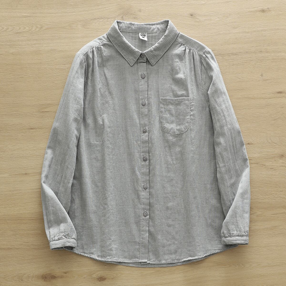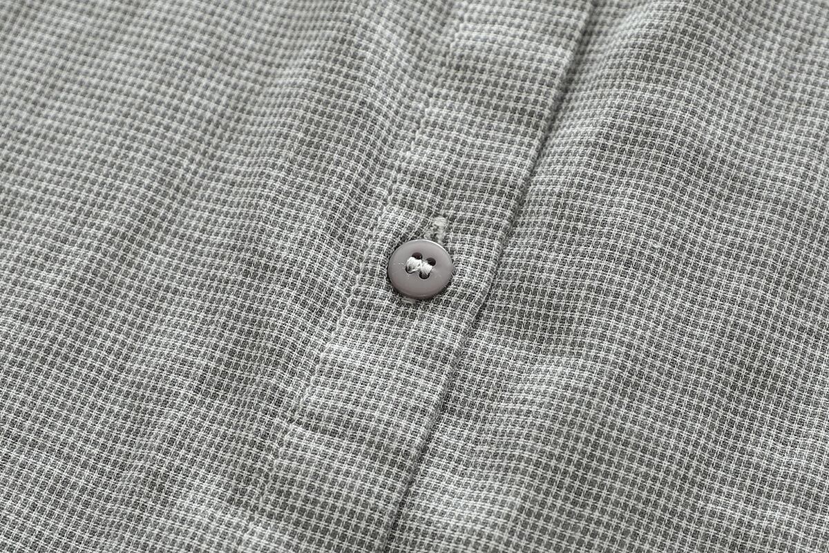 このYシャツは、長袖で襟付き、スリムなシルエットが特長のアイテムで、シンプルながらもこなれ感を感じさせます。