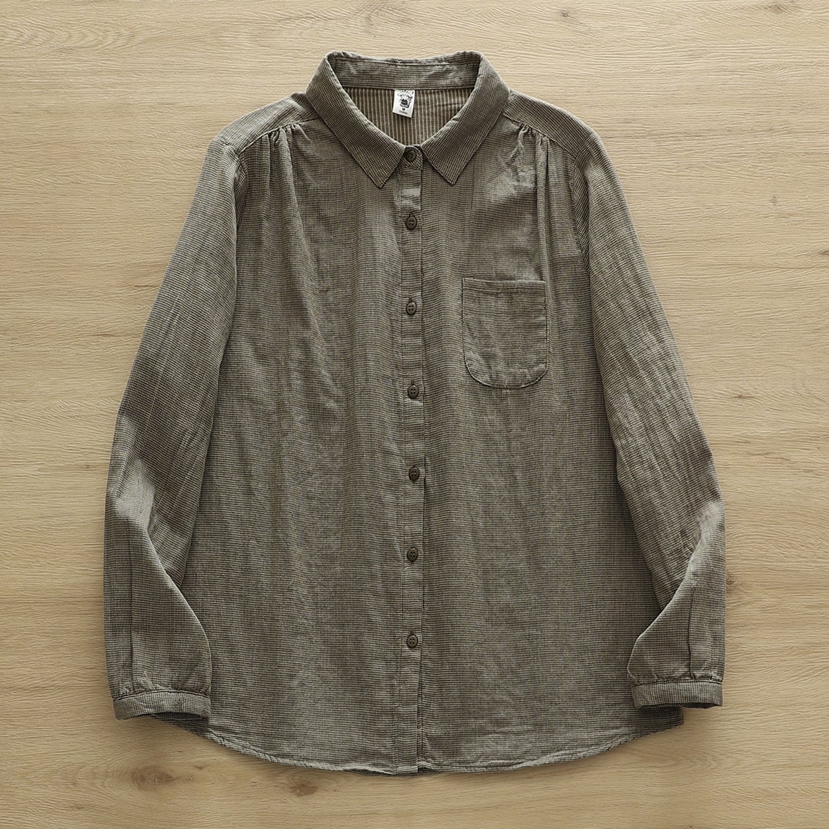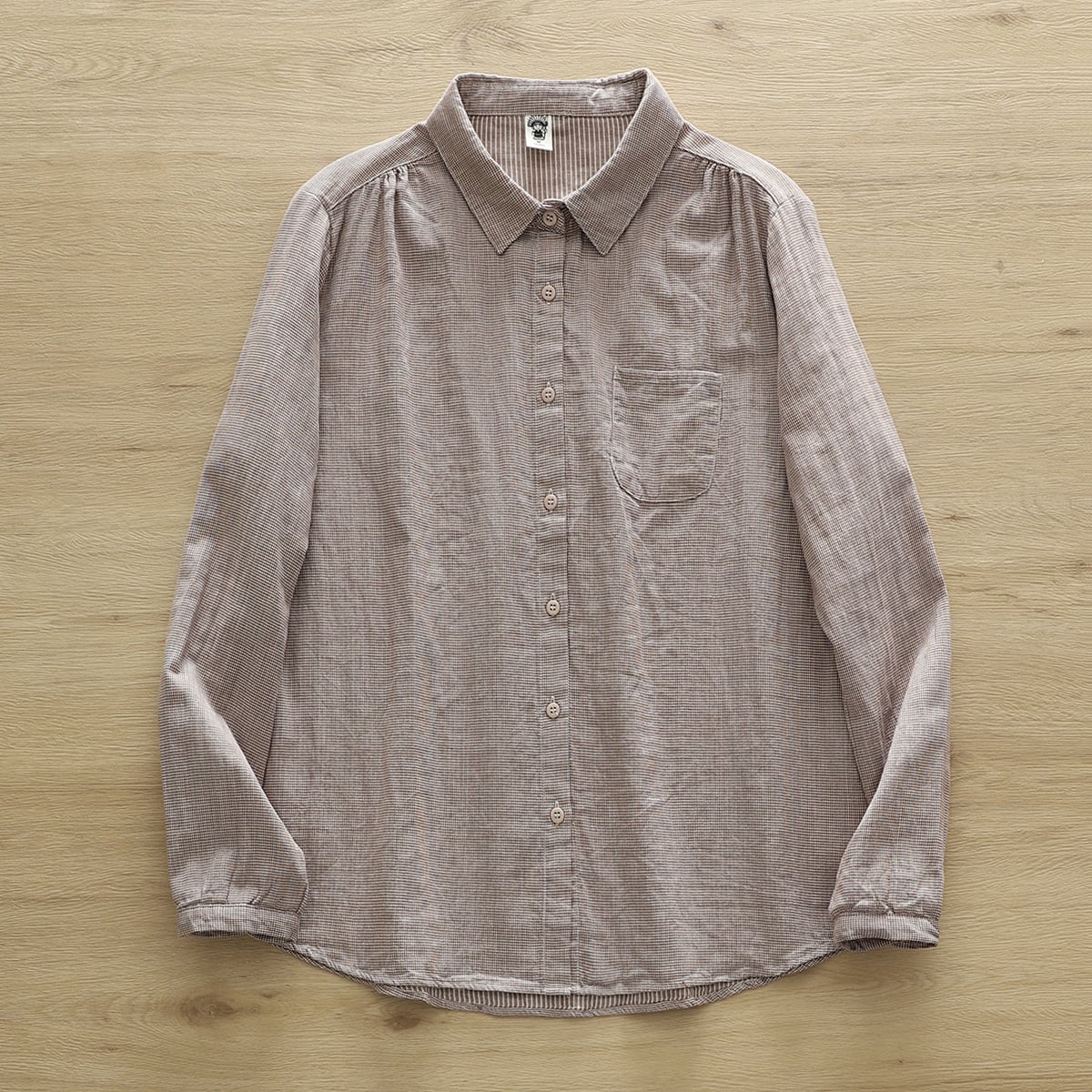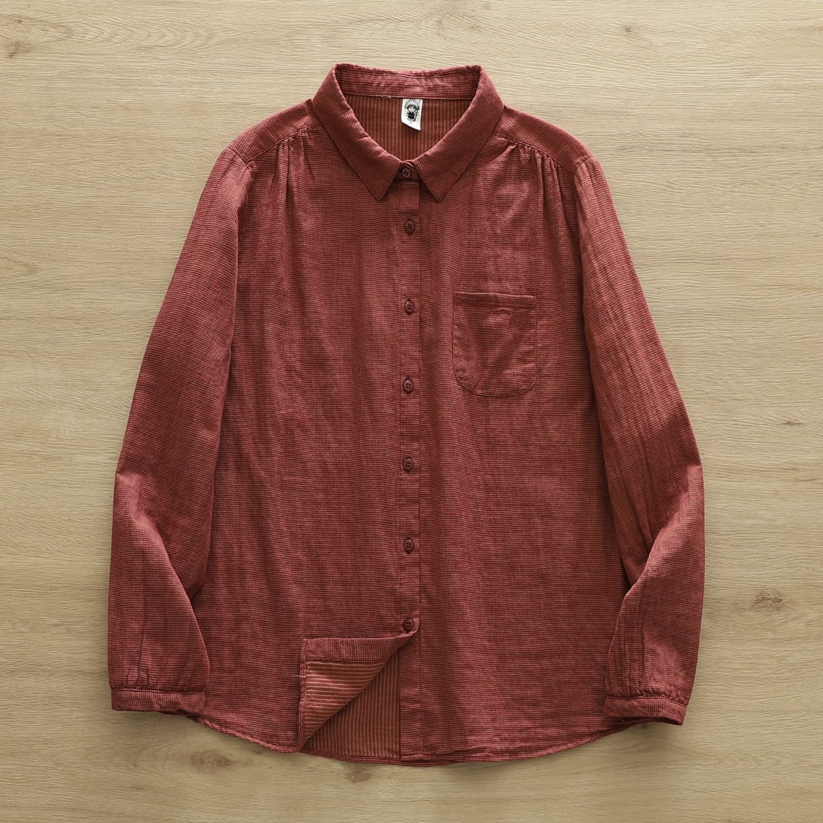 このYシャツは、長袖で襟付き、スリムなシルエットが特長のアイテムで、シンプルながらもこなれ感を感じさせます。