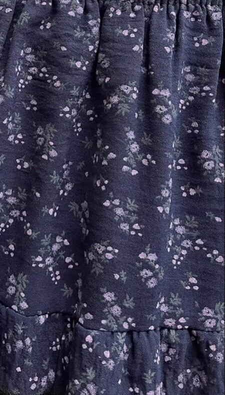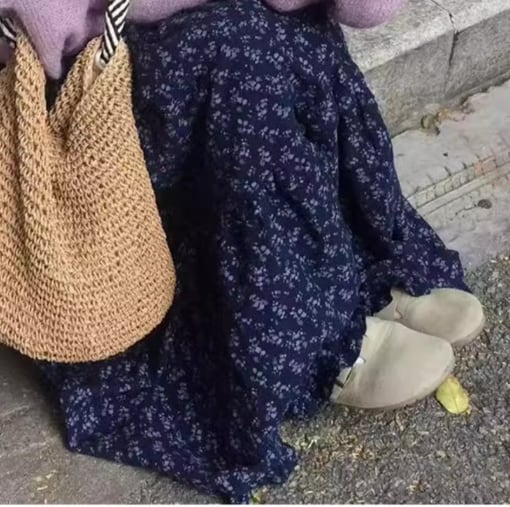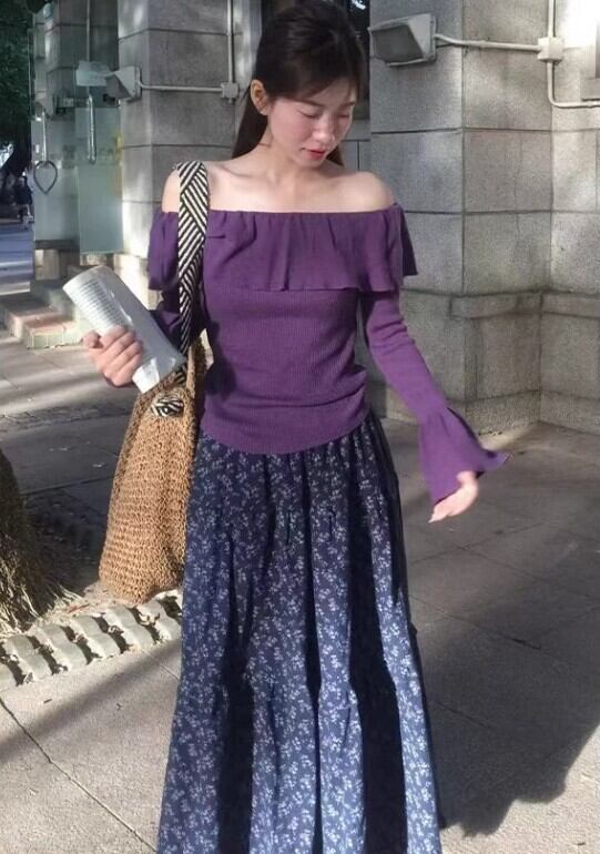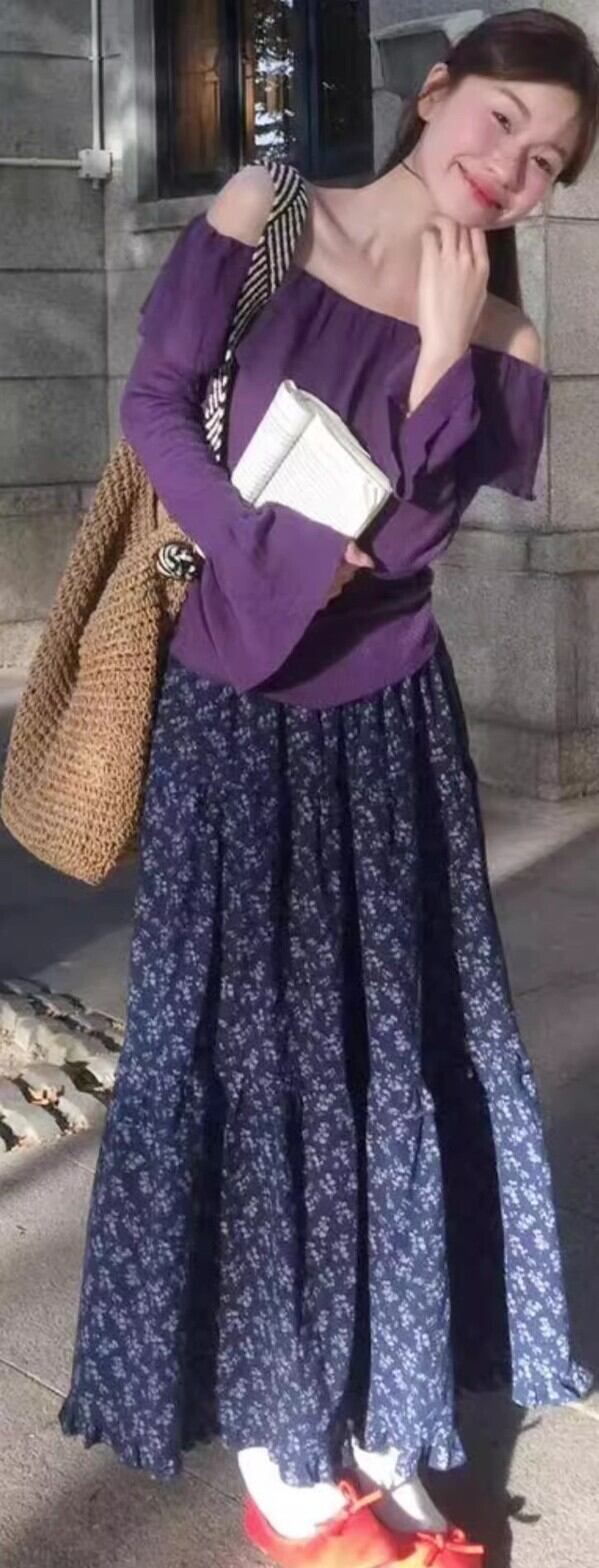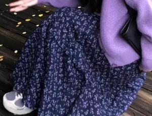 ハイウエストデザインは脚長効果を期待でき、フェミニンな花柄が魅力を引き立てます。