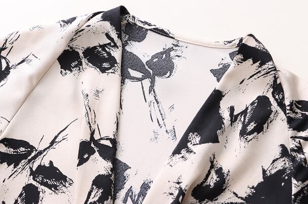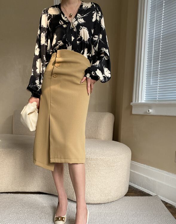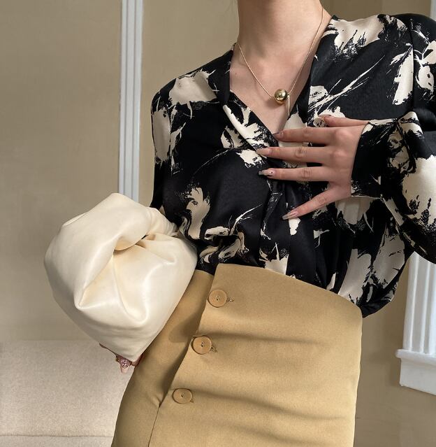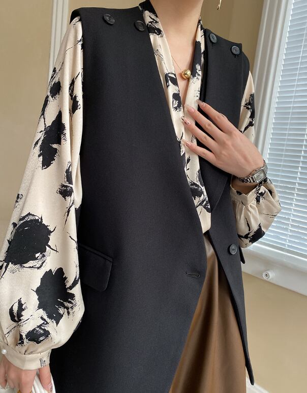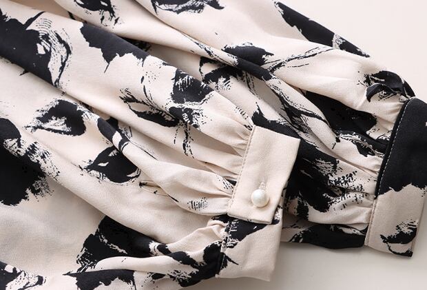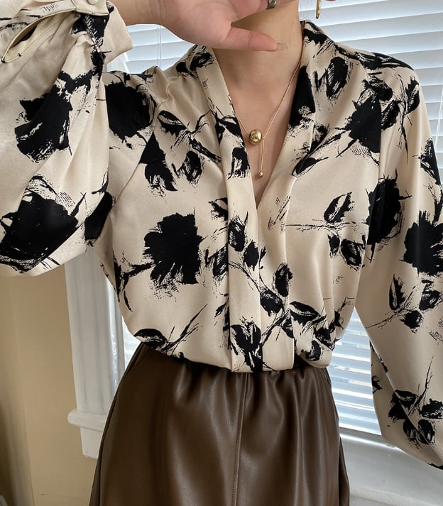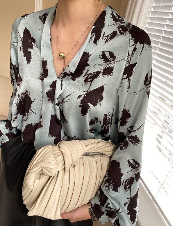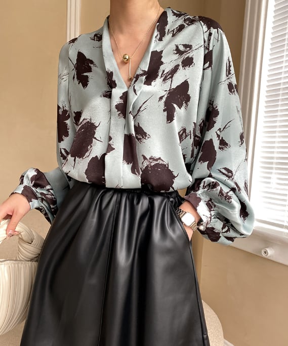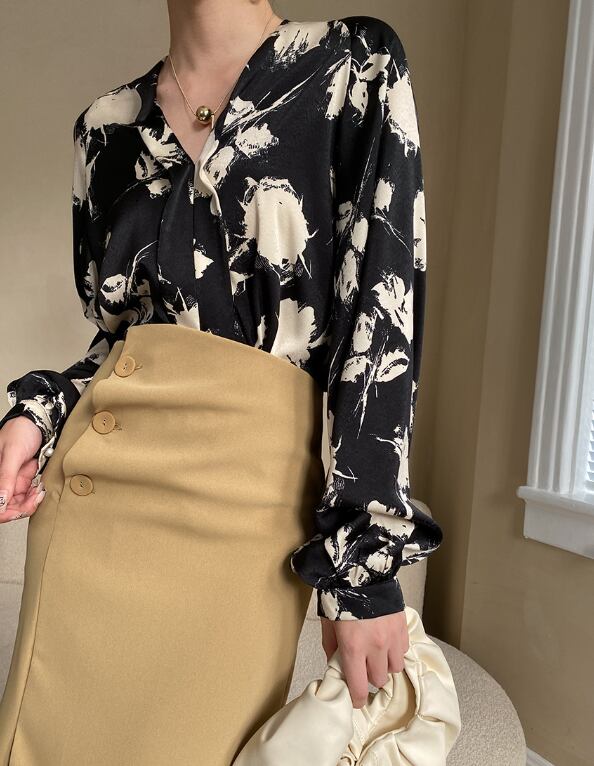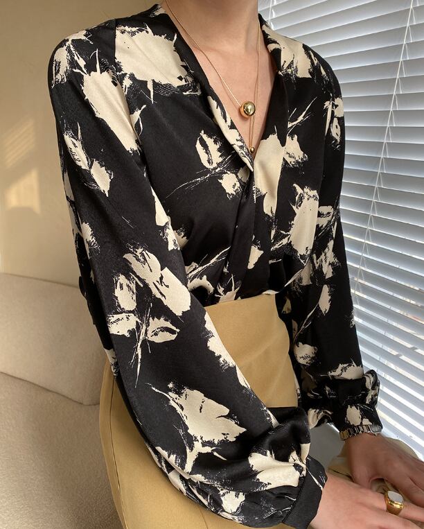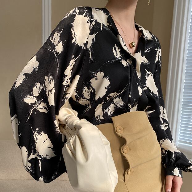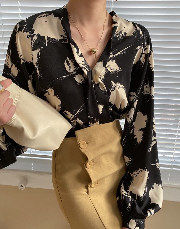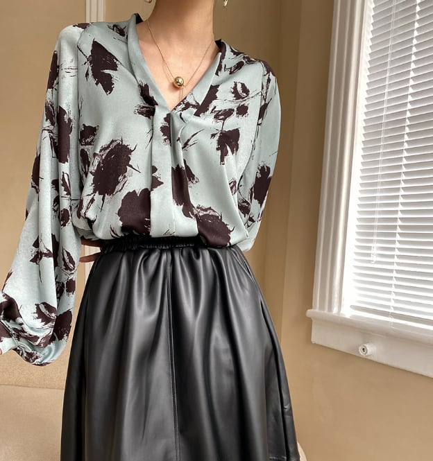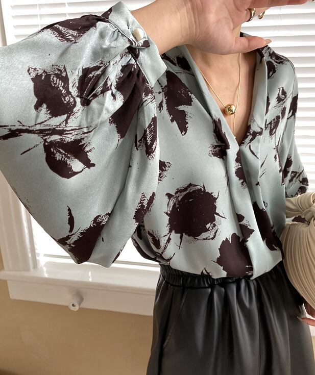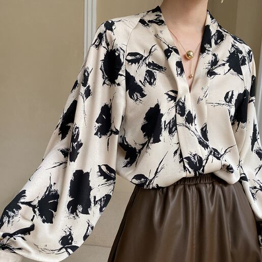 ランタンスリーブとVネックのデザインが、女性らしさを引き立てます。