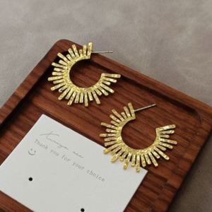 大人可愛い印象のゴールドピアスです。耳元を華やかに彩ります。高級感がありエレガントで上品な魅力を放ちます。個性的なデザインは存在感があり、さまざまなシーンで活躍します。普段使いから特別な日まで幅広く楽しめるアイテムです。