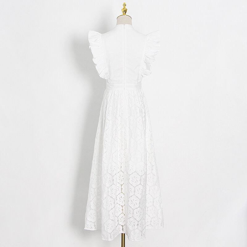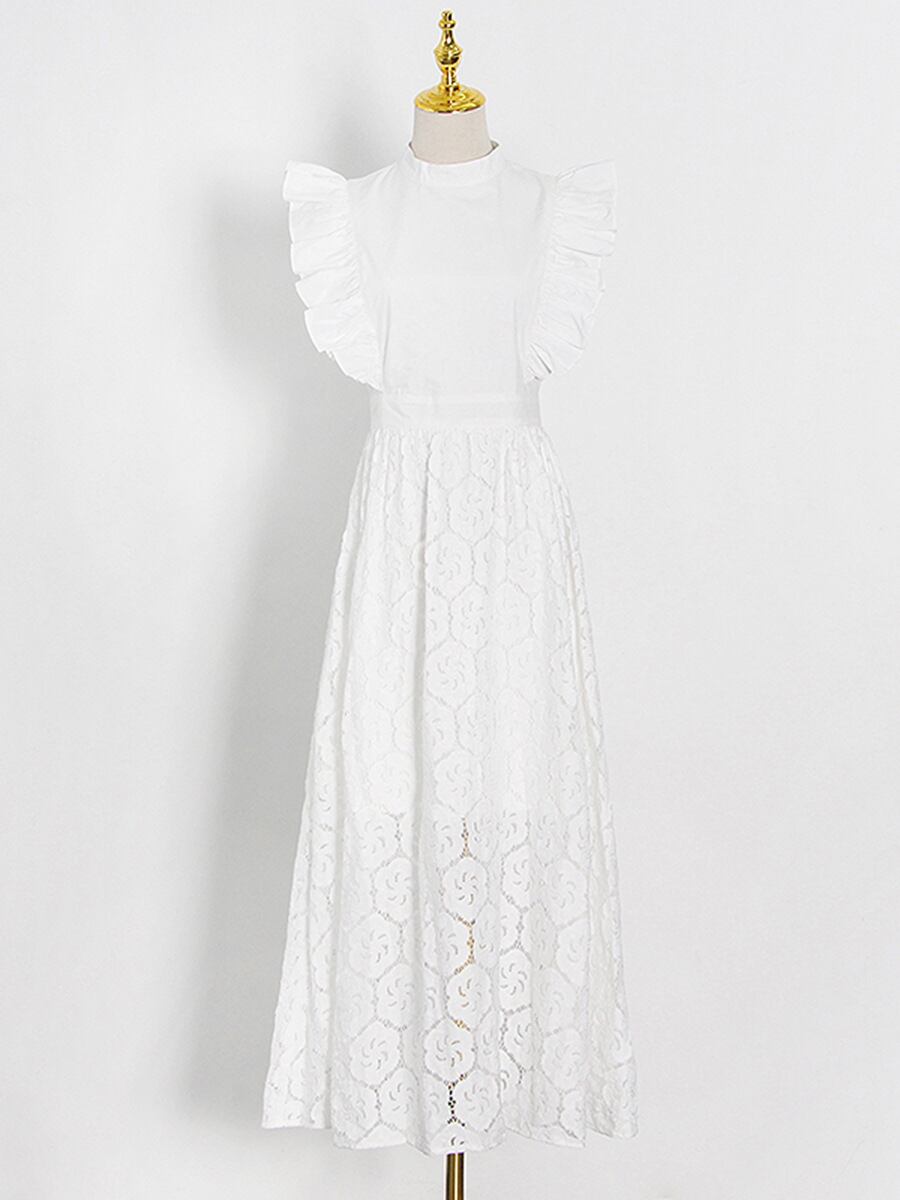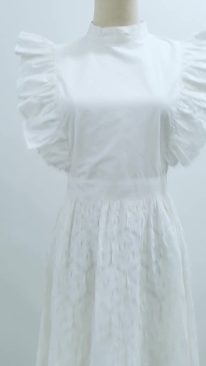 春夏のお出かけにぴったりなノースリーブデザインは、涼しげでありながらエレガントな印象を与えます。