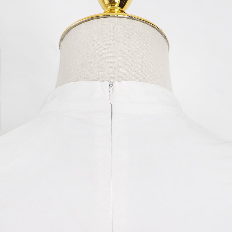 タートルネックが上品さを加え、フレアのAラインシルエットが美しいスタイルを実現。
