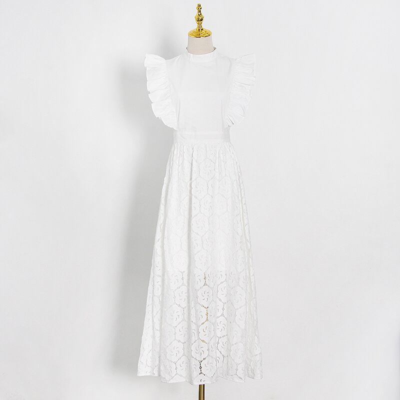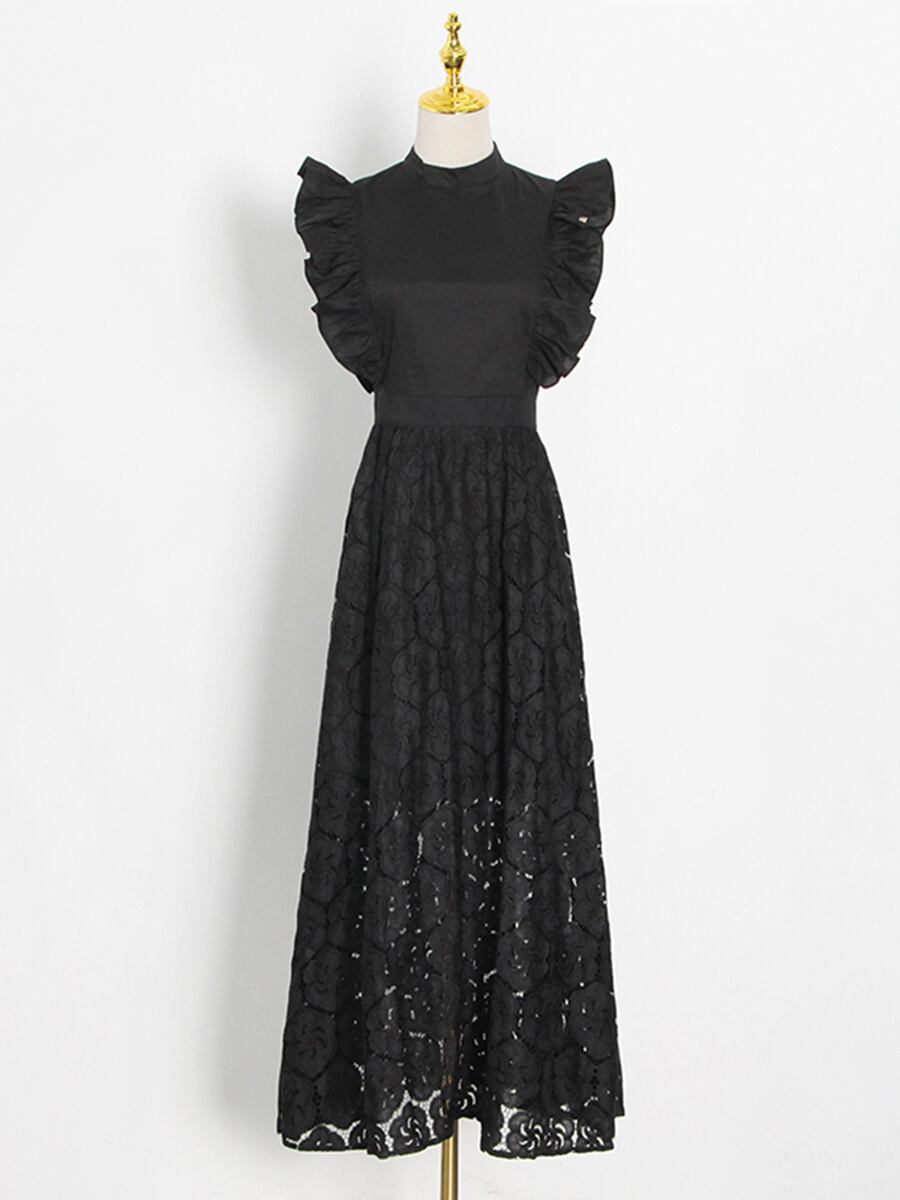 ウエストマークで引き締めつつ、フレアがふんわりと広がるロング丈が存在感を放ちます。