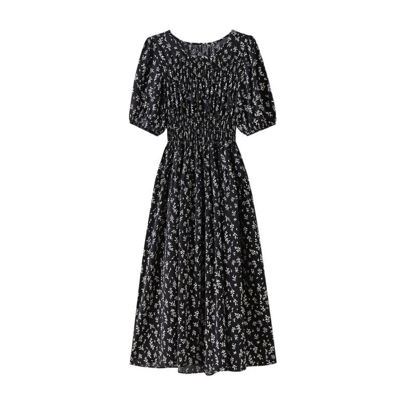 ブラックカラーで甘くなりすぎず、1枚着るだけで大人可愛いコーデが完成します。