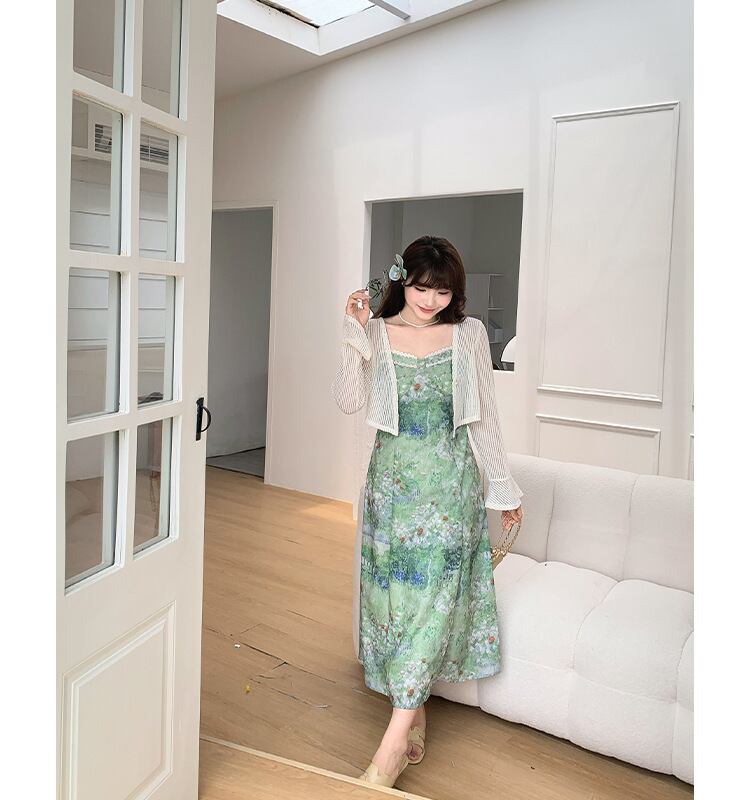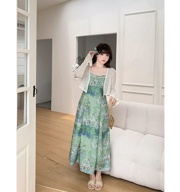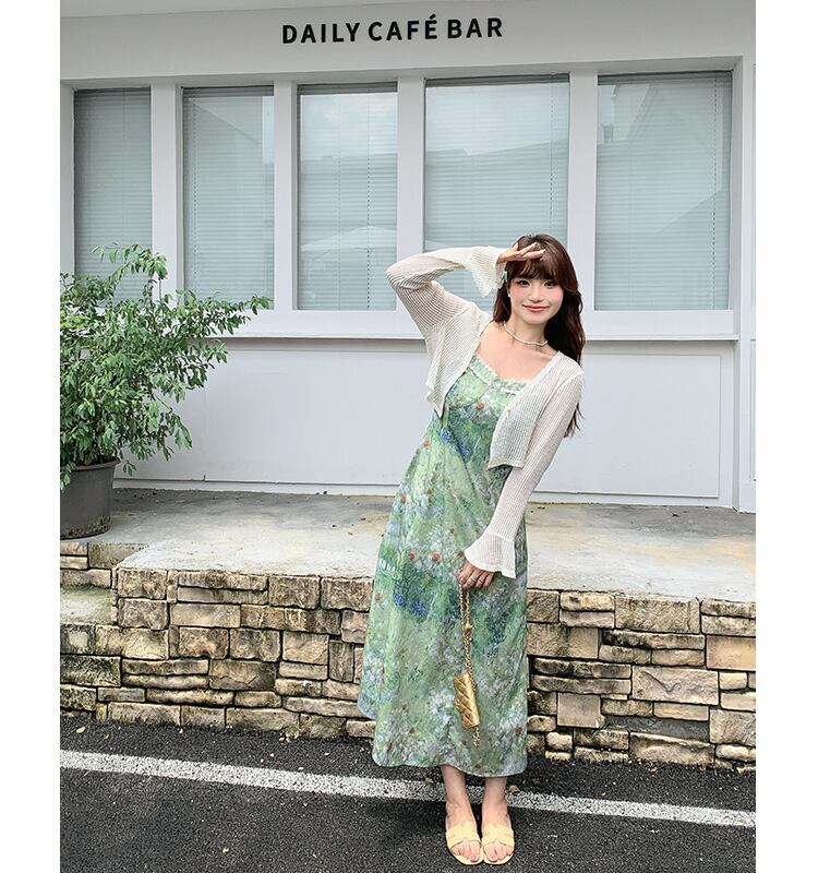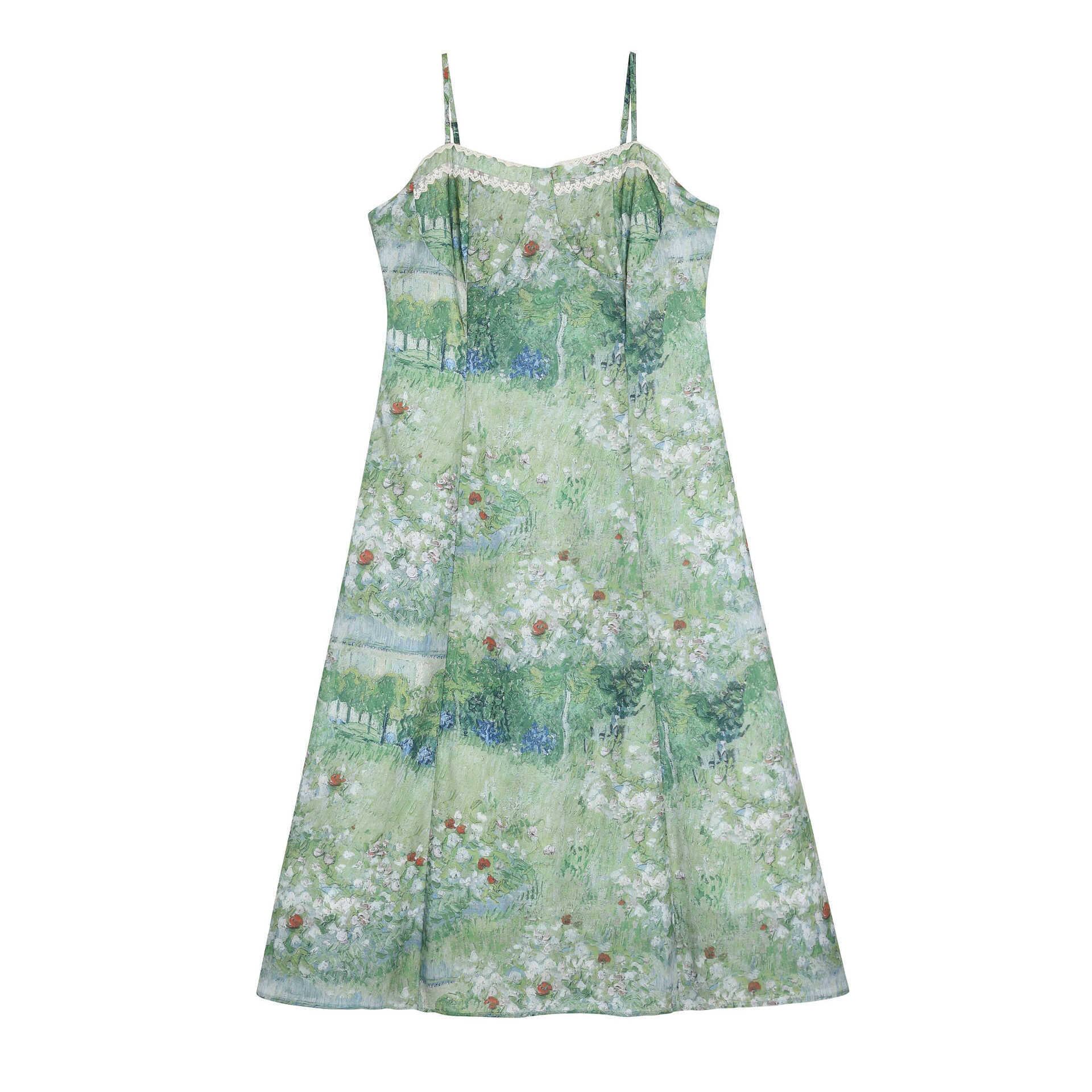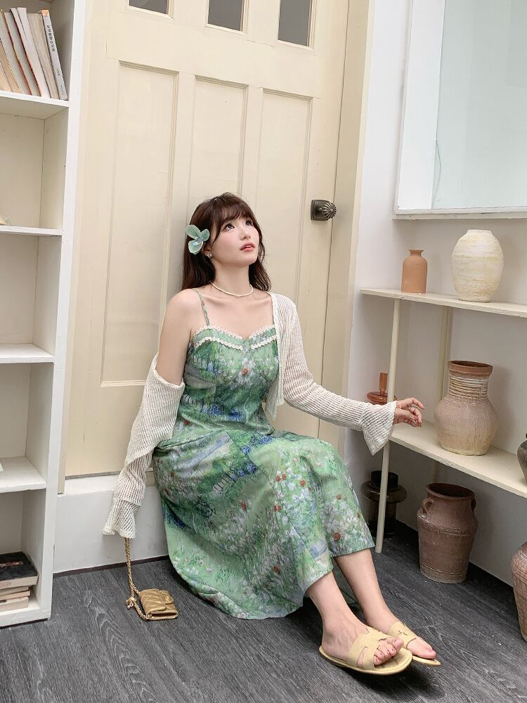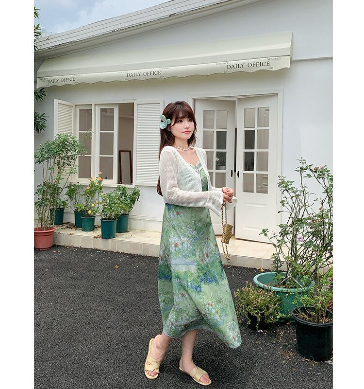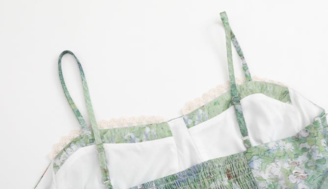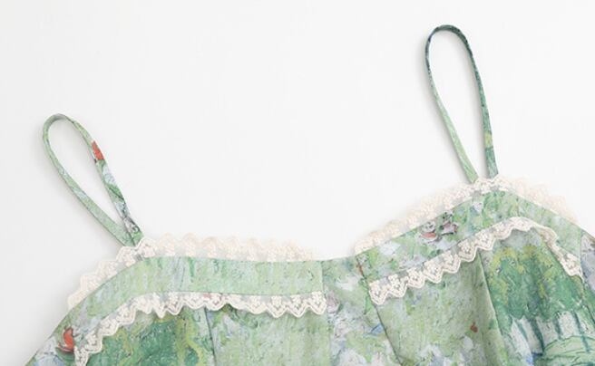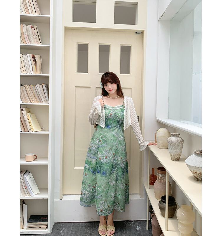 優雅で洗練されたデザインが魅力のミモレ丈のキャミソールワンピースです。