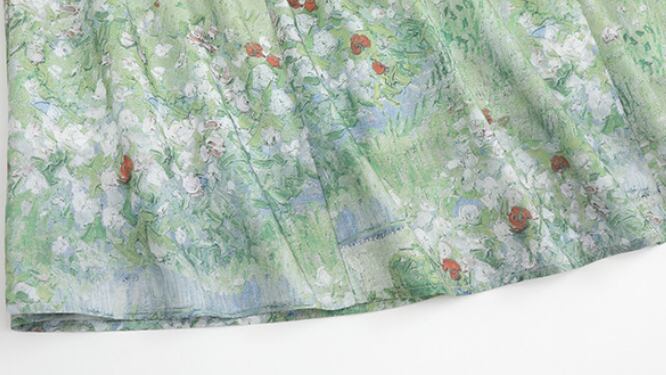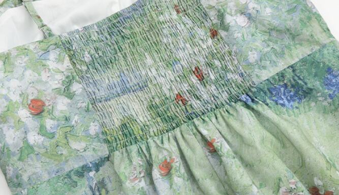 花柄が可愛らしさを演出し、カジュアルながらもエレガンスな印象を与えます。