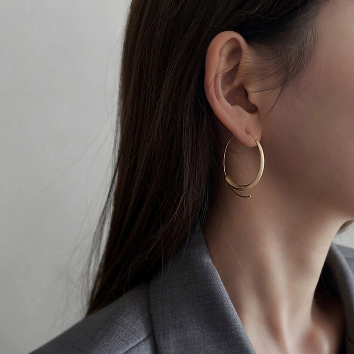 耳元のアクセントになり大人っぽさを引き上げてくれるフープピアス。