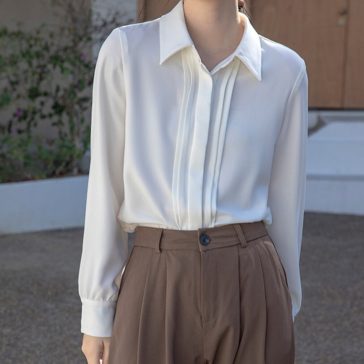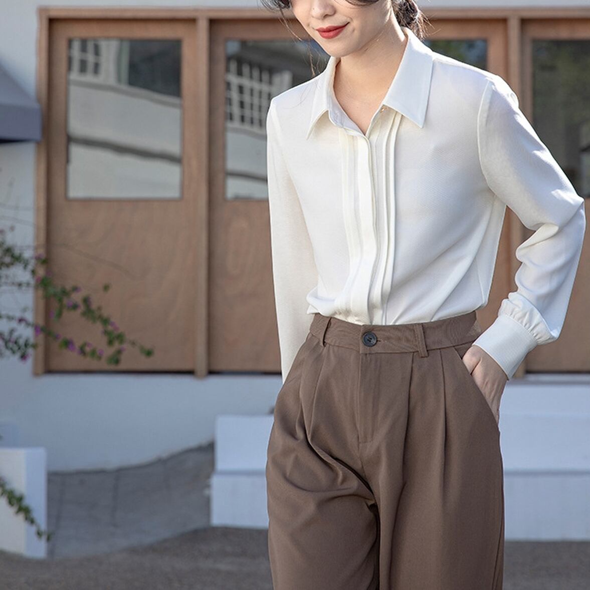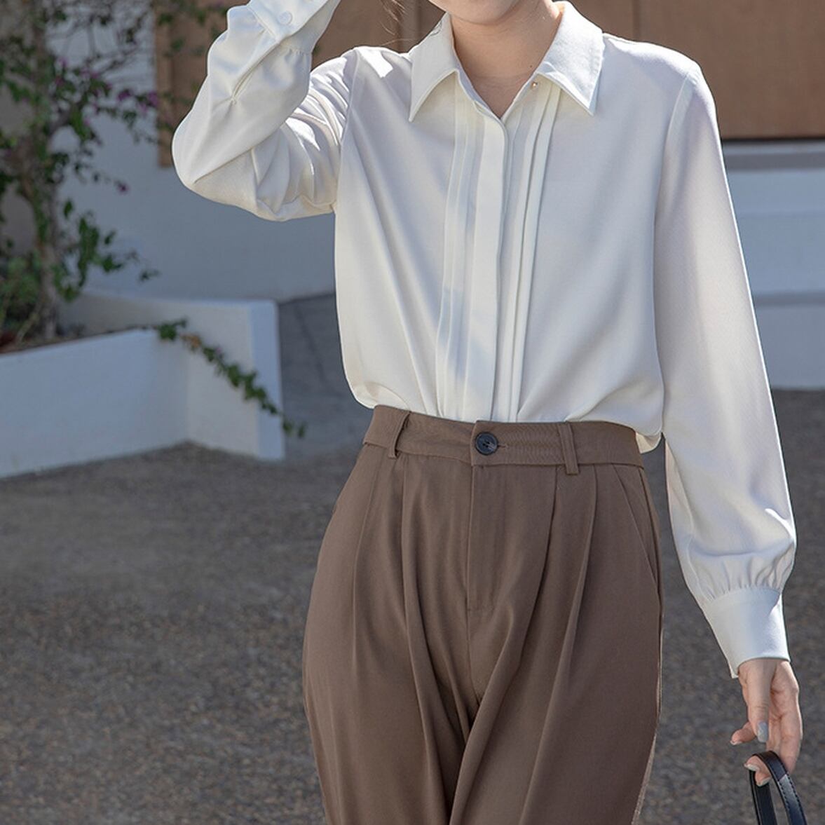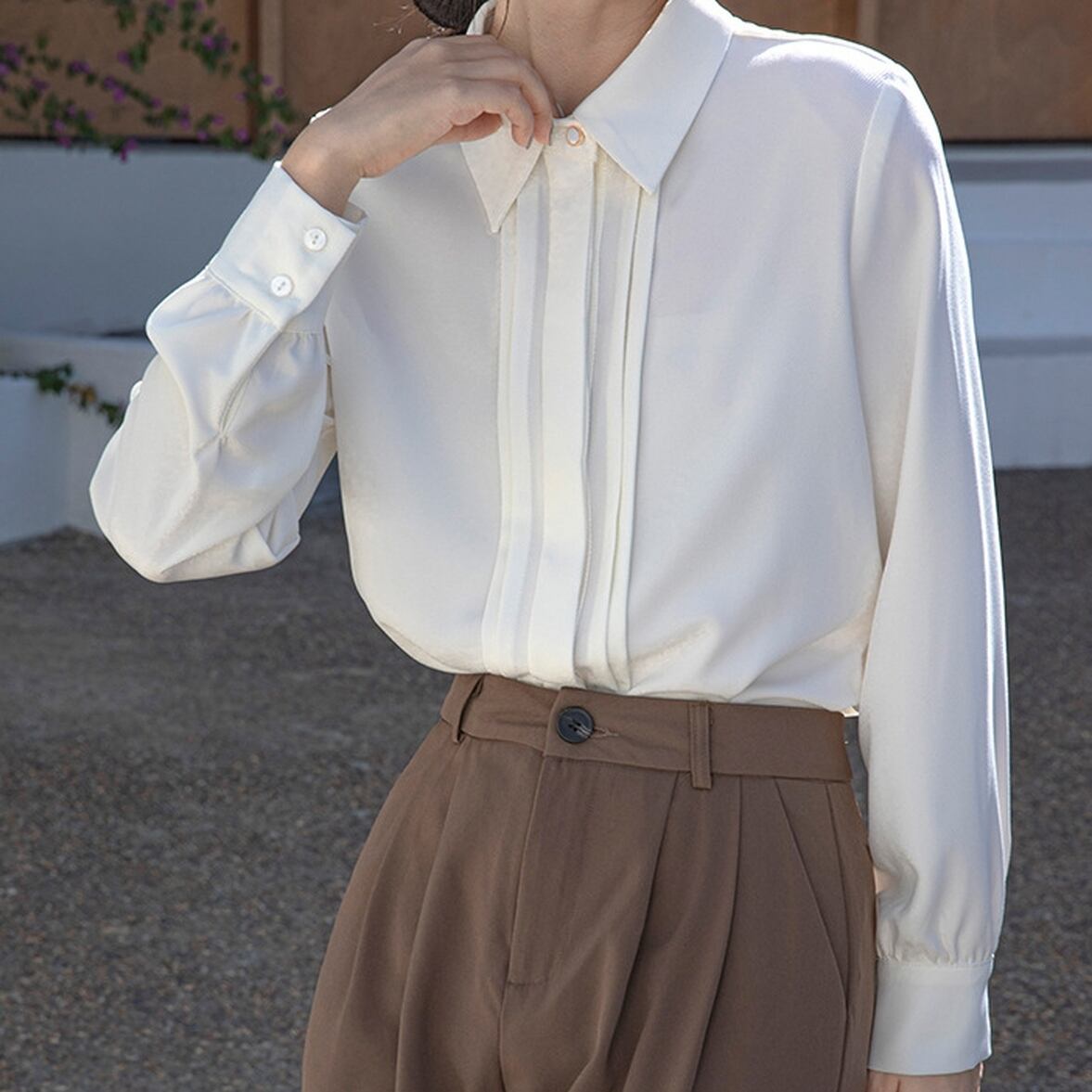 フロントのプリーツラインがシンプルですっきり見え、幅広いシーンでさりげなくアクセントを発揮するシャツ。