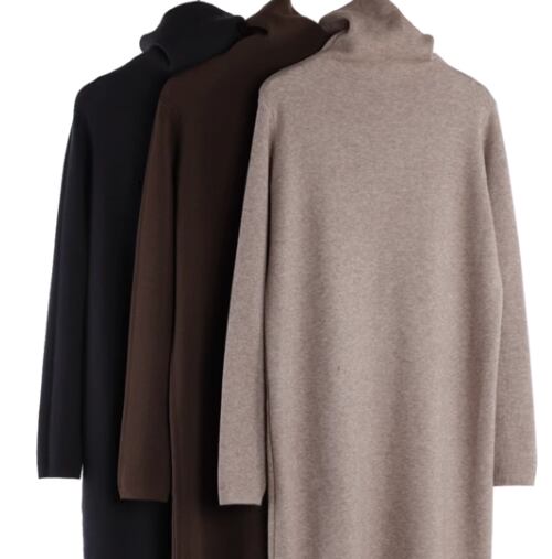 膝下丈のミディアムデザインは、タートルネックとオーバーサイズでリラックス感を演出。