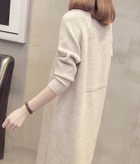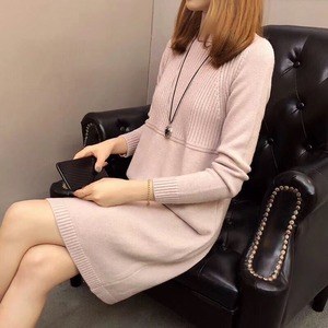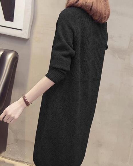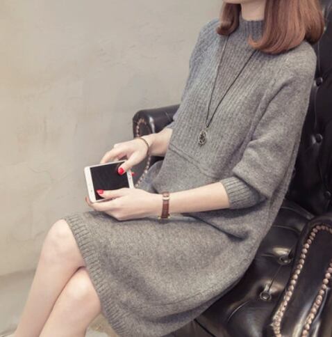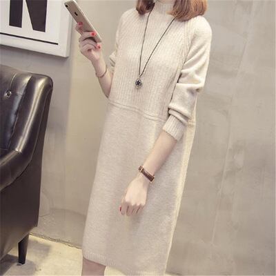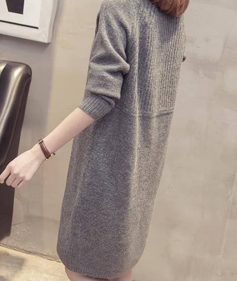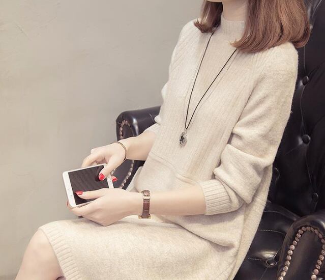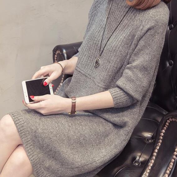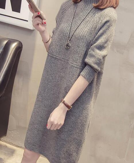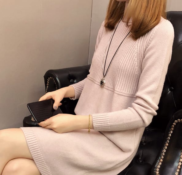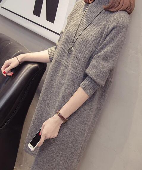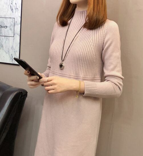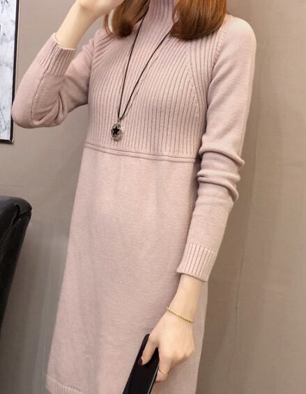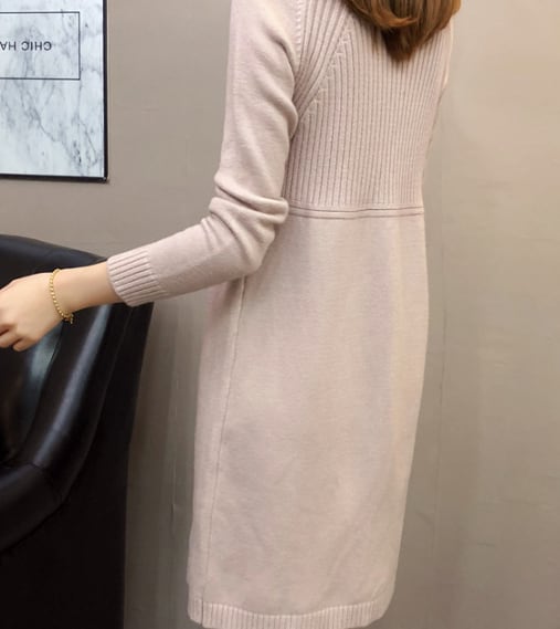 この秋冬にぴったりな膝丈のニットワンピースは、長袖とハイネックデザインで、体をしっかりと包み込んでくれます。
