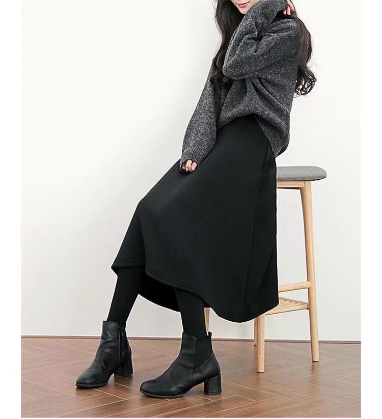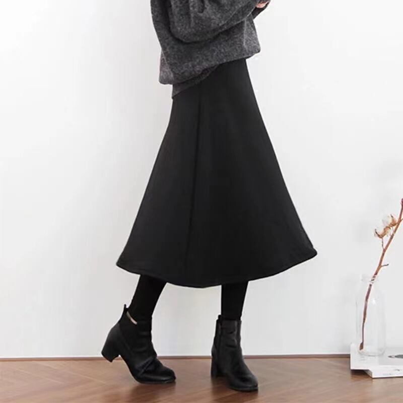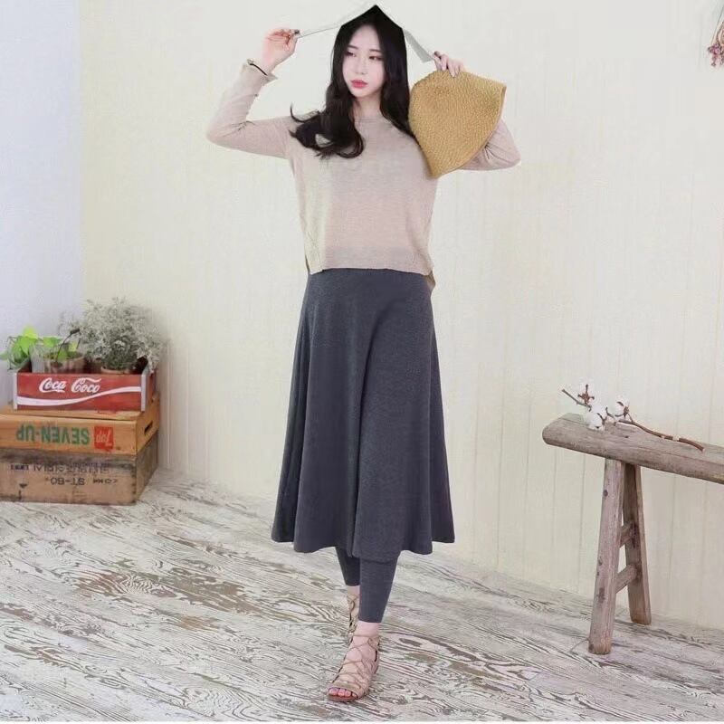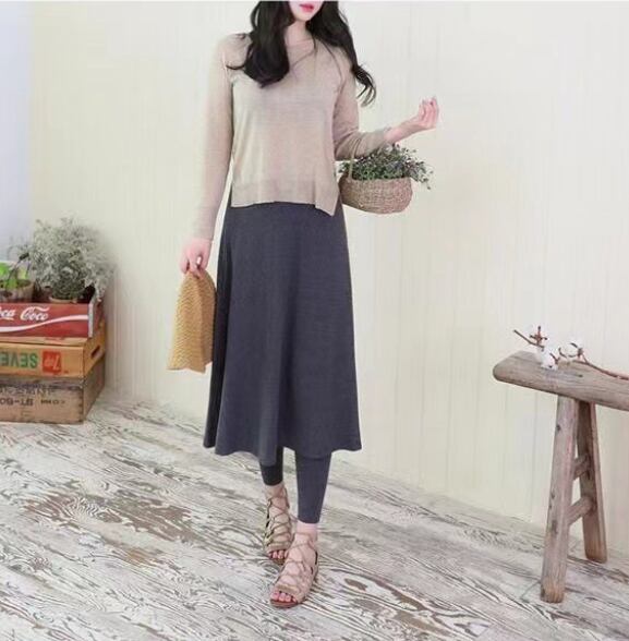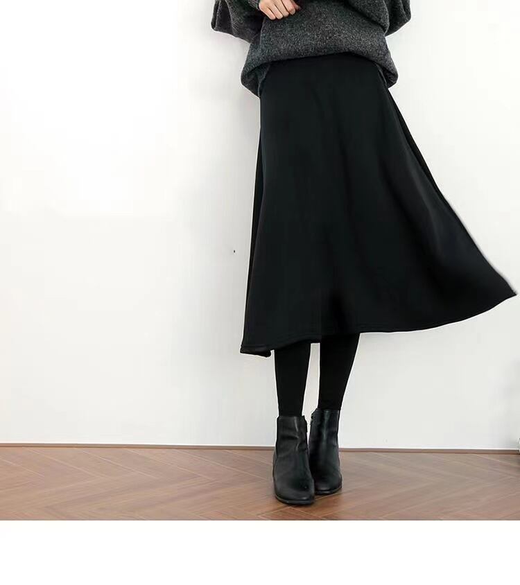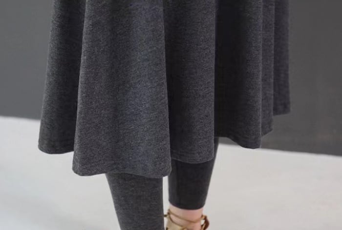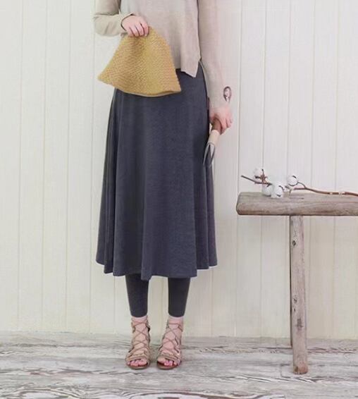 このレギンススカートは、フレアデザインでミモレ丈、Aラインのシルエットが特徴。