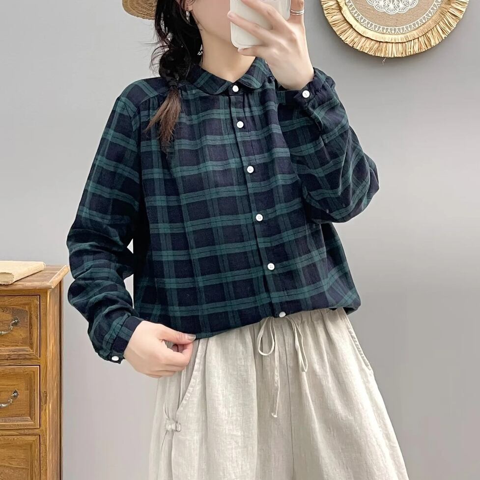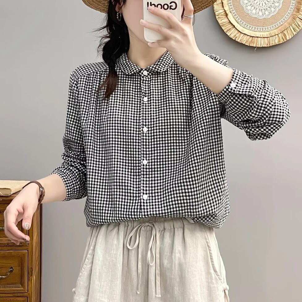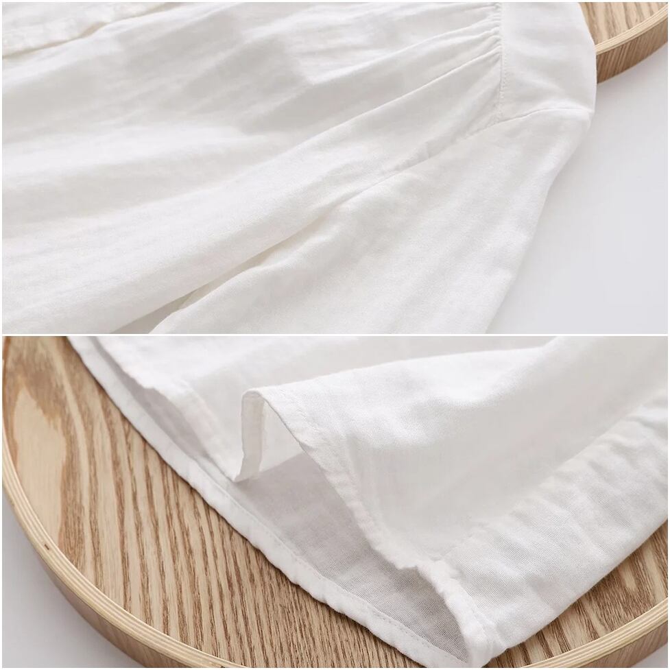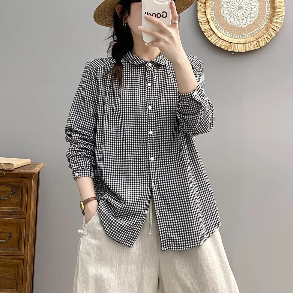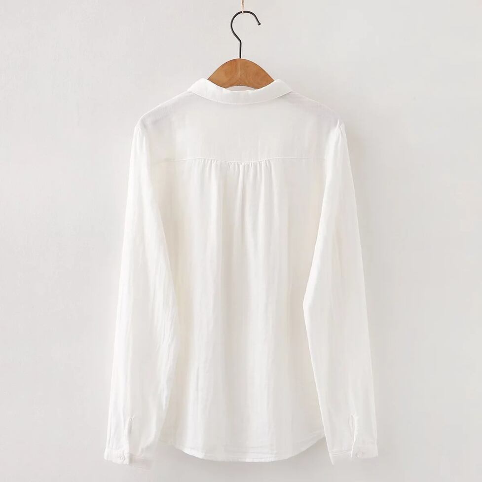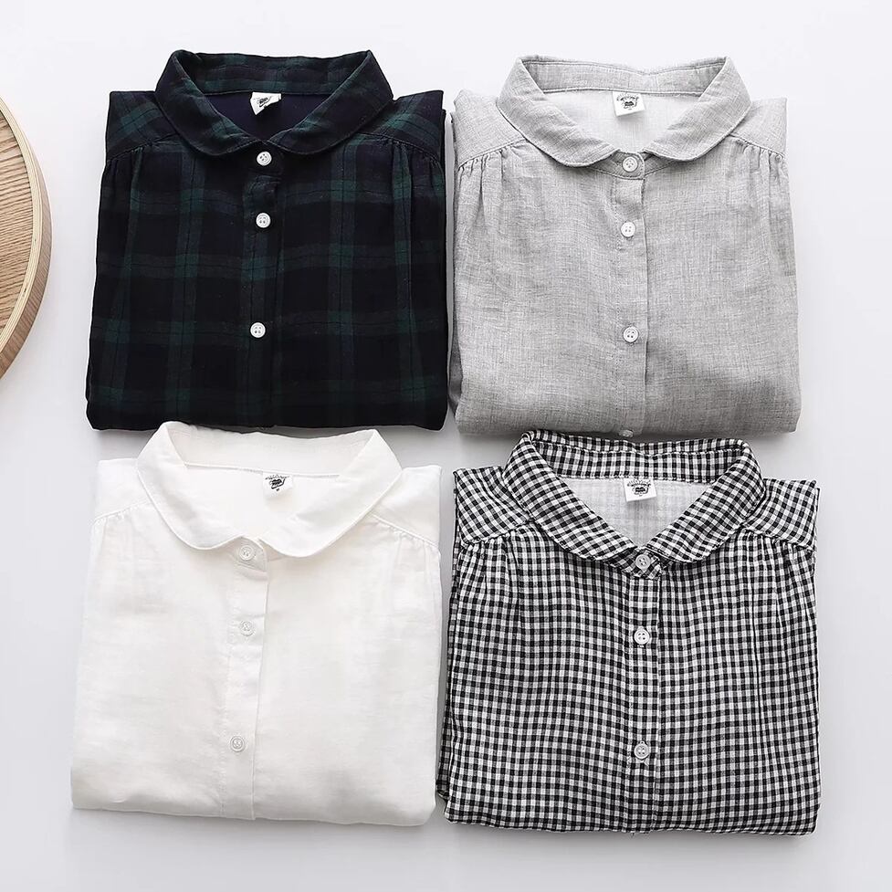 ほんのり透けた軽やかな素材感、小さめの丸くカーブした襟、ゆったりリラックスした不運域でナチュラルに着られるシャツ。
