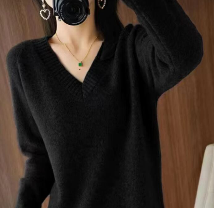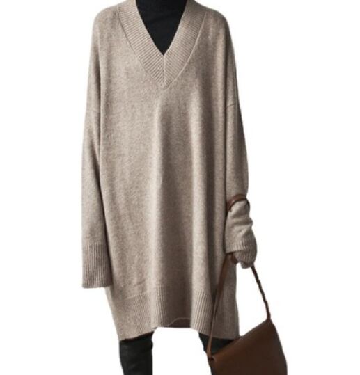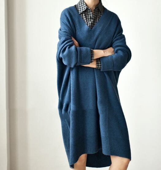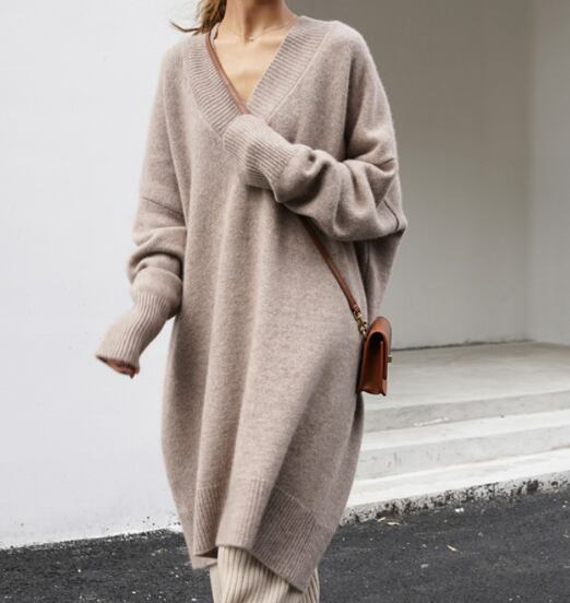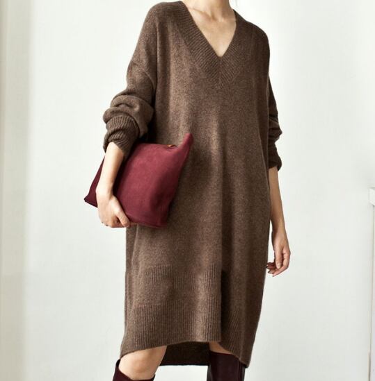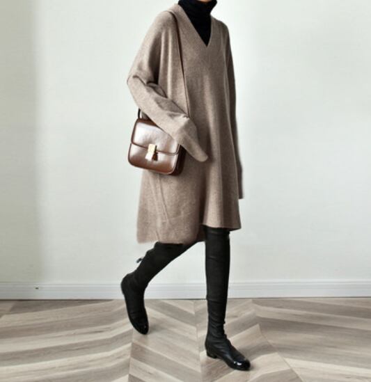 深いVネックがポイントのニットワンピース