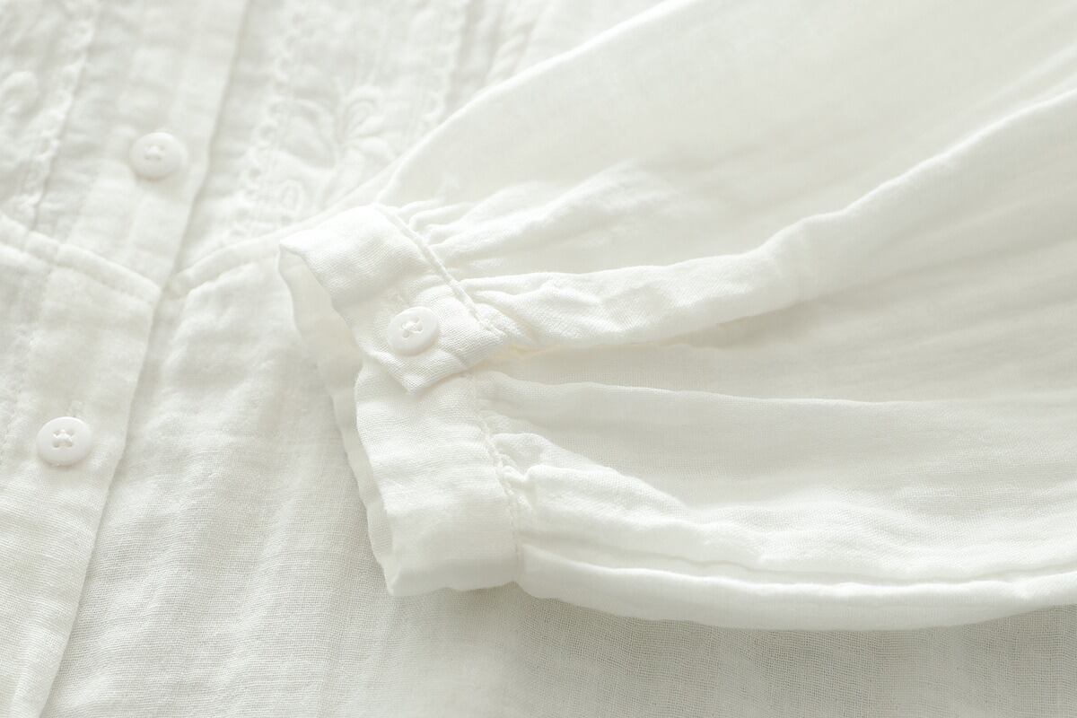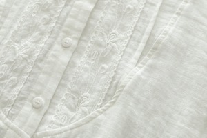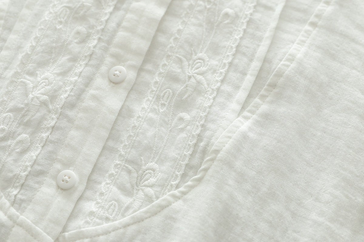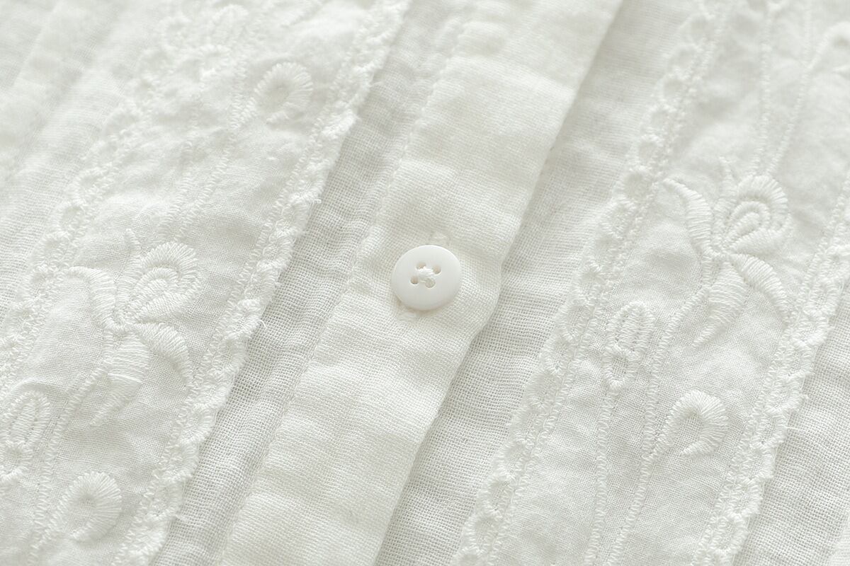 前開きのボタンと繊細な刺繍が施され、普段使いからオフィススタイル、デートや女子会など様々なシーンにマッチします。