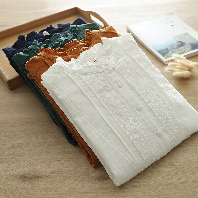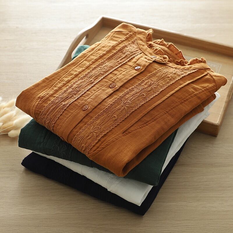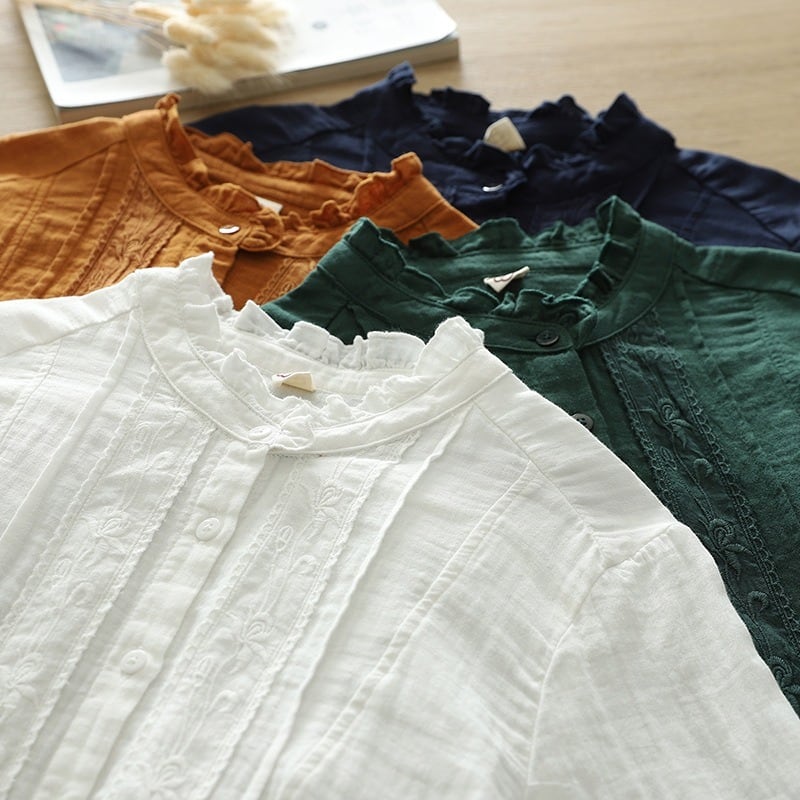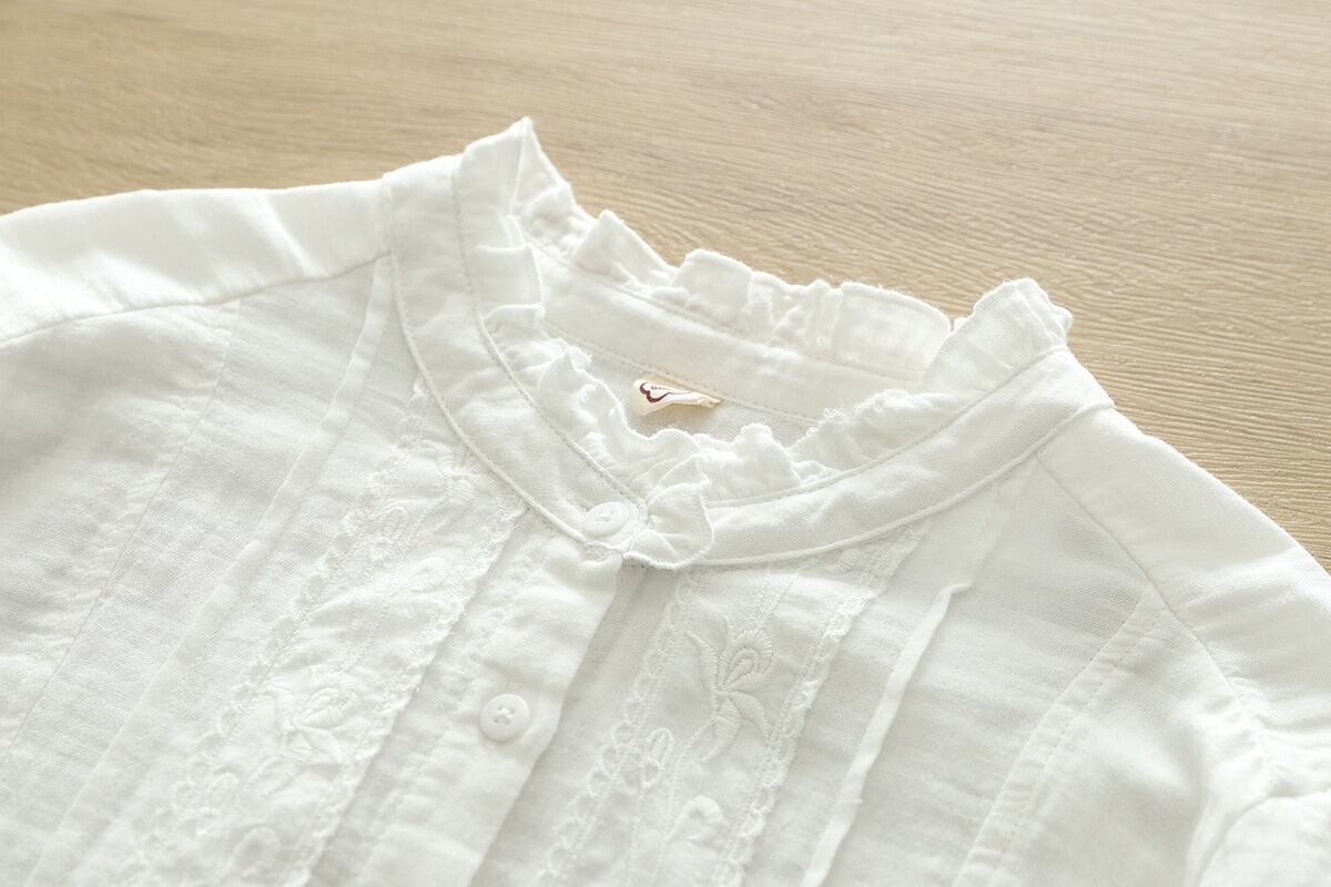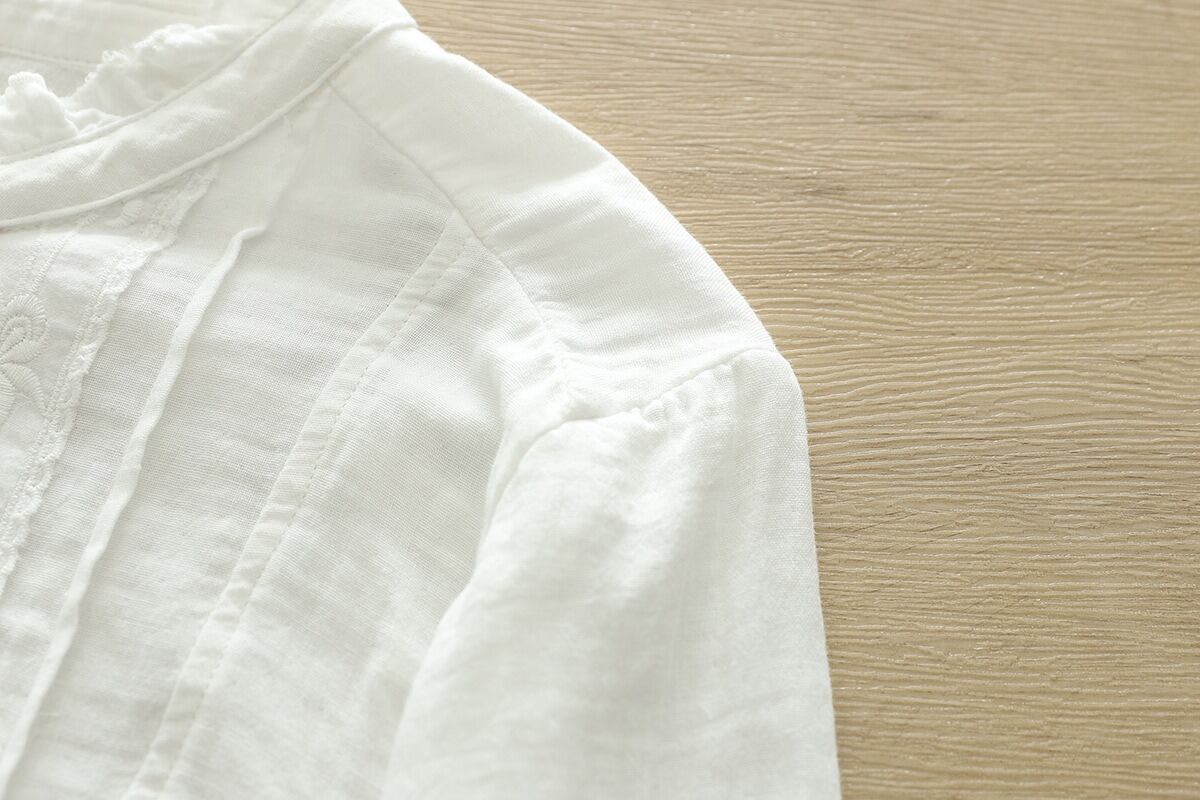 前開きのボタンと繊細な刺繍が施され、普段使いからオフィススタイル、デートや女子会など様々なシーンにマッチします。