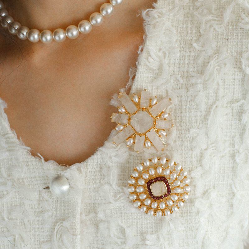 可愛らしさと品のあるデザインでフォーマルなシーンからカジュアルな日常使いまで幅広く活躍する、アンティーク調のブローチです。華やかに胸元を彩ります。シーズンを問わずお使いいただけるオールシーズンアイテムです。