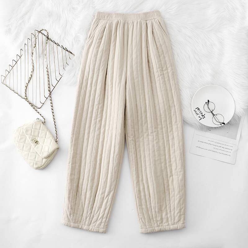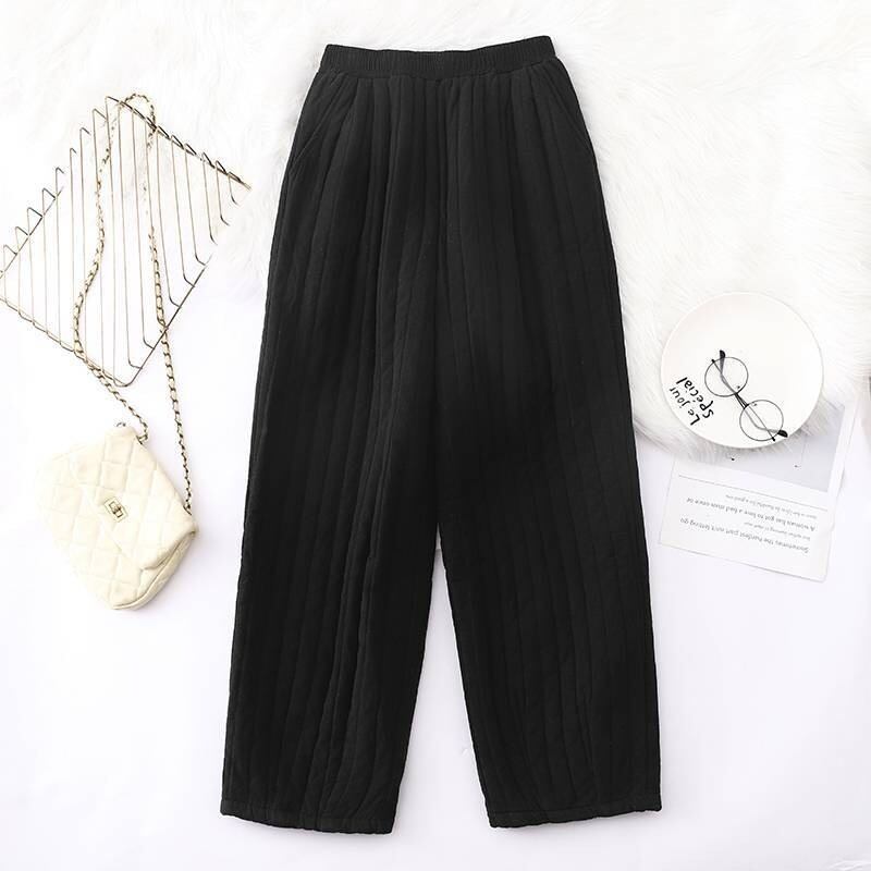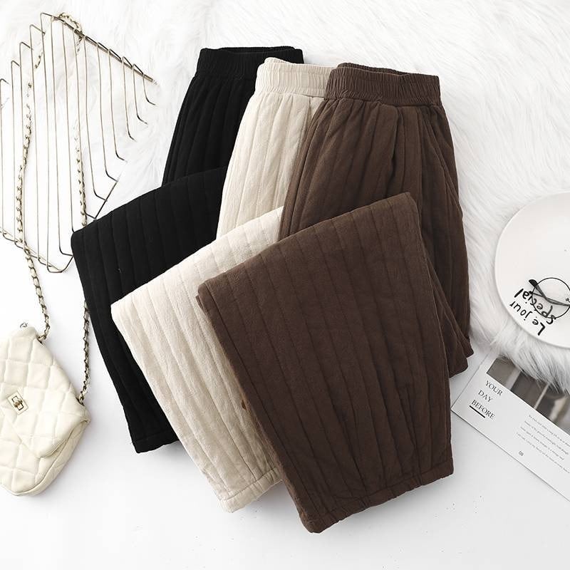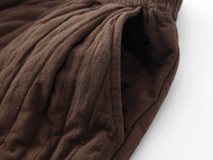 厚手のリブ素材が冬場の防寒対策に最適で、ウエストゴム仕様により快適な着心地を提供します。