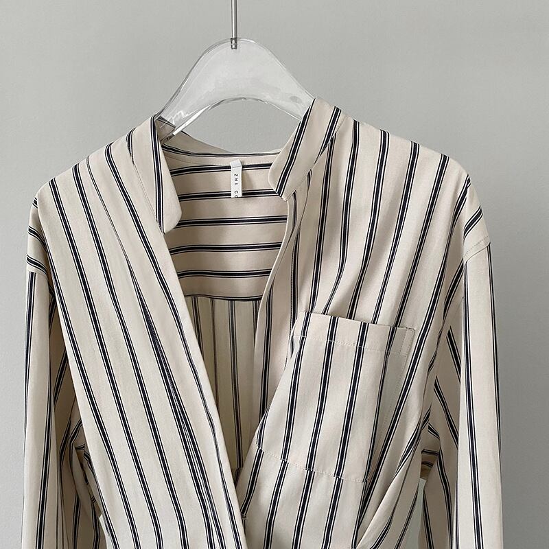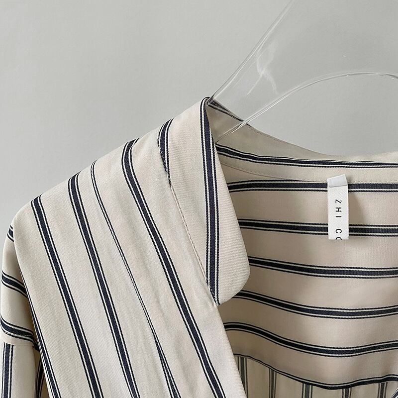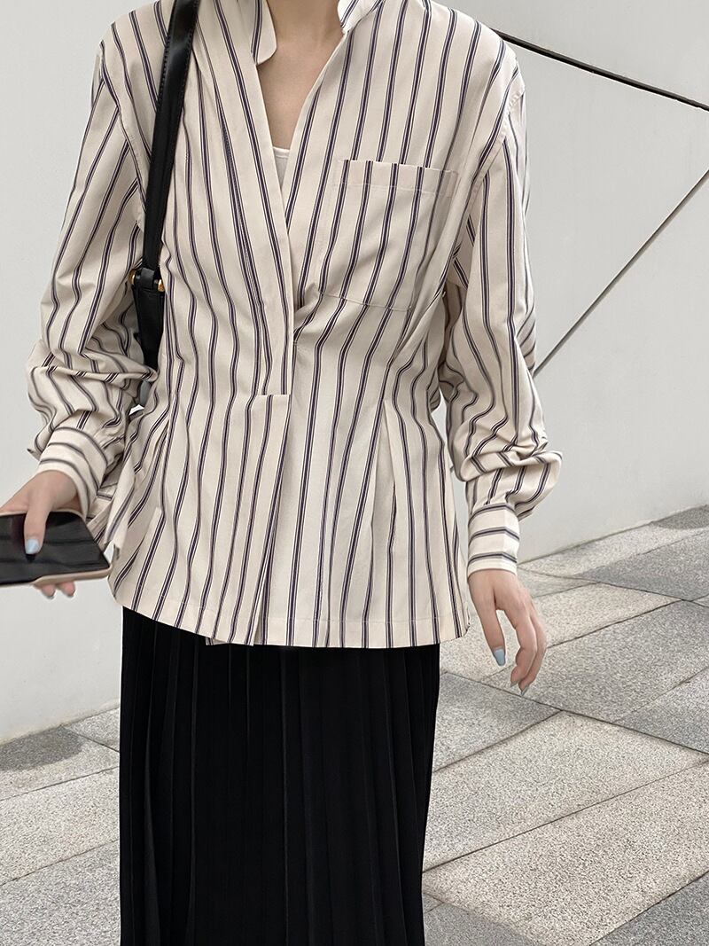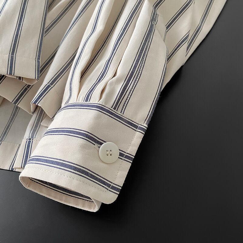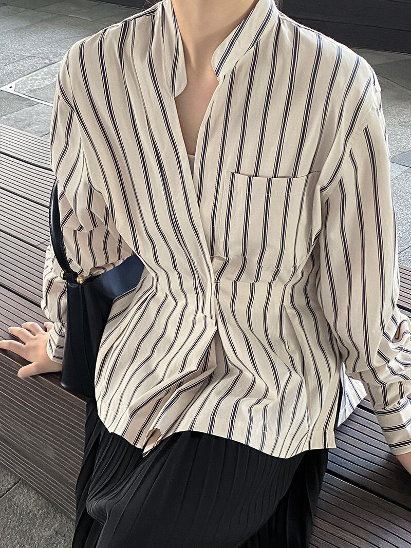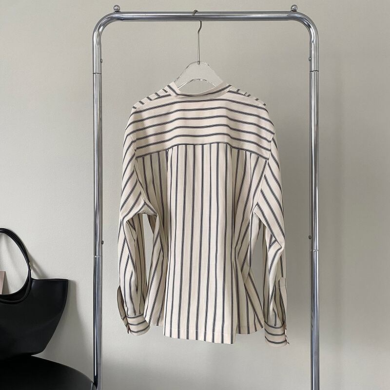 シンプルなデザインで着回し力のあるストライプシャツ。