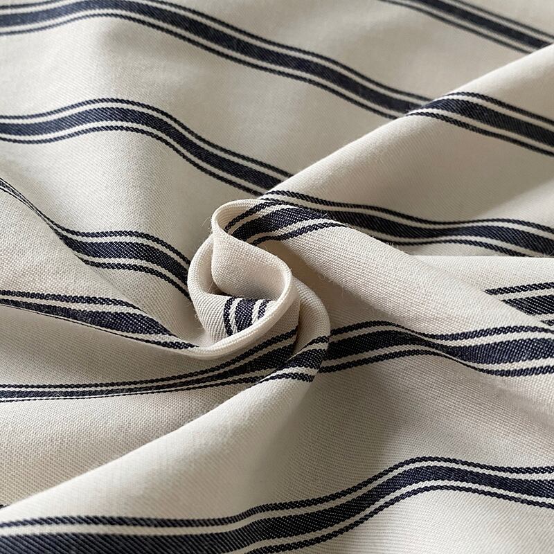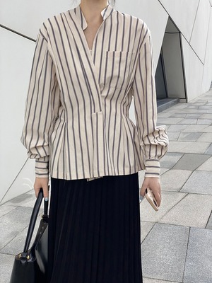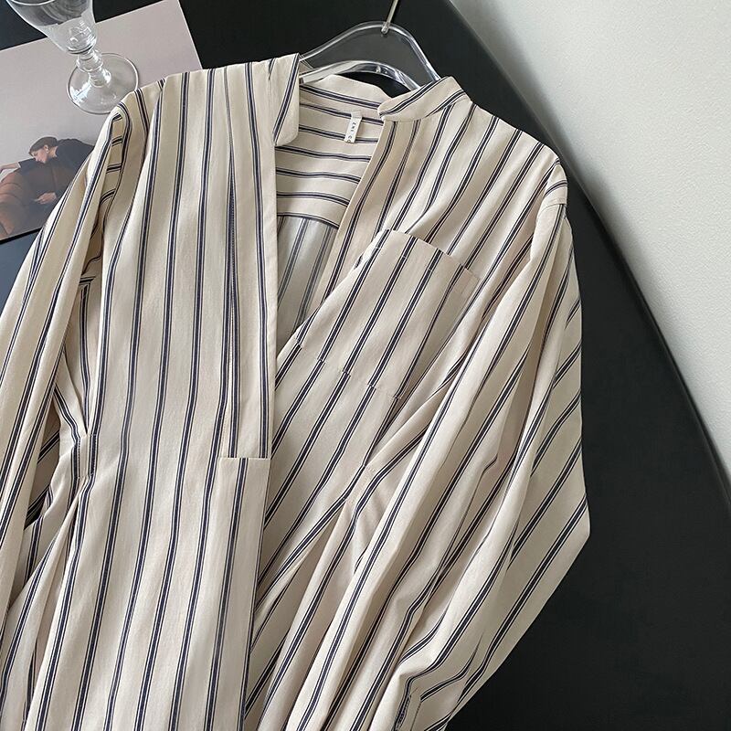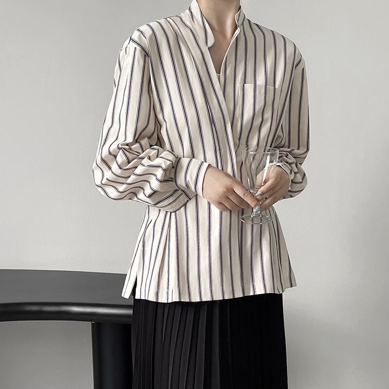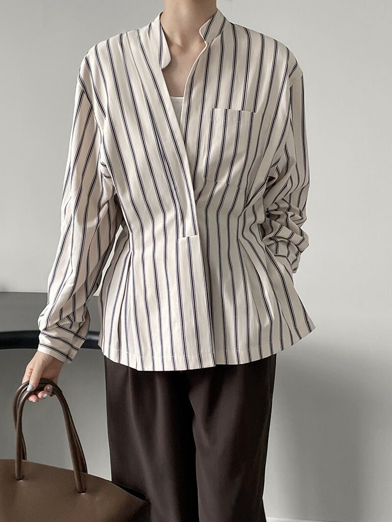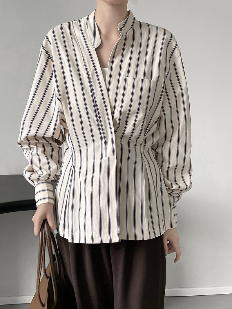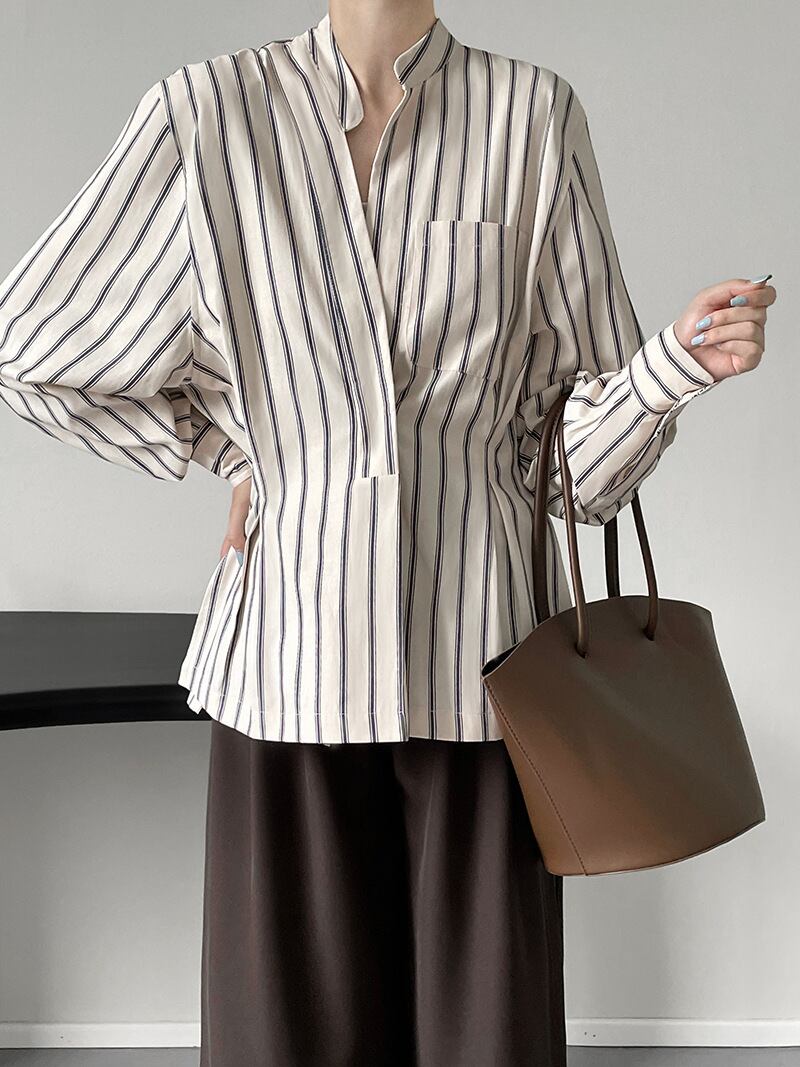 シンプルなデザインで着回し力のあるストライプシャツ。