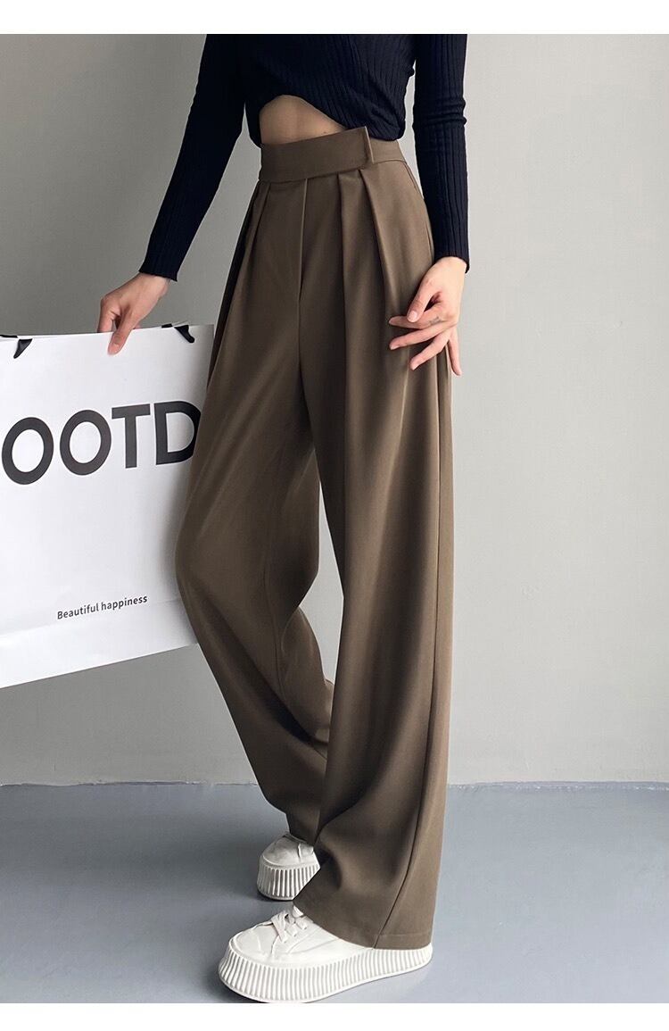 大人可愛いスタイルを叶える、洗練されたデザインのレディースストレートパンツです。