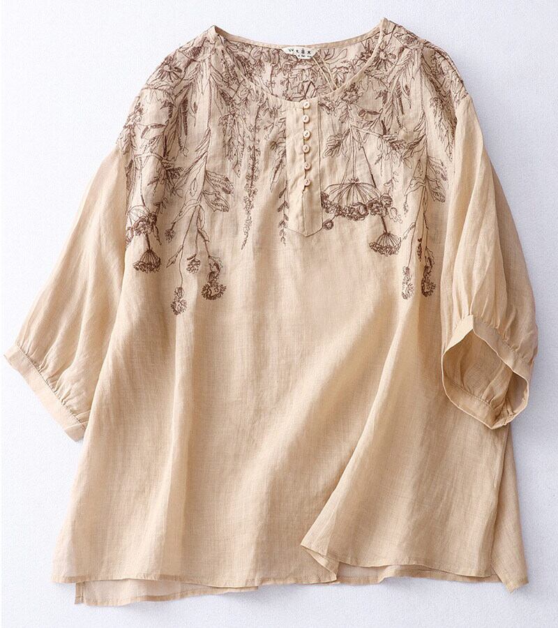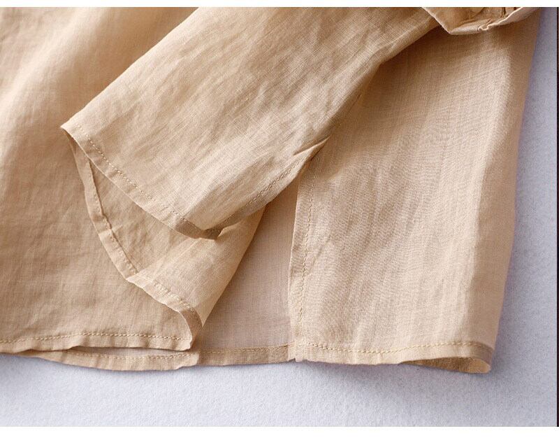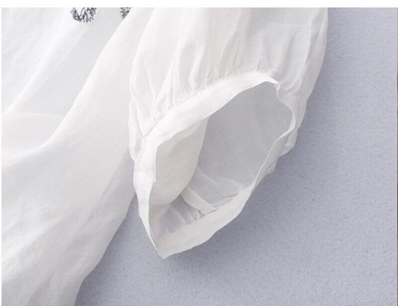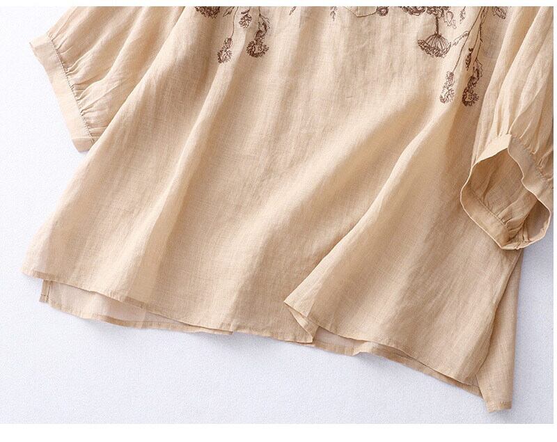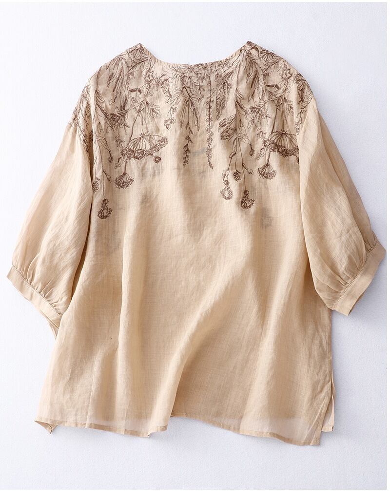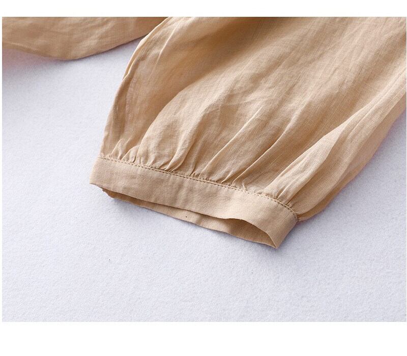 女性らしいパフスリーブとヘンリーネックデザインが特徴、レディースブラウスです。