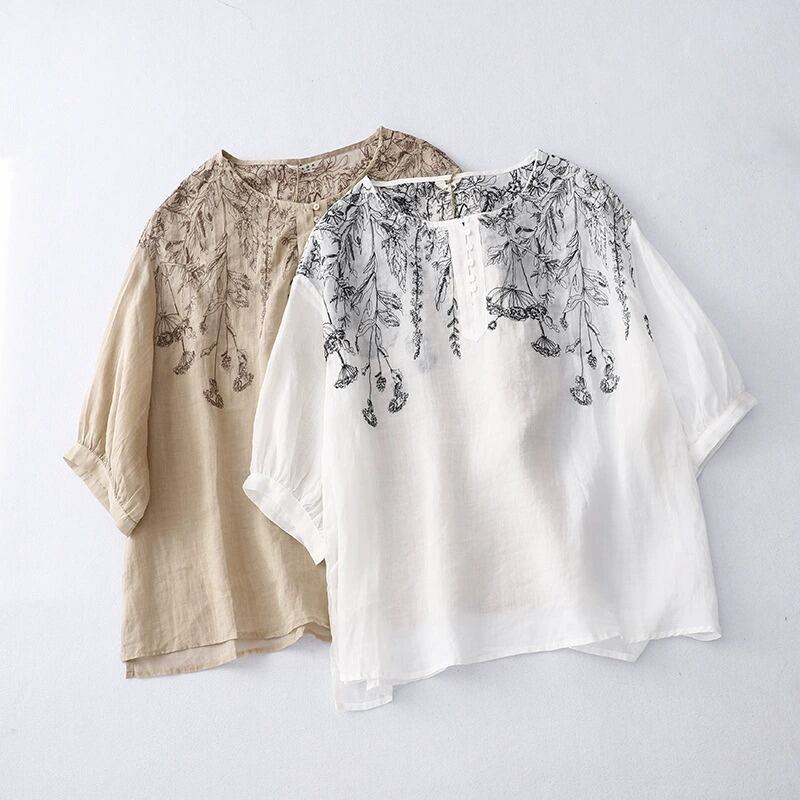 カジュアルにも上品にもコーディネートできるシンプルな一着で、花柄デザインは春夏の装いにぴったりです。