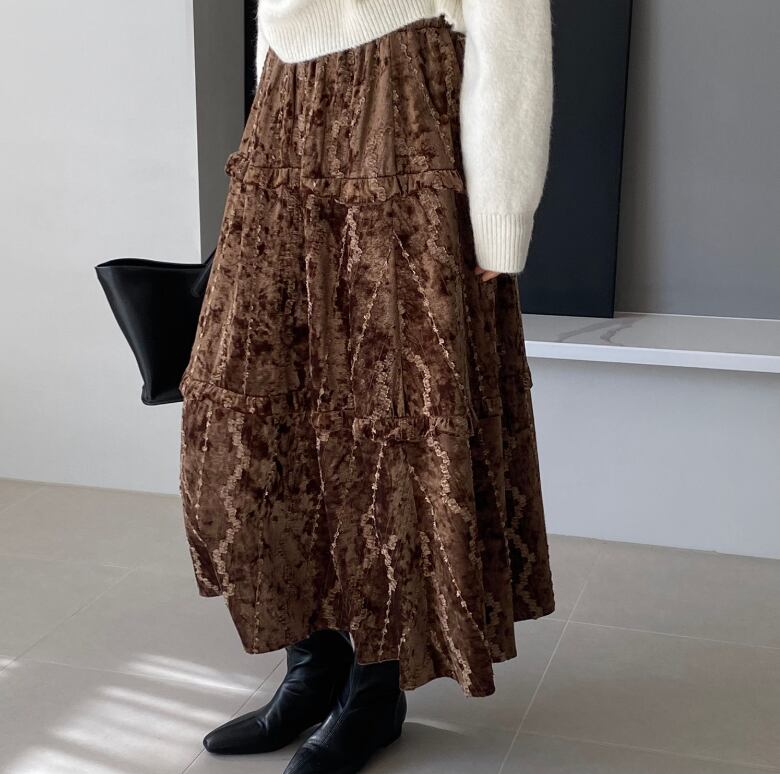 フリルデザインがかわいいロングスカート