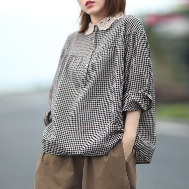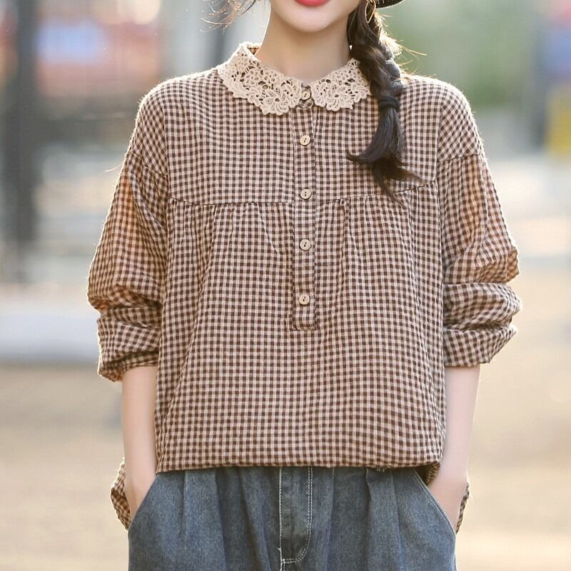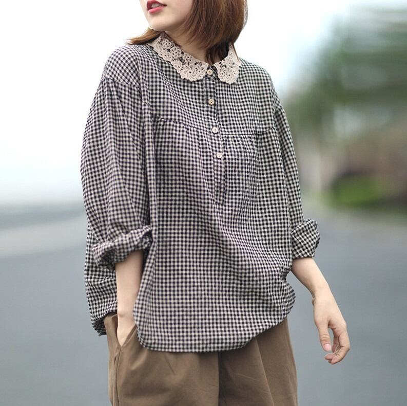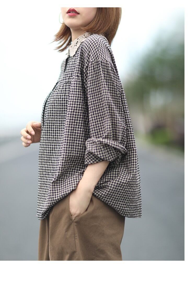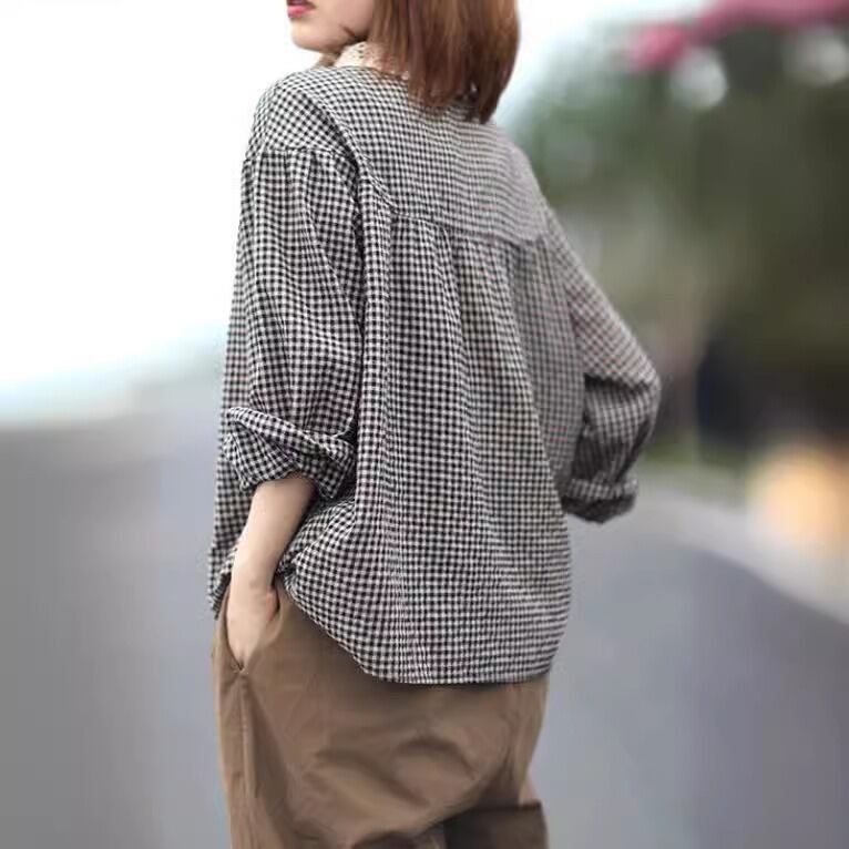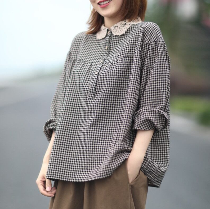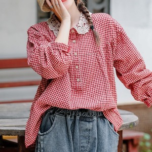 ギンガムチェックがかわいい長袖のカットソーです。