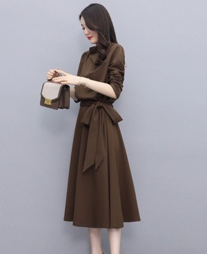 ウエストマークとリボンでメリハリをつけ、体型カバーも叶える一着です。