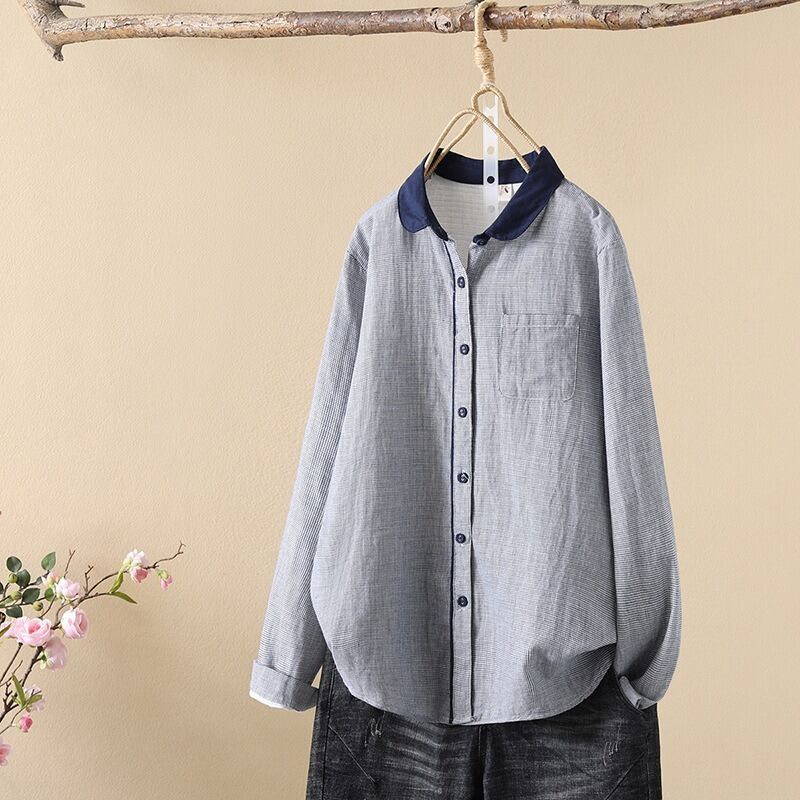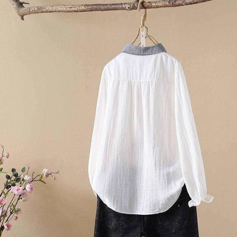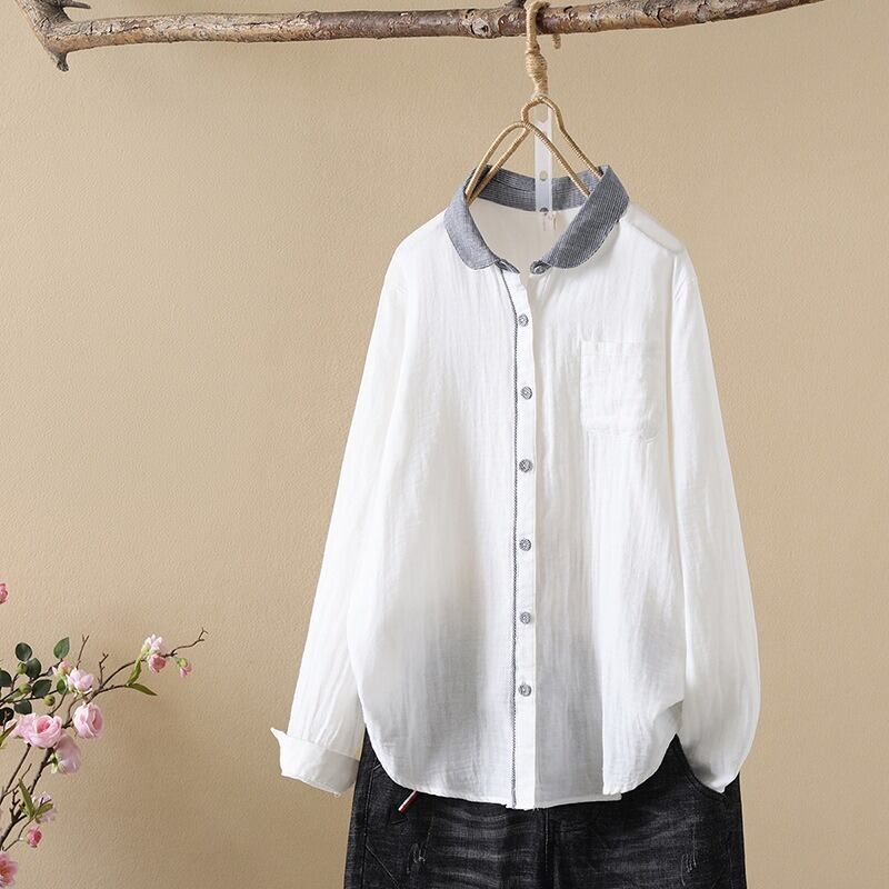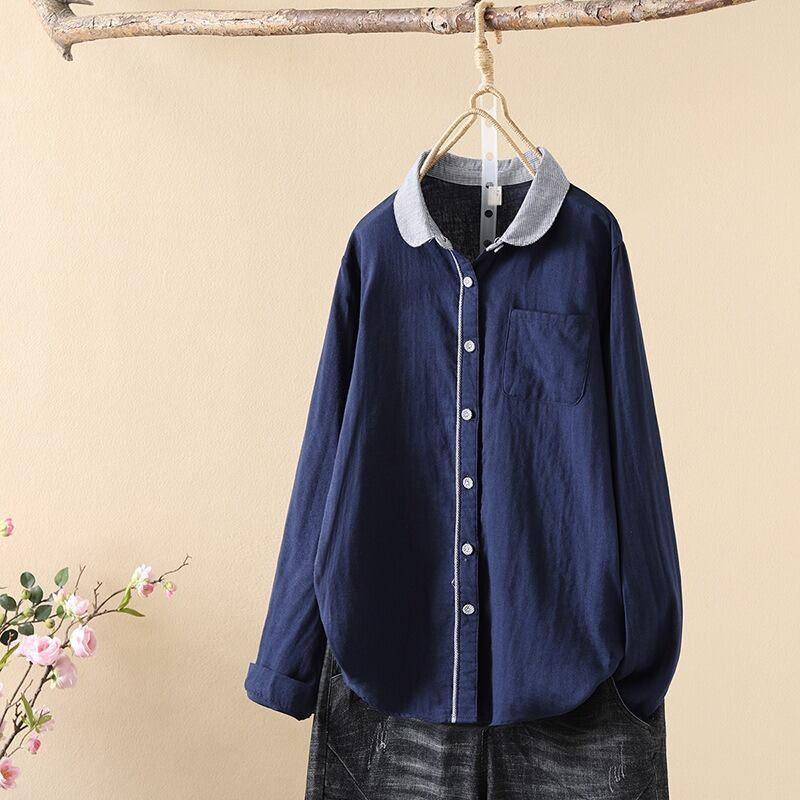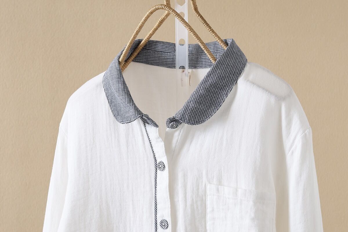 前開きと襟付きデザインが、上品でありながらもカジュアルな印象を与えます。